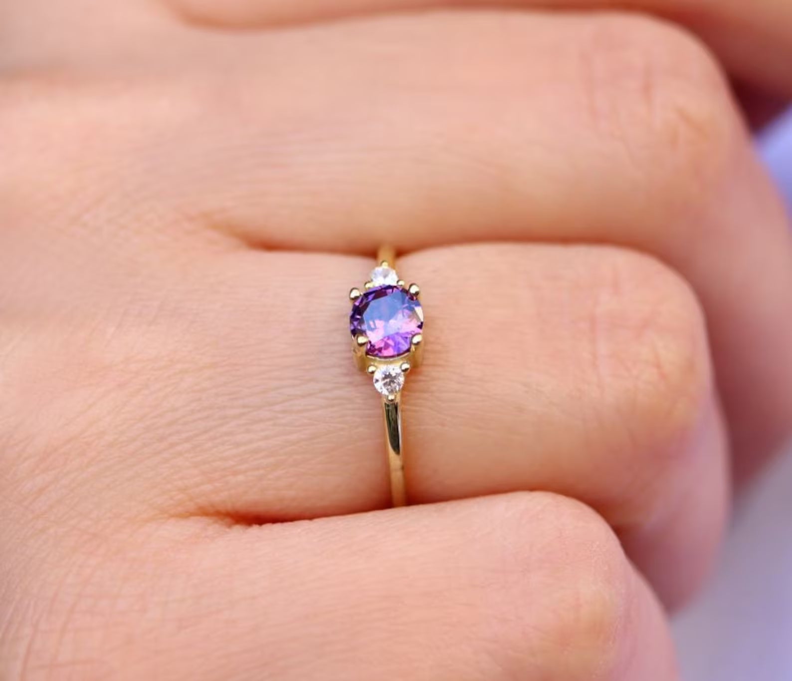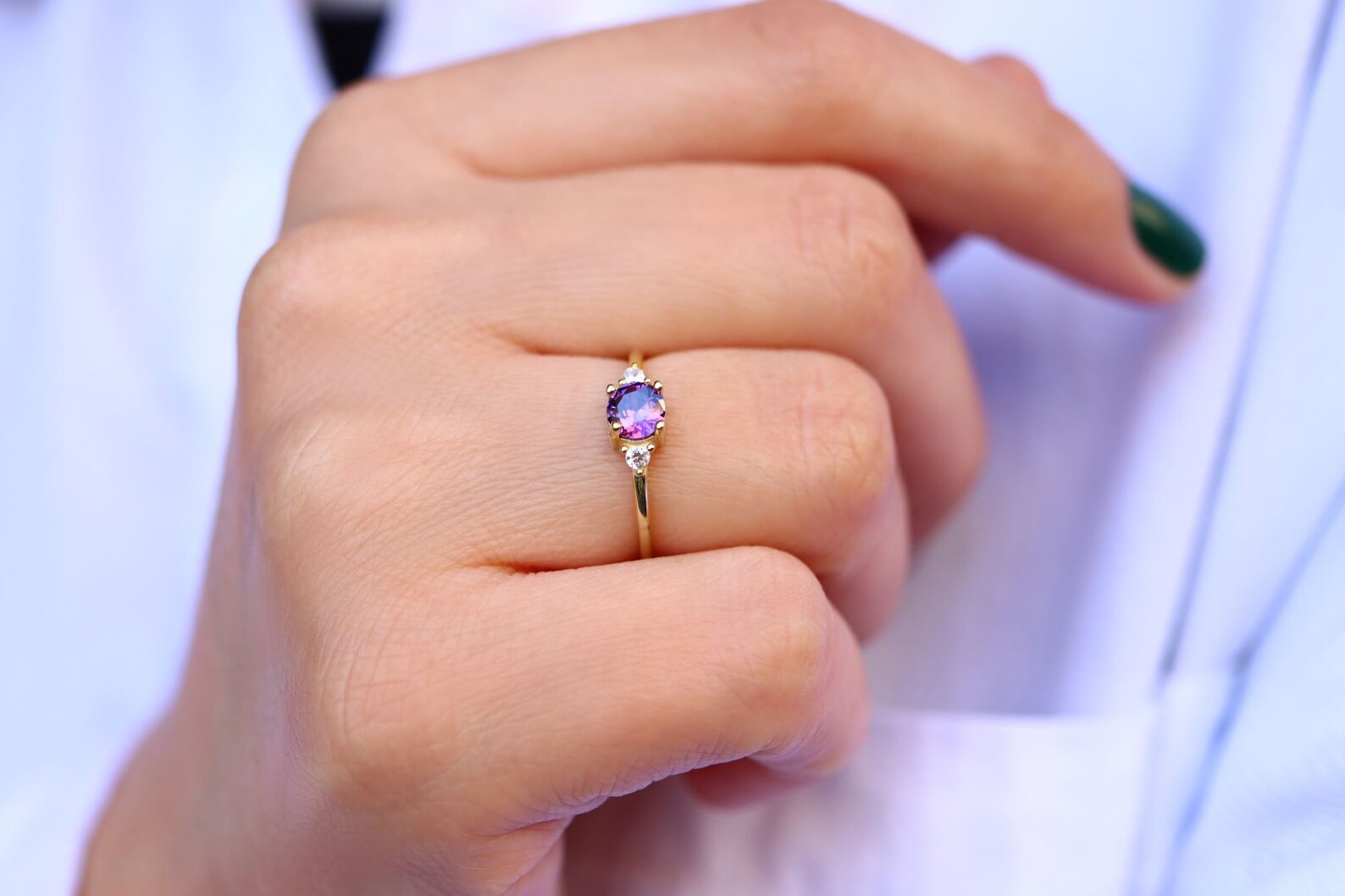 Ametist Doğum Taşlı Yüzük | 14 Ayar Altın
