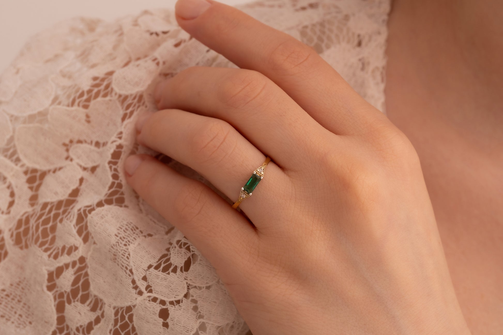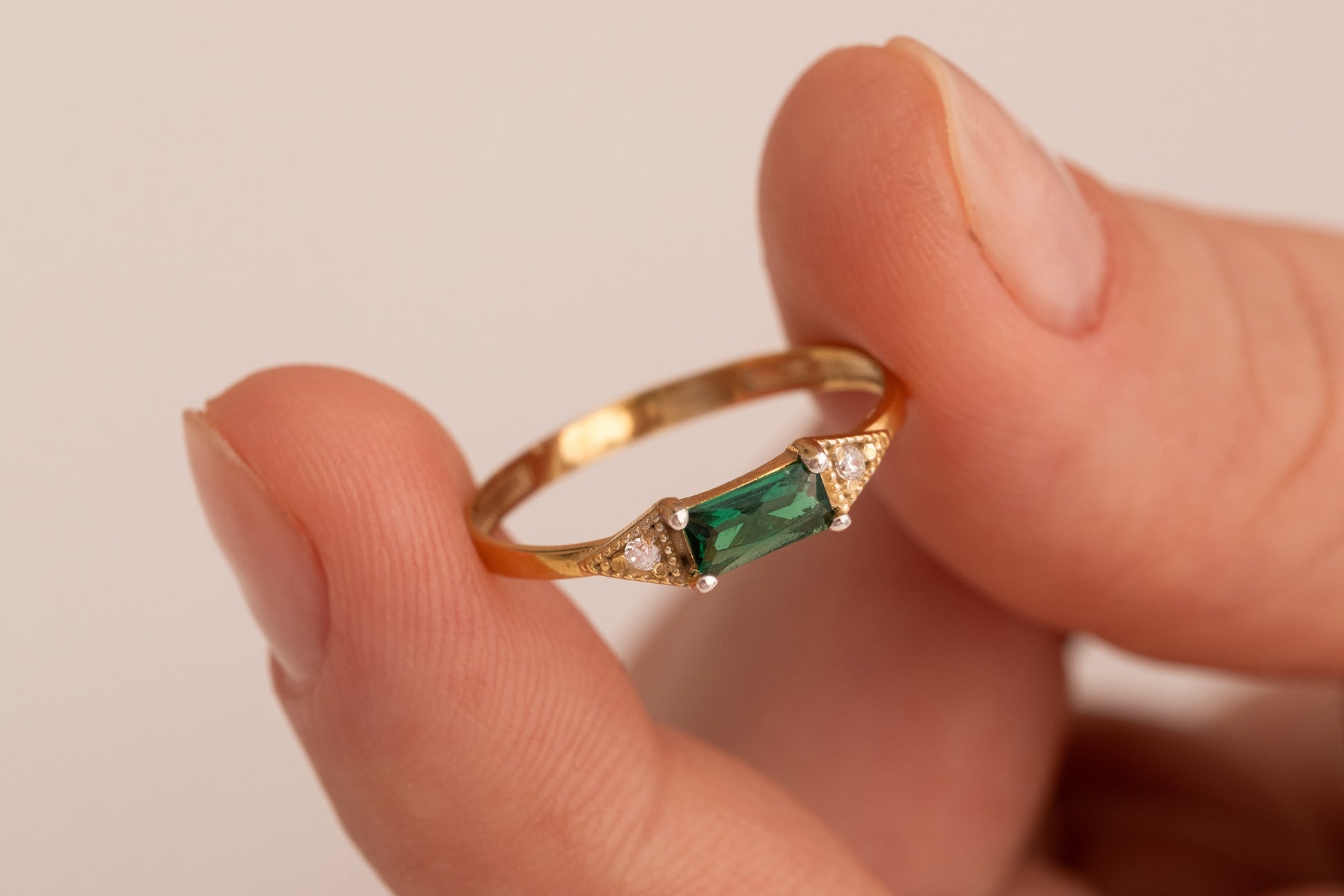 Satın Alınan Ürün: Baget Taşlı Minimal Yüzük | 14 Ayar Altın