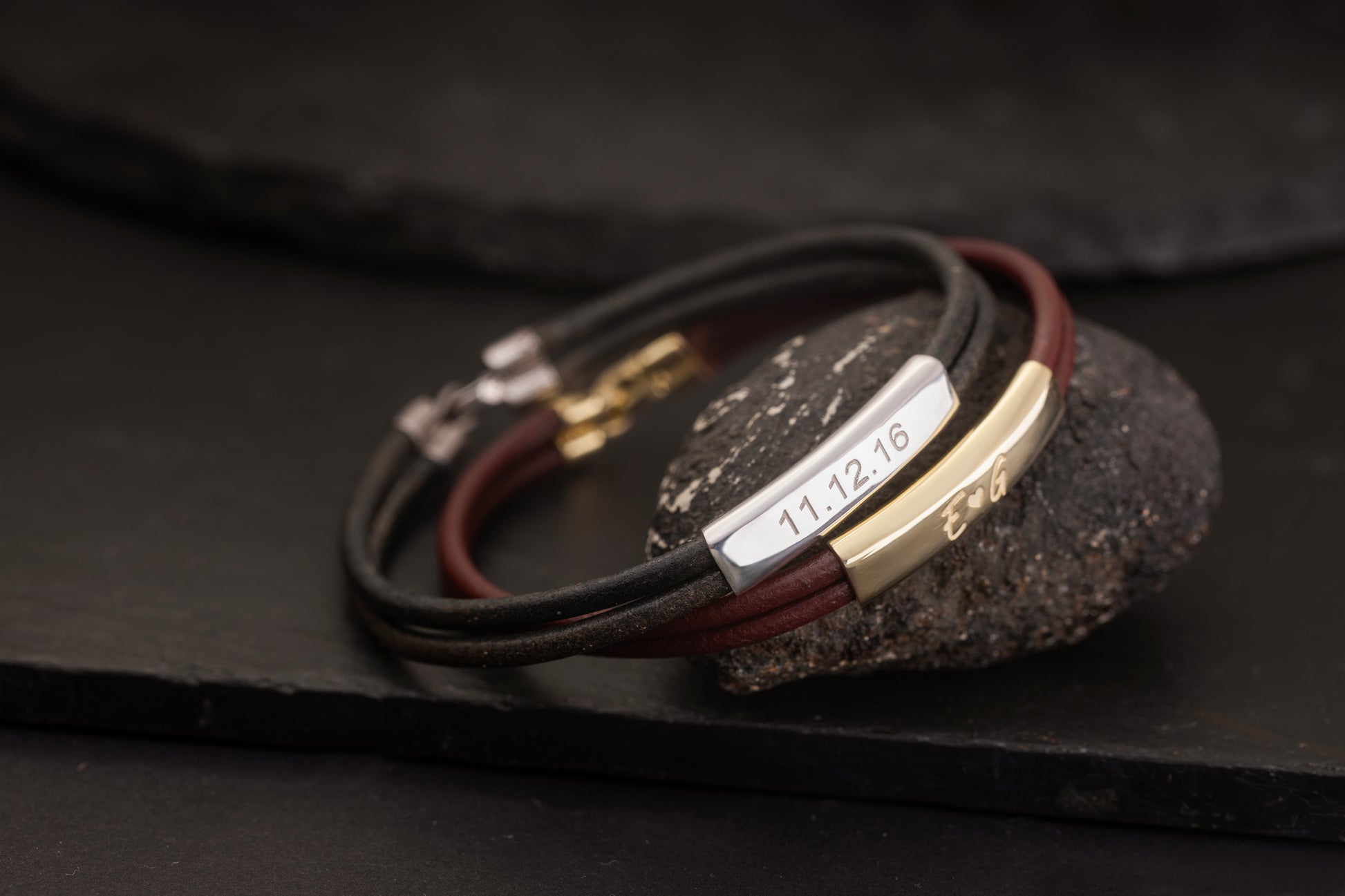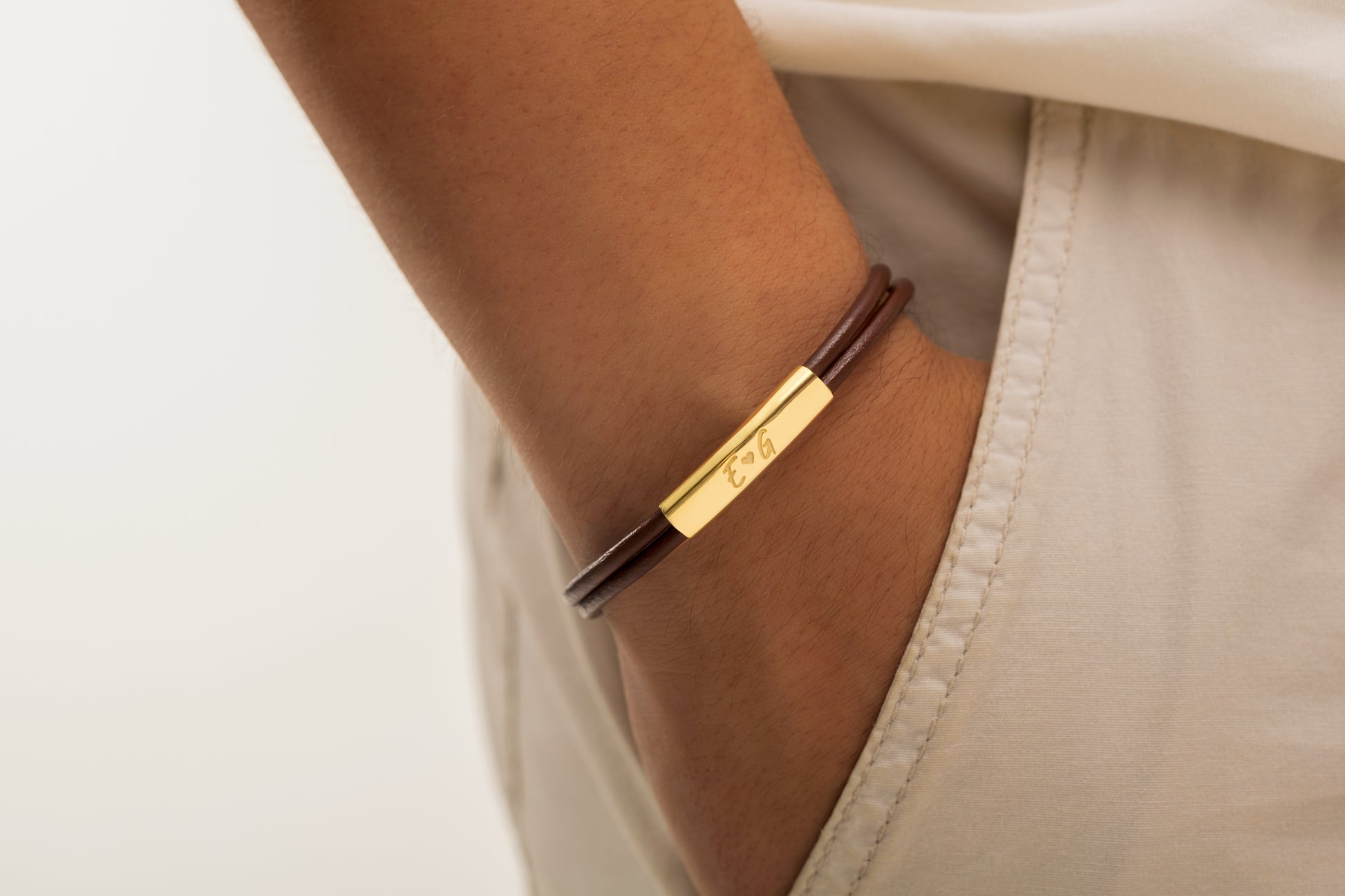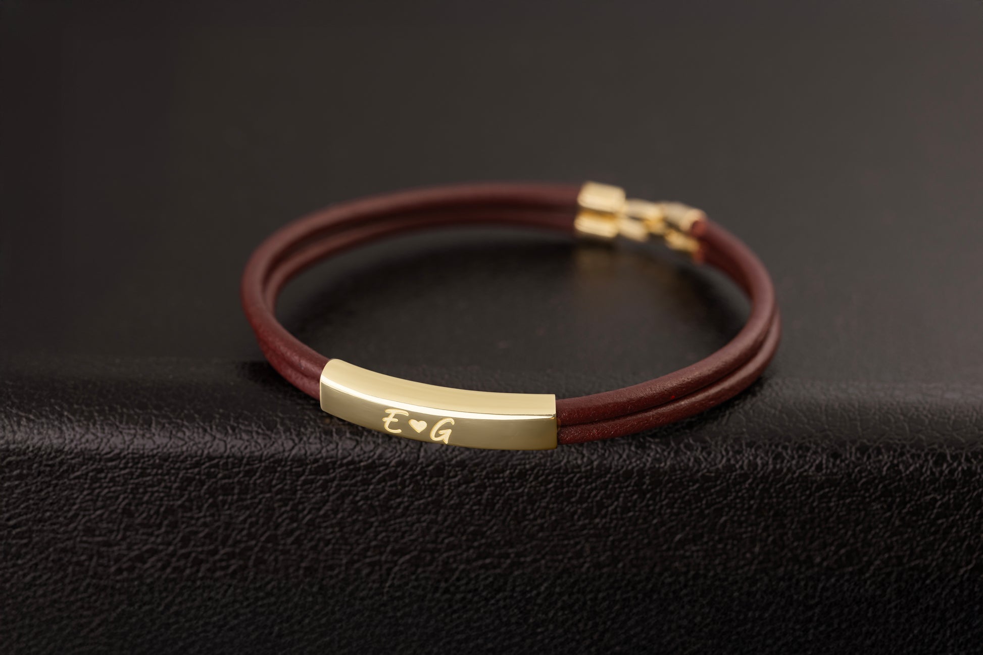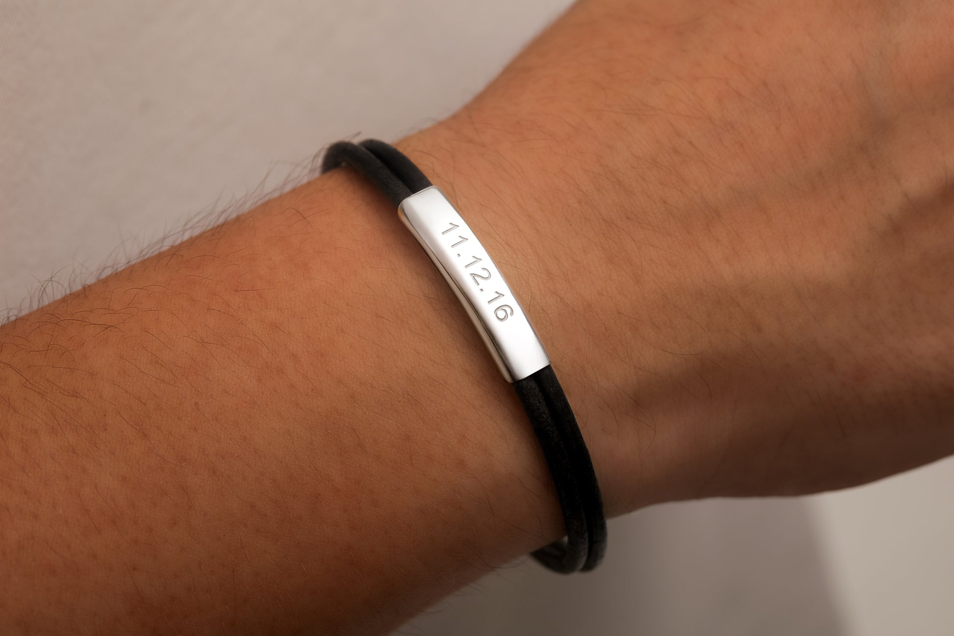 Bombeli Baget Düz Deri Bileklik | 925 Gümüş