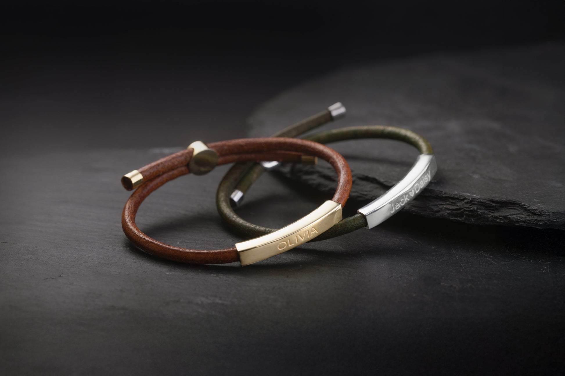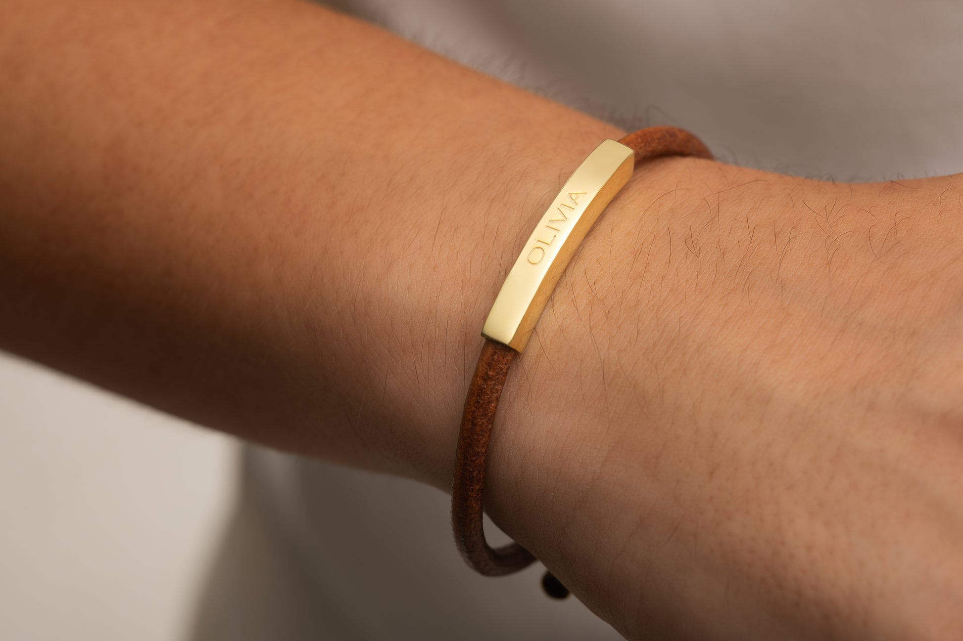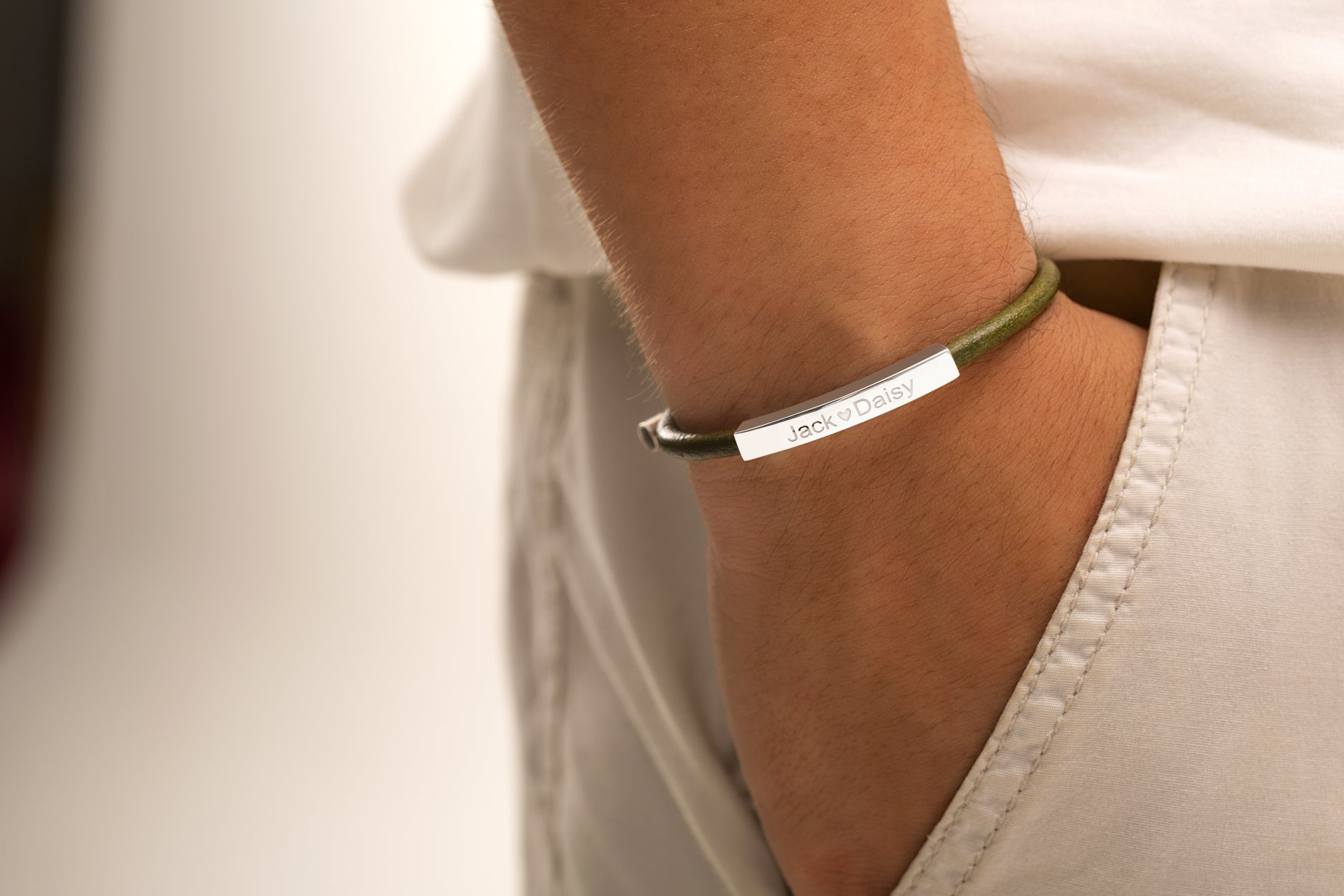 Bombeli Dikdörtgen Küp Düz Deri Bileklik | 925 Gümüş