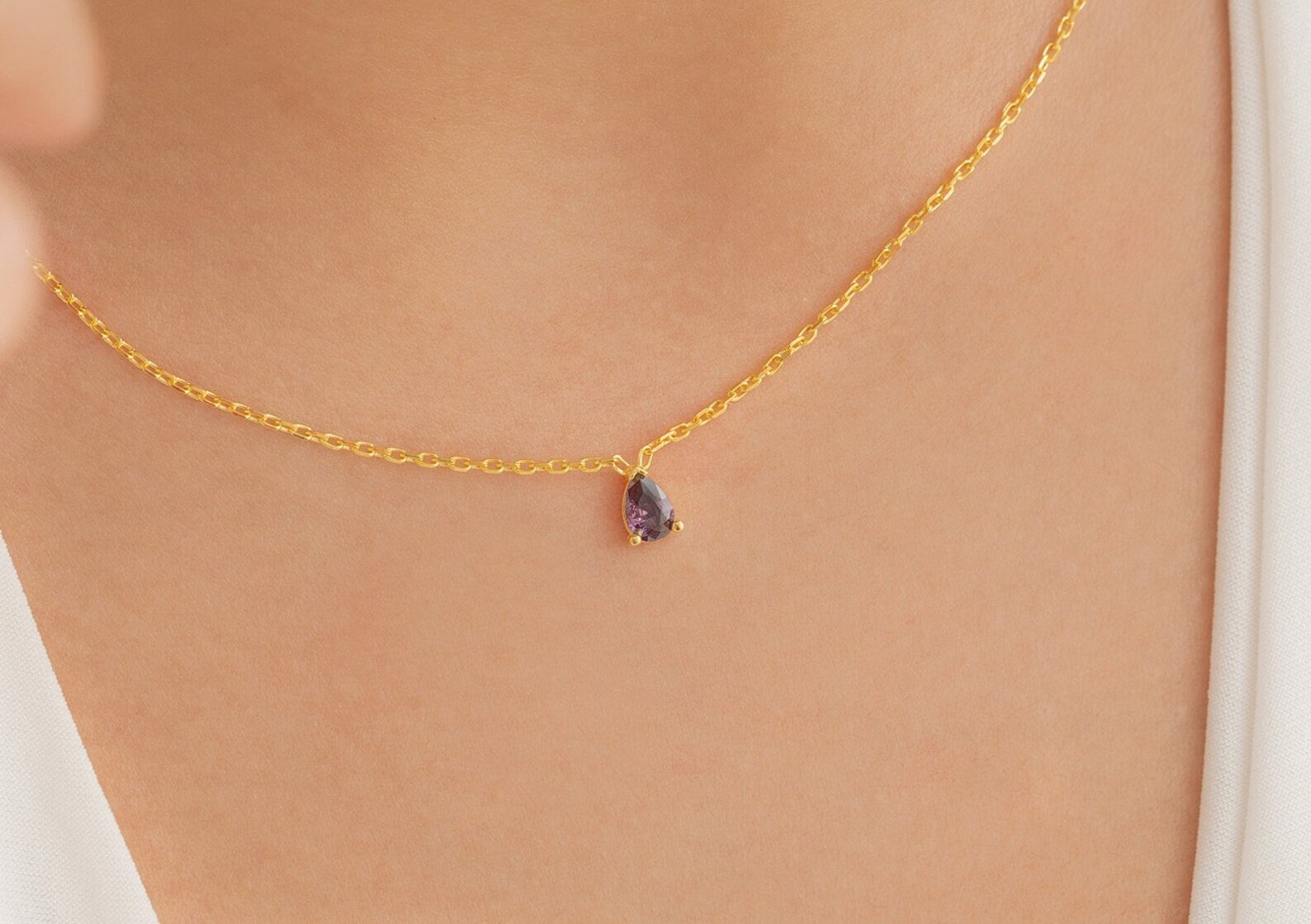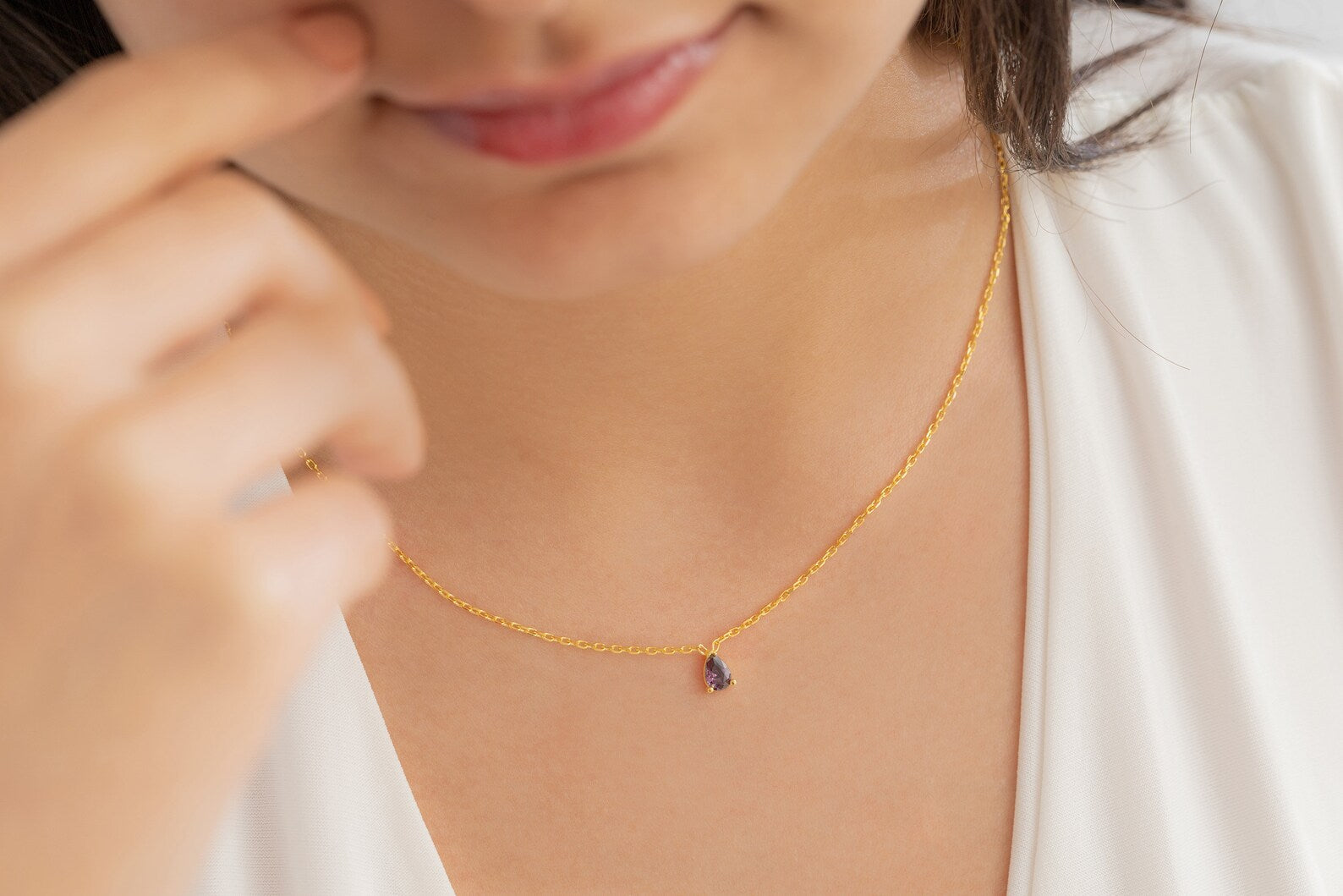 Damla Taşlı Kolye | 14 Ayar Altın