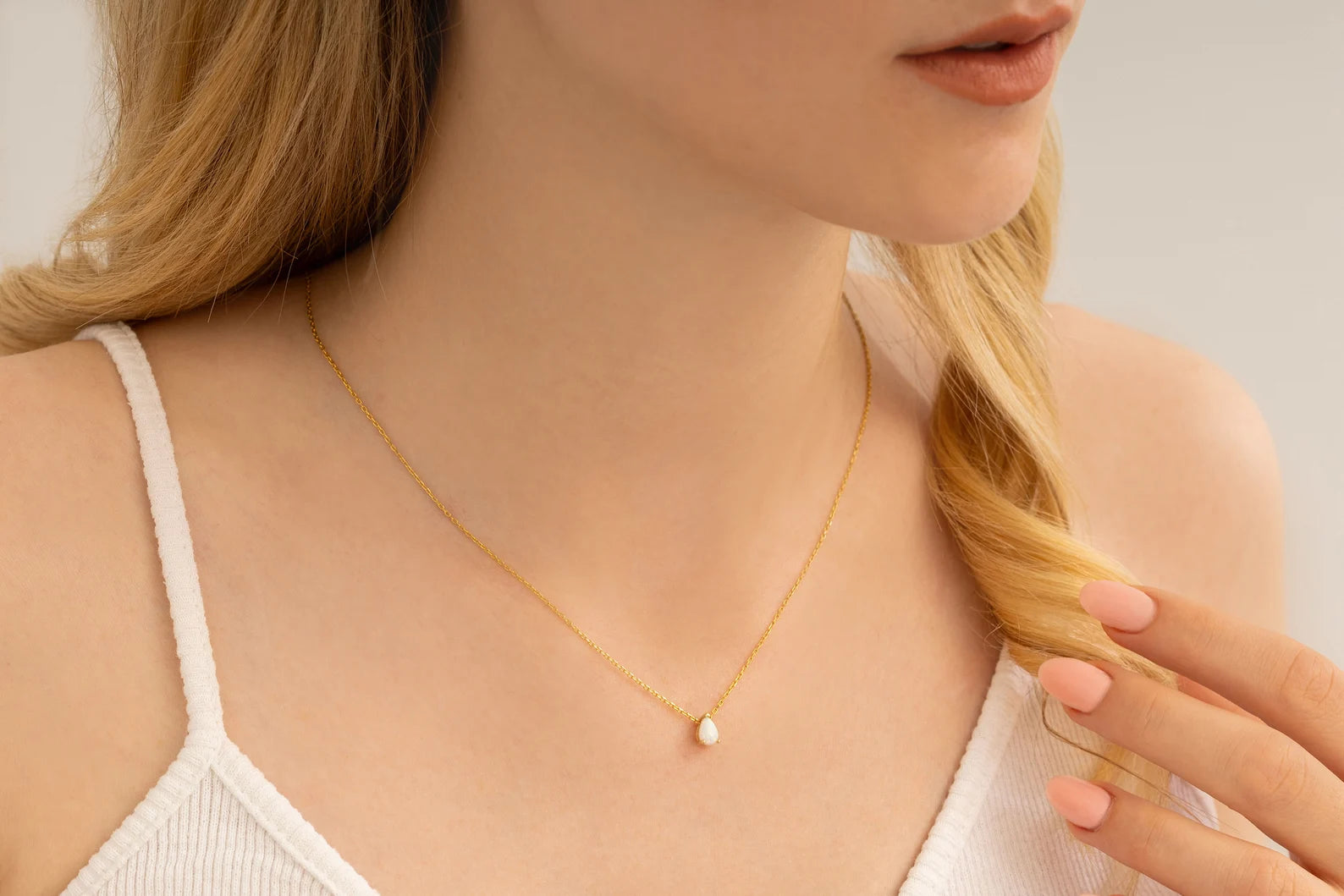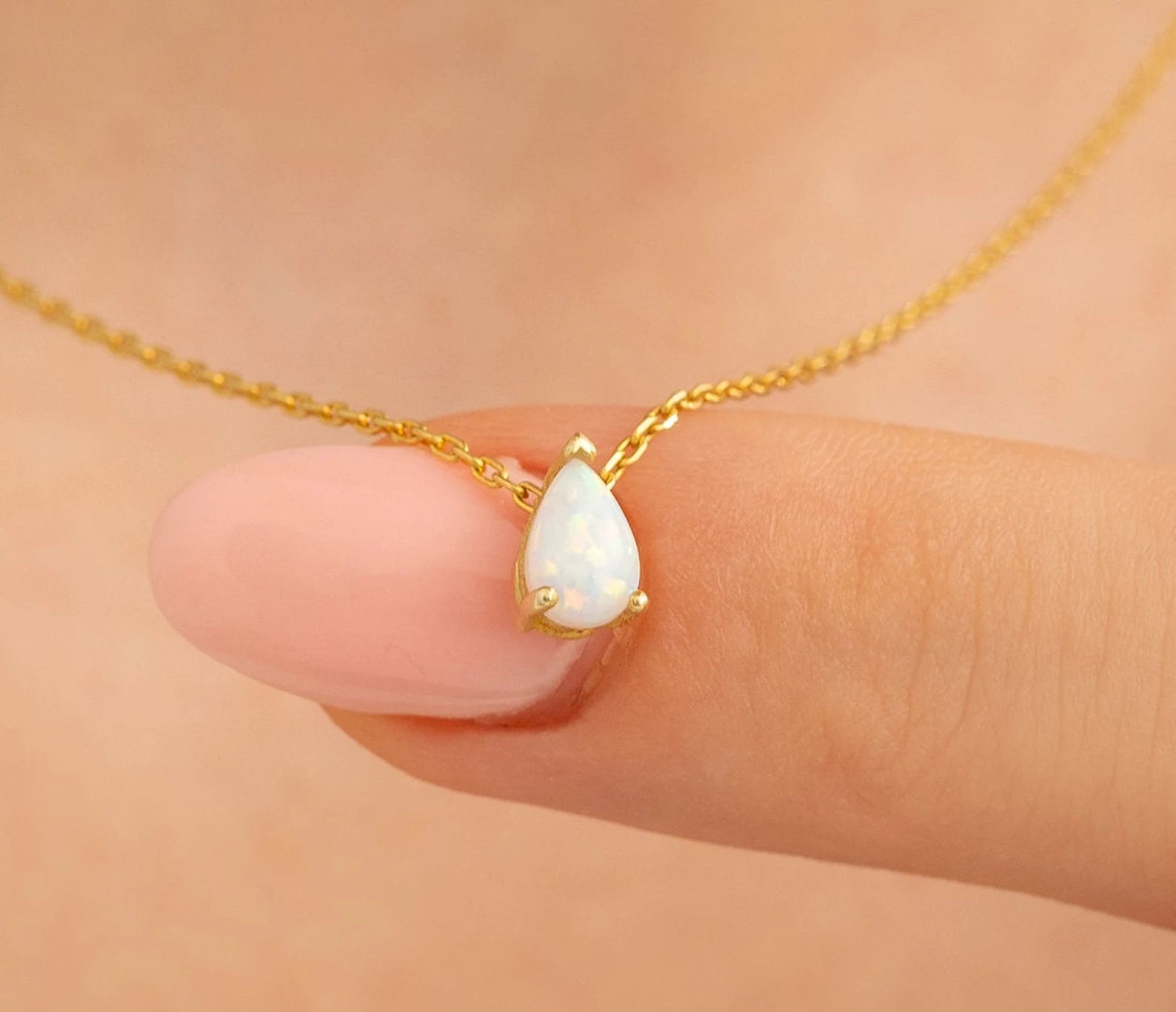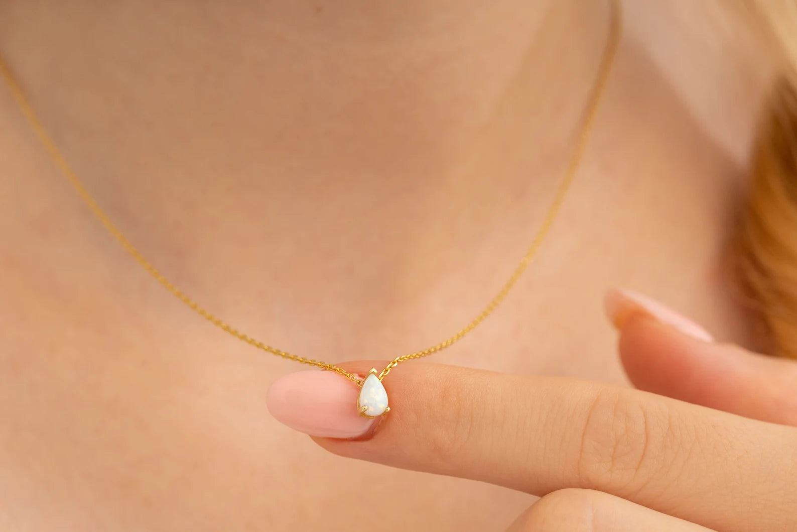 Damla Taşlı Beyaz Opal Kolye | 14 Ayar Altın