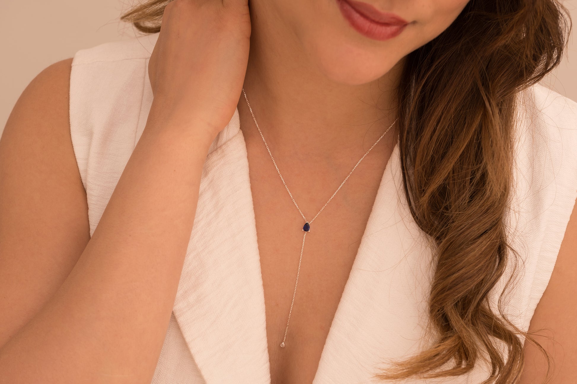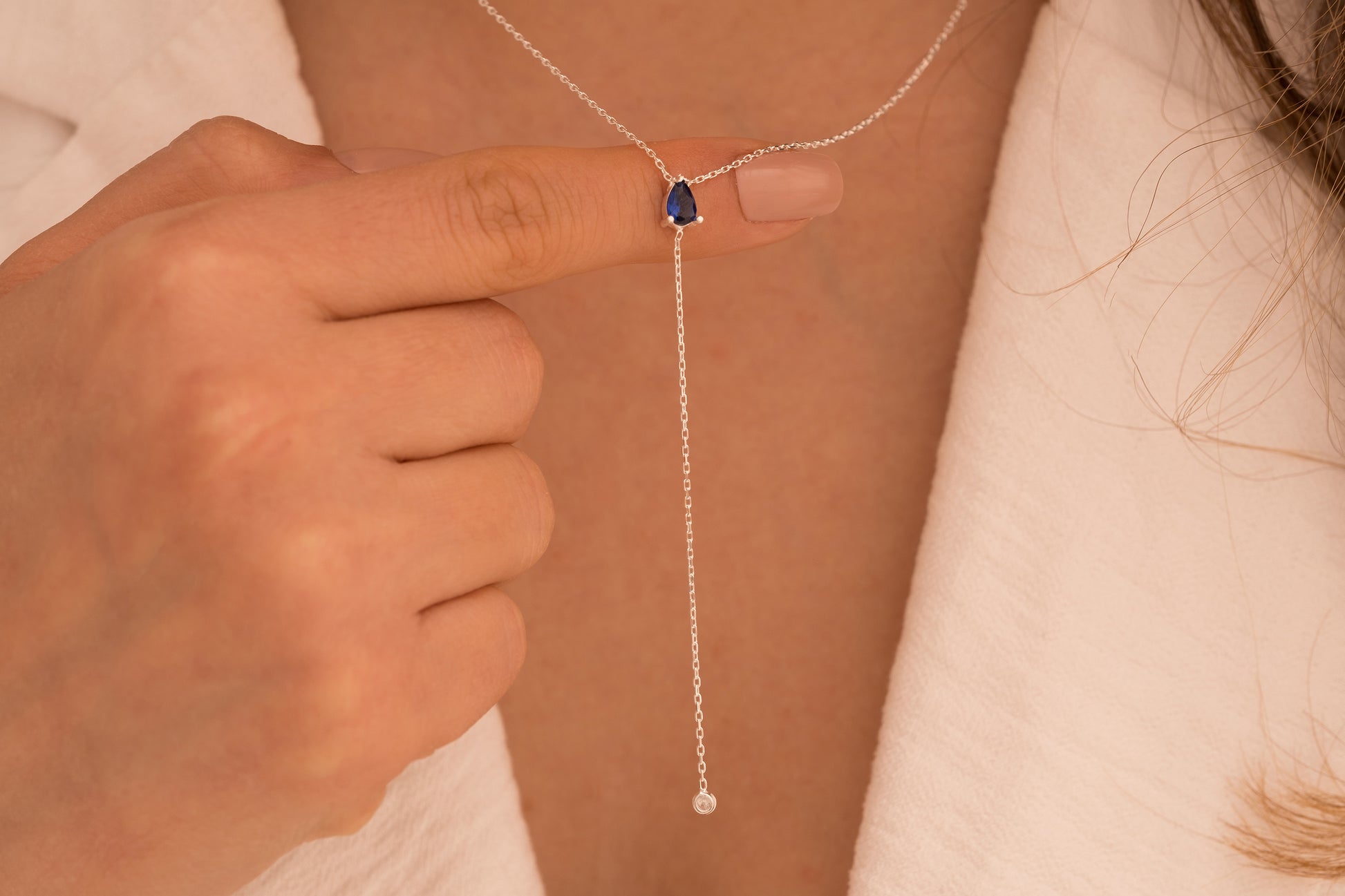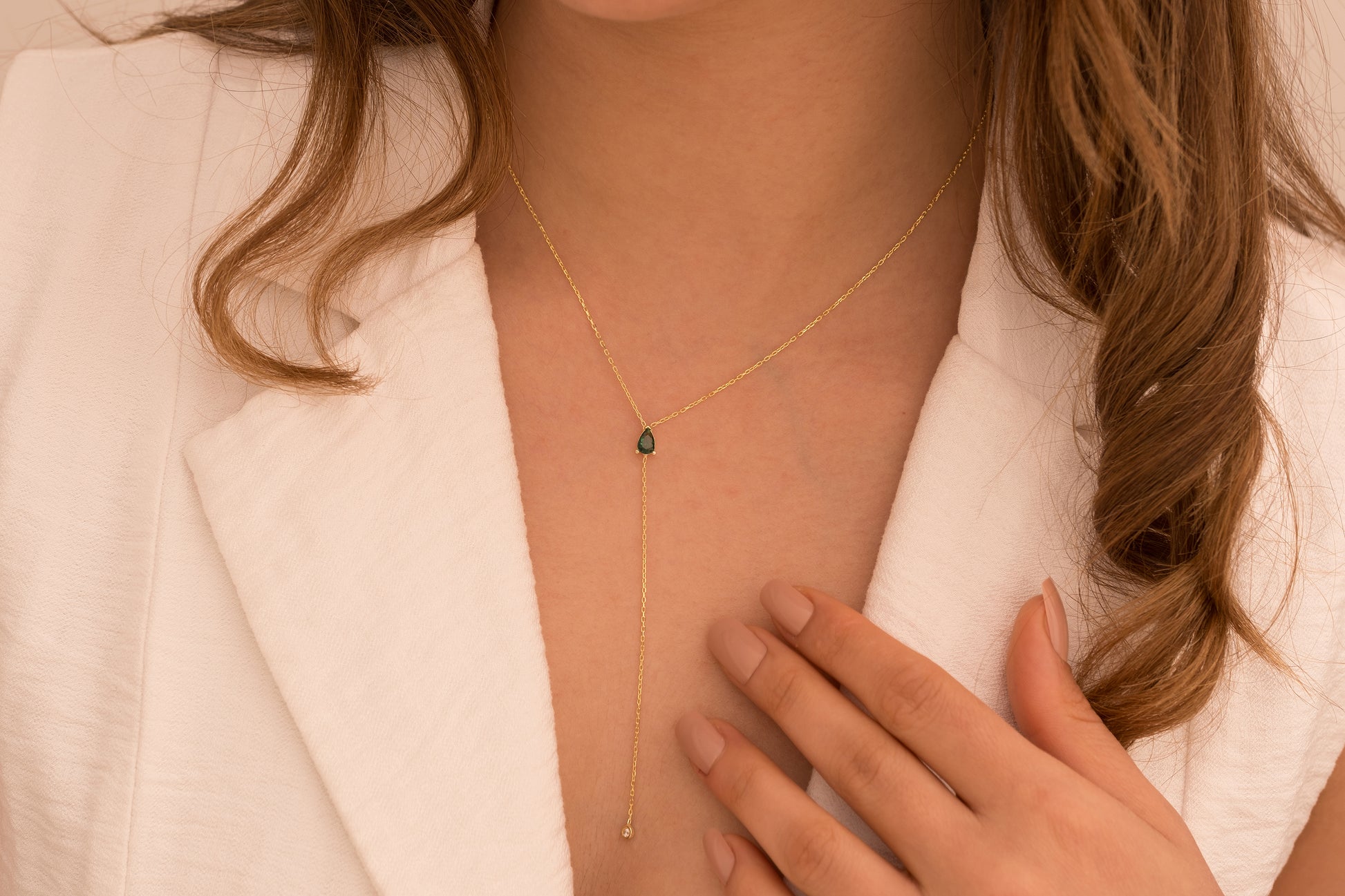 Damla Taşlı Y Kolye | 14 Ayar Altın