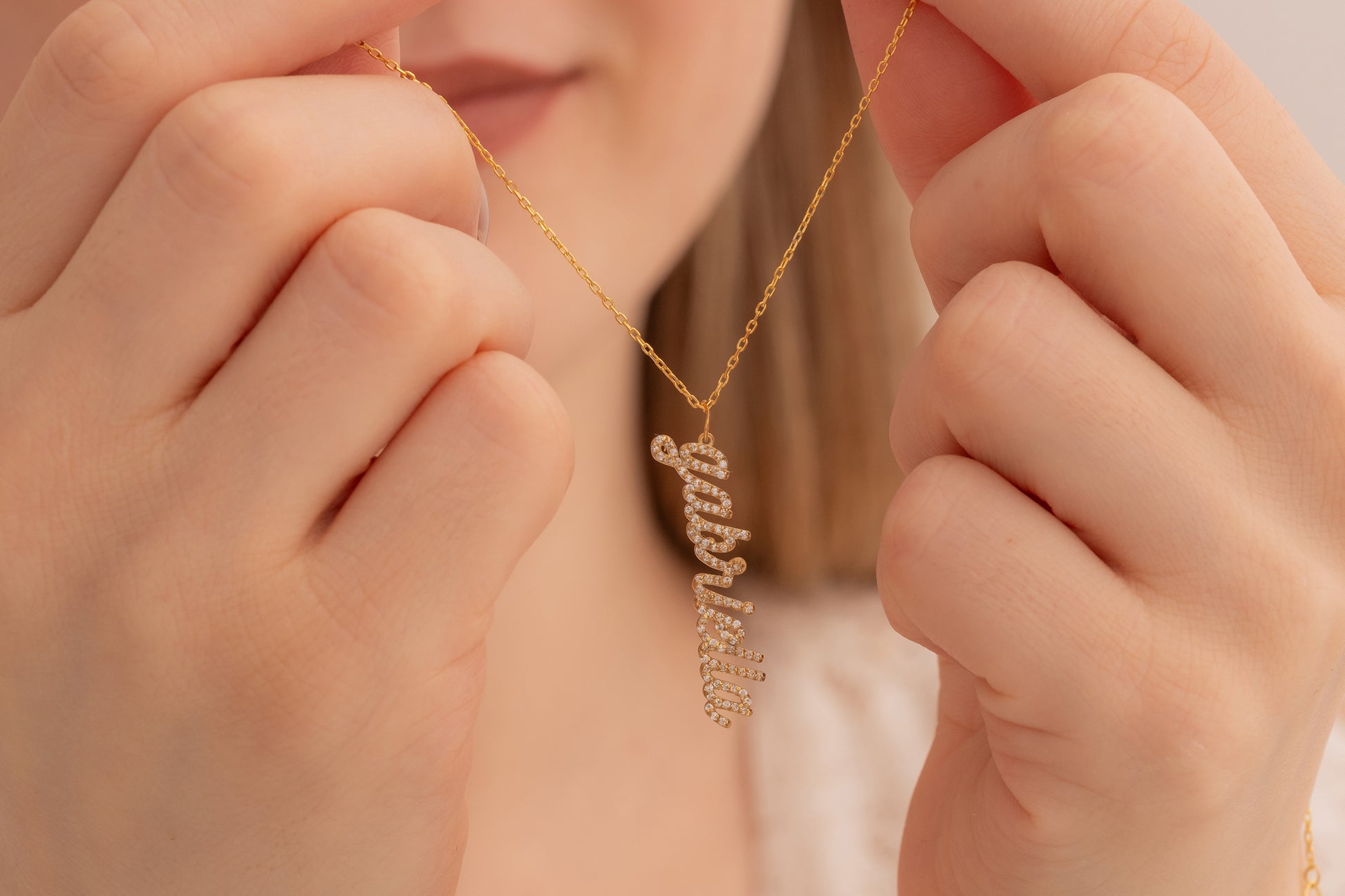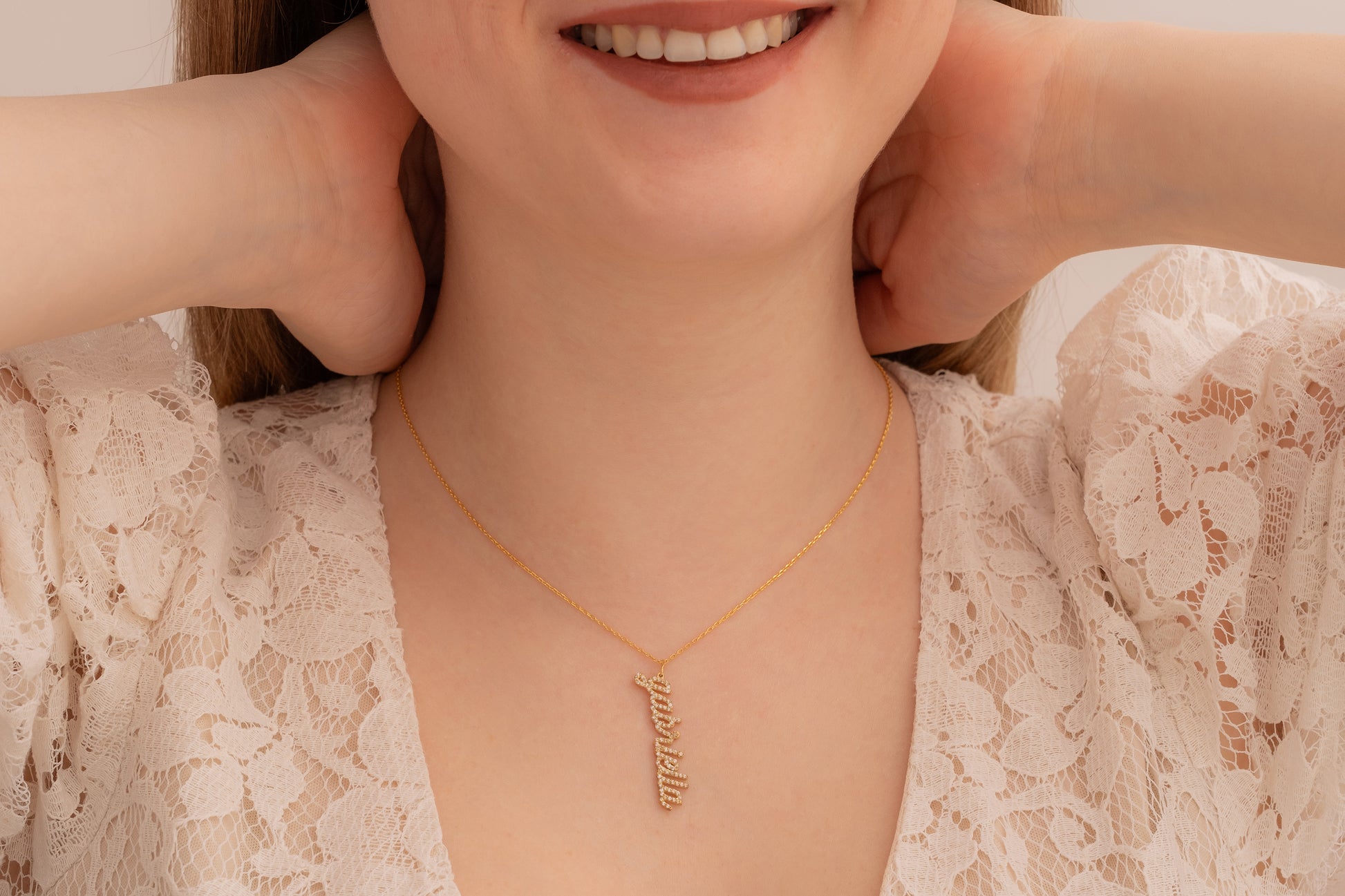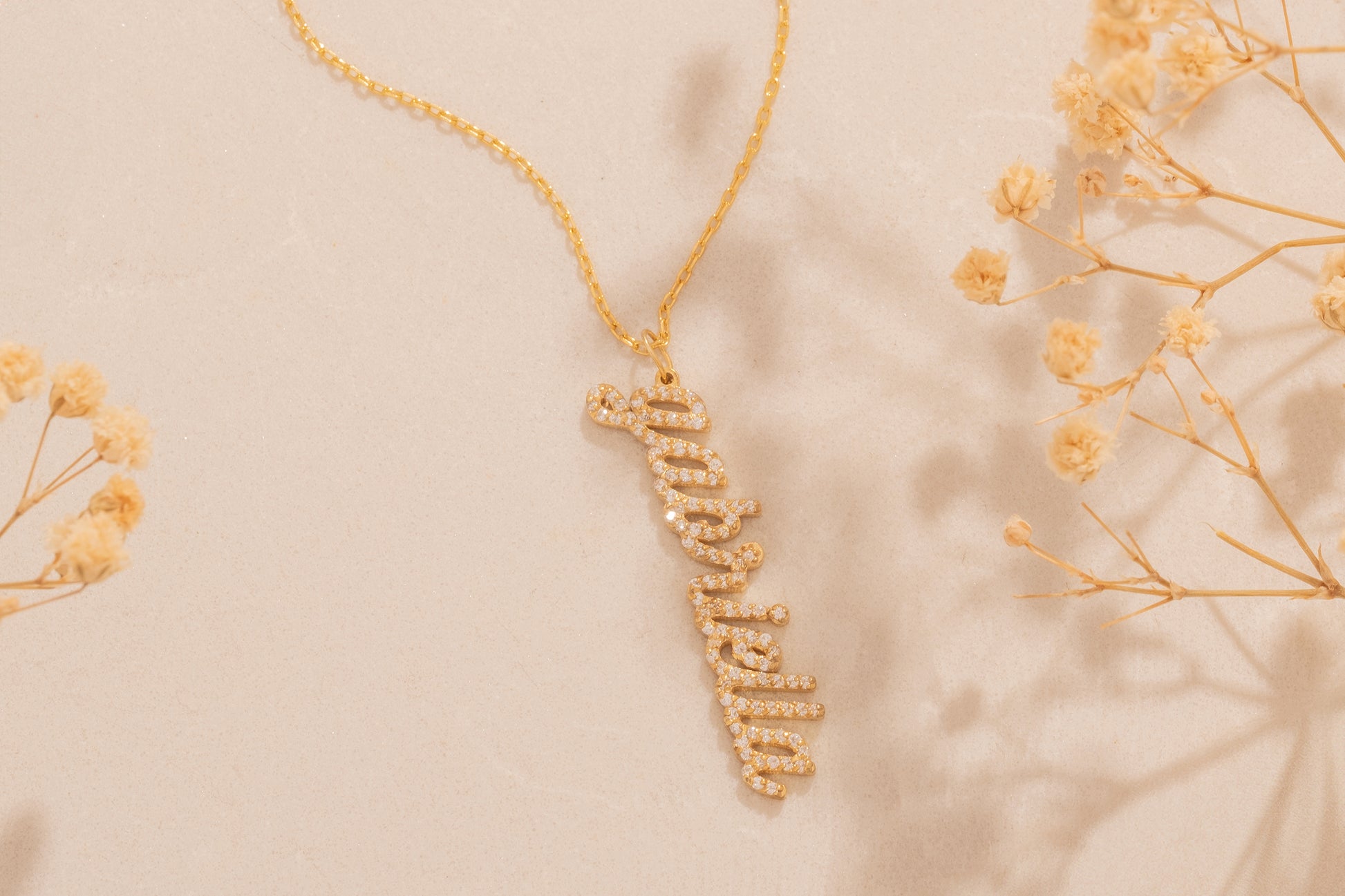 Zirkon Taşlı Dikey İsim Kolye | 925 Gümüş