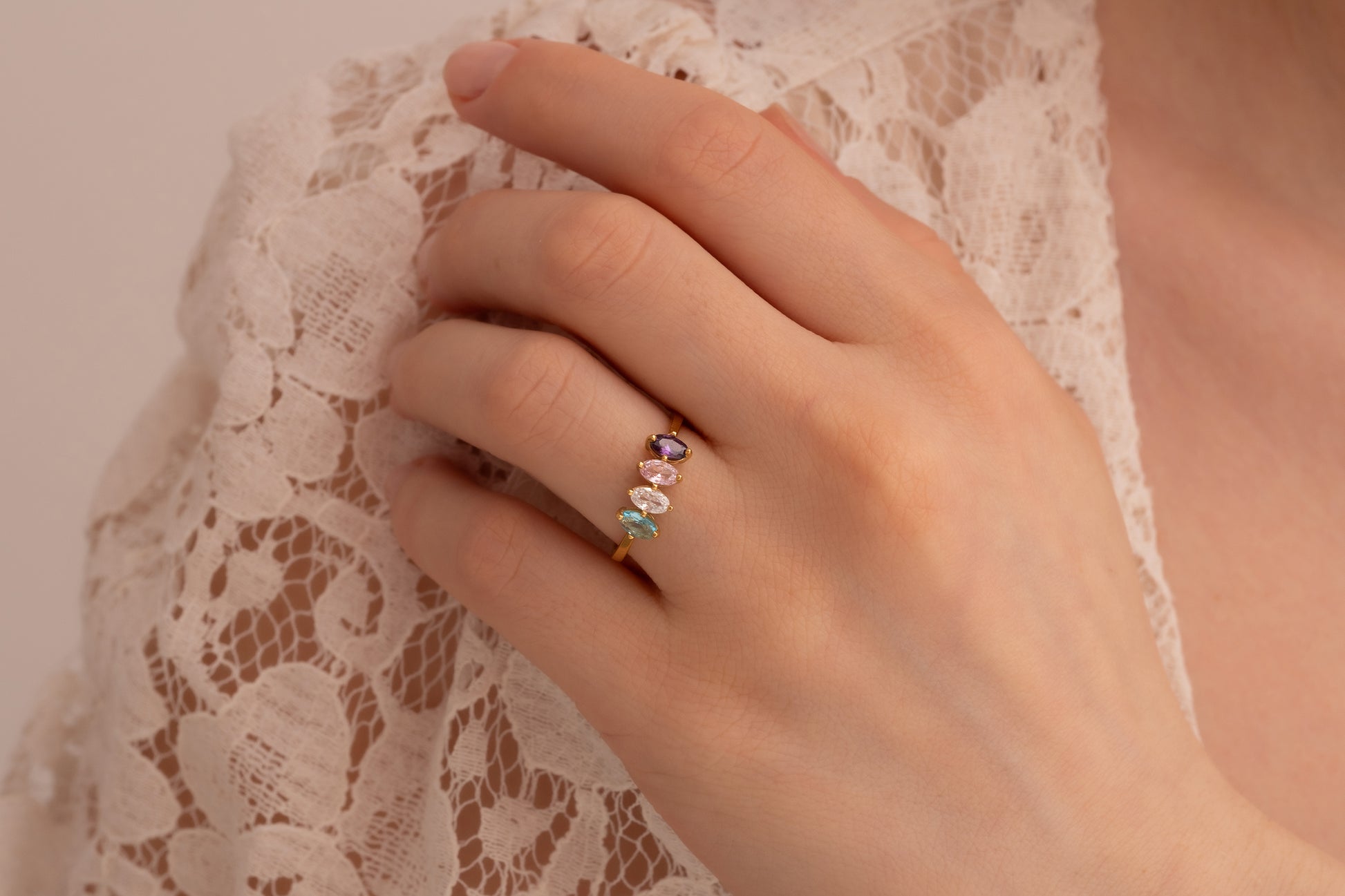 Doğum Taşlı Minimal Yüzük | 14 Ayar Altın