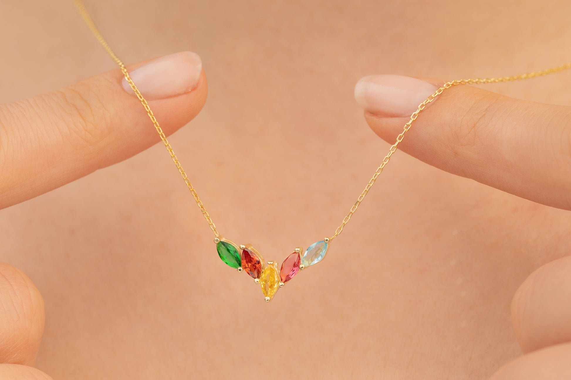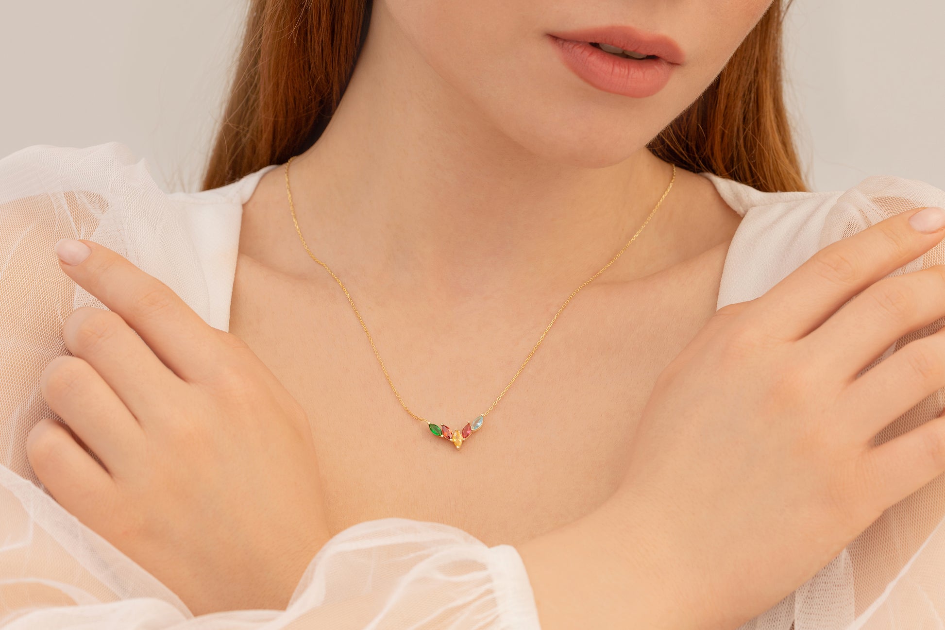 Asimetrik Mekik Doğum Taşlı Kolye | 14 Ayar Kolye