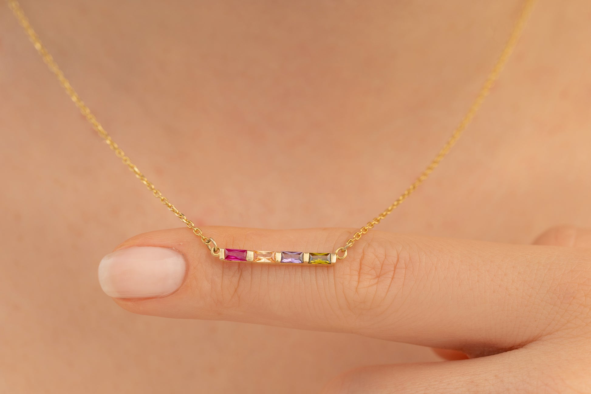 Satın Alınan Ürün: Yatay Baget Taşlı Kolye | 14 Ayar Altın