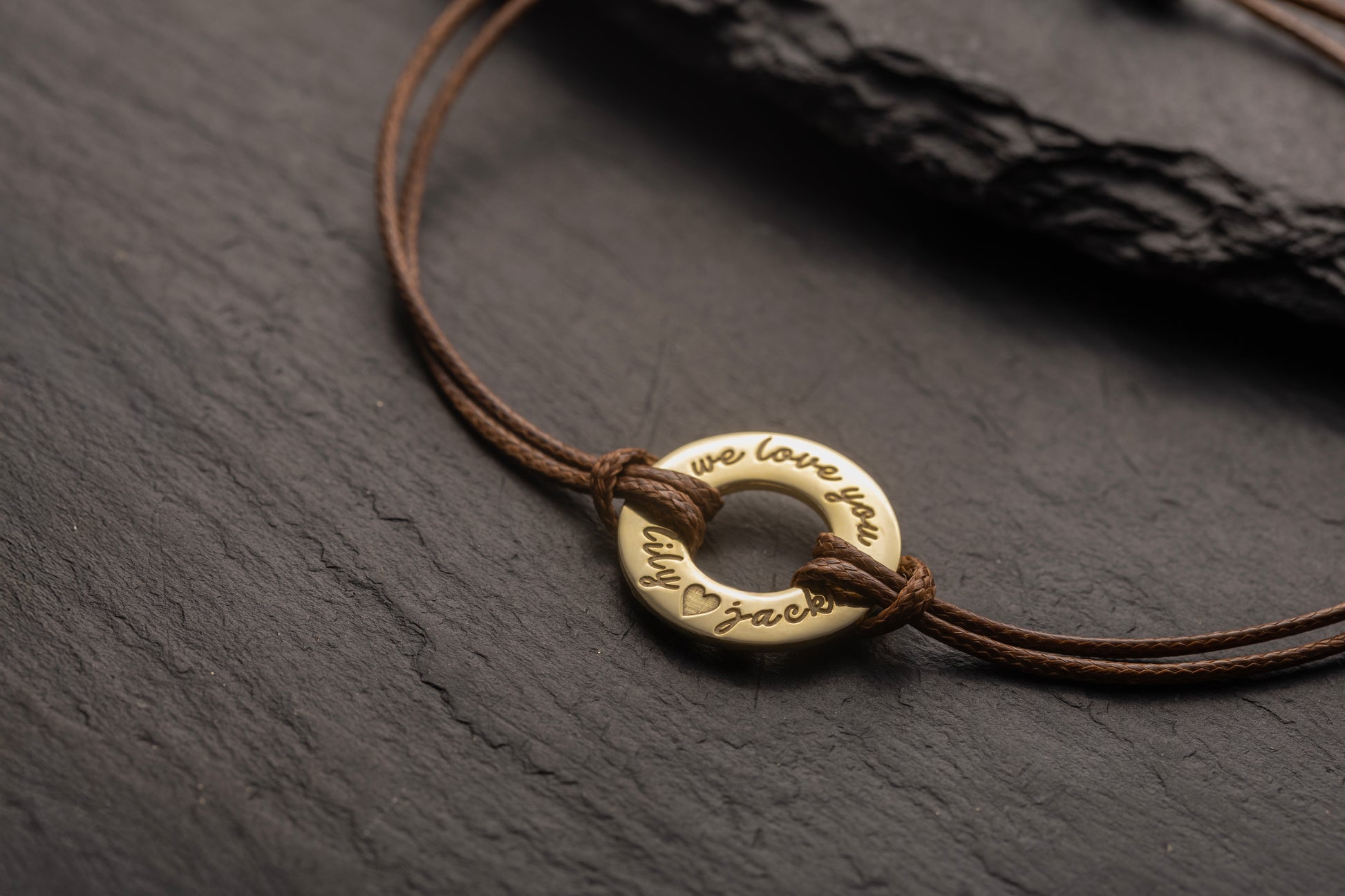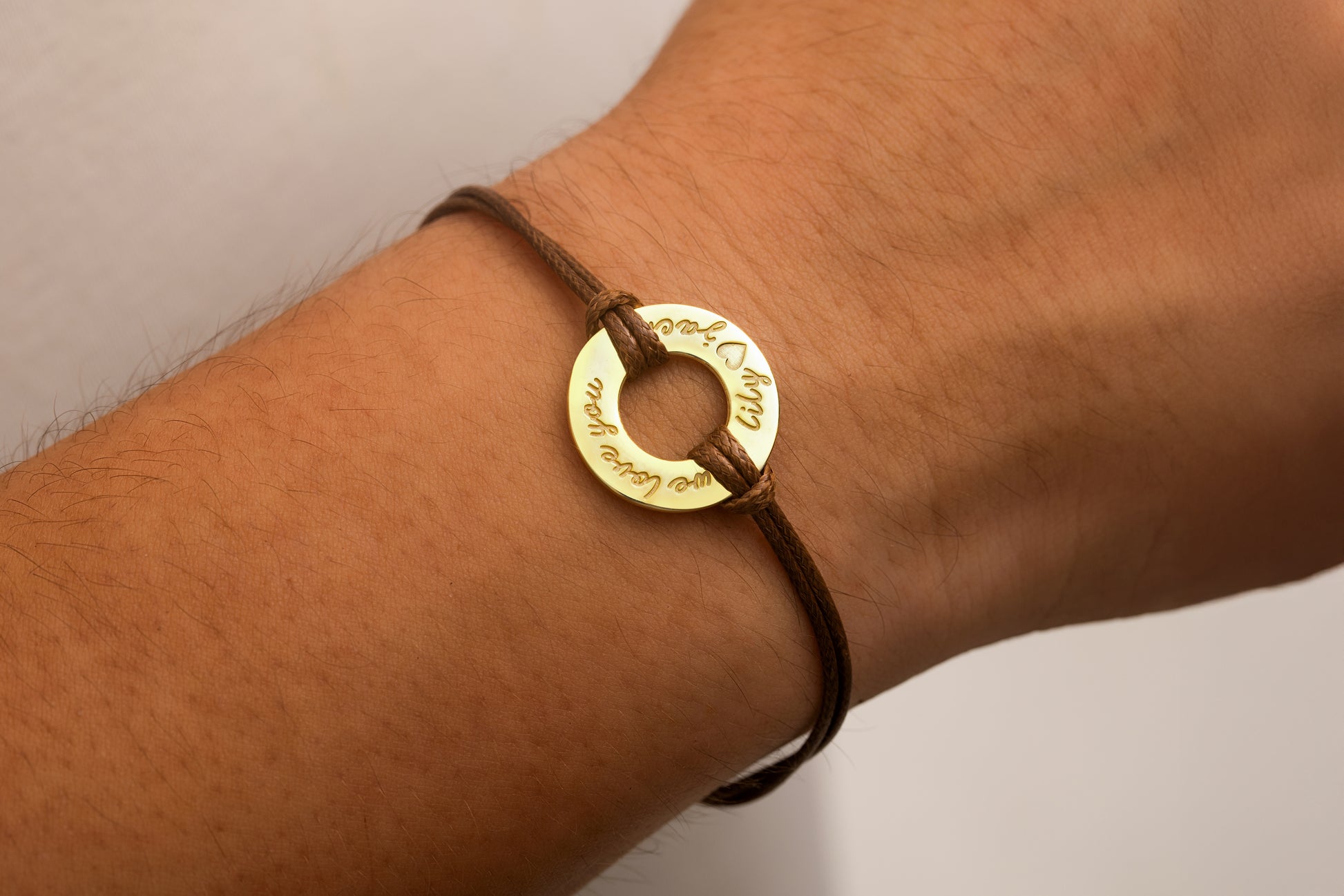 Gold Kaplama Halkalı Kahverengi İnce Örgülü Deri Bileklik | 925 Gümüş