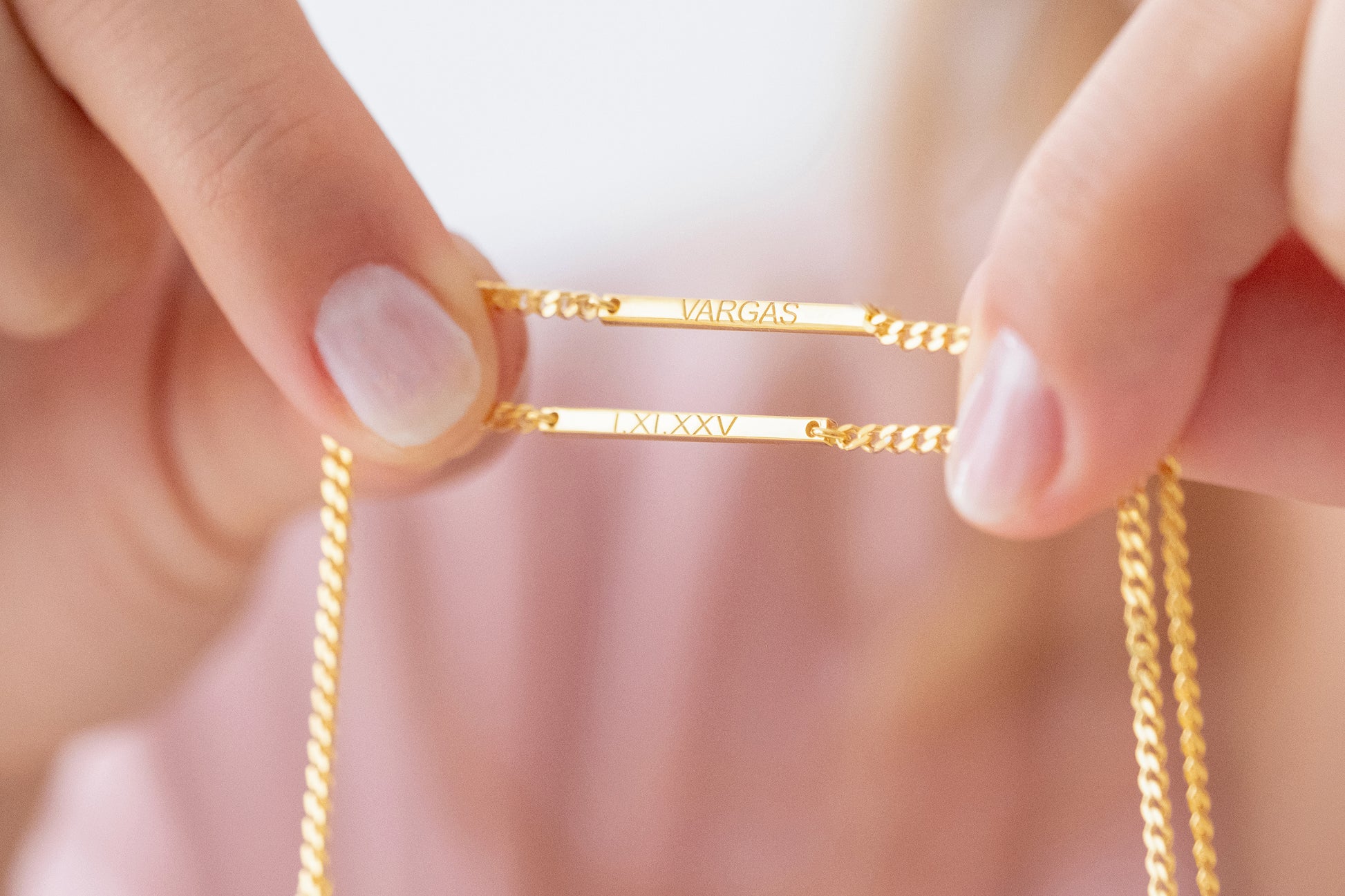 Satın Alınan Ürün: Yatay Baget Taşlı Kolye | 14 Ayar Altın