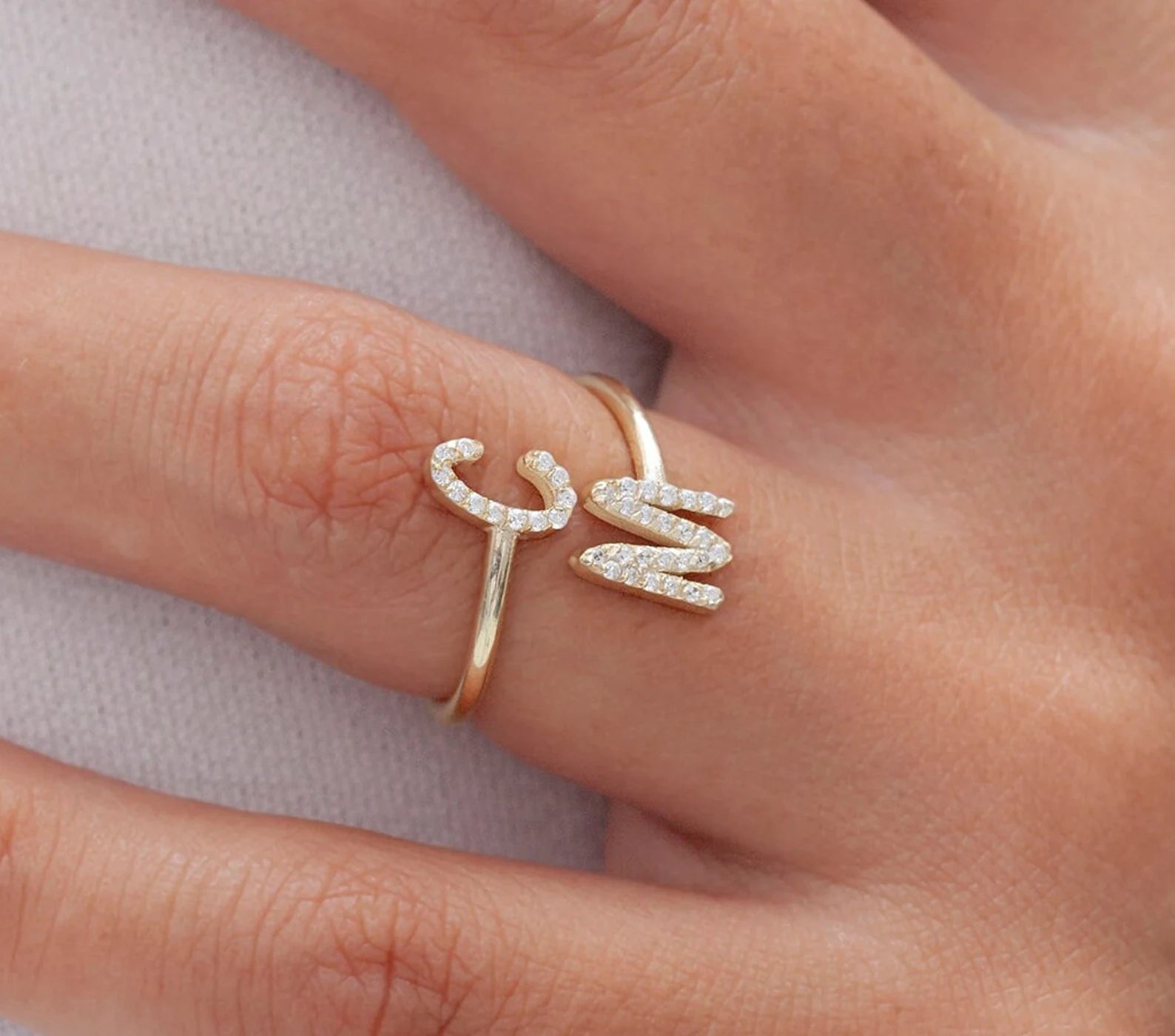 İki Harfli Ayarlanabilir Yüzük | 925 Gümüş