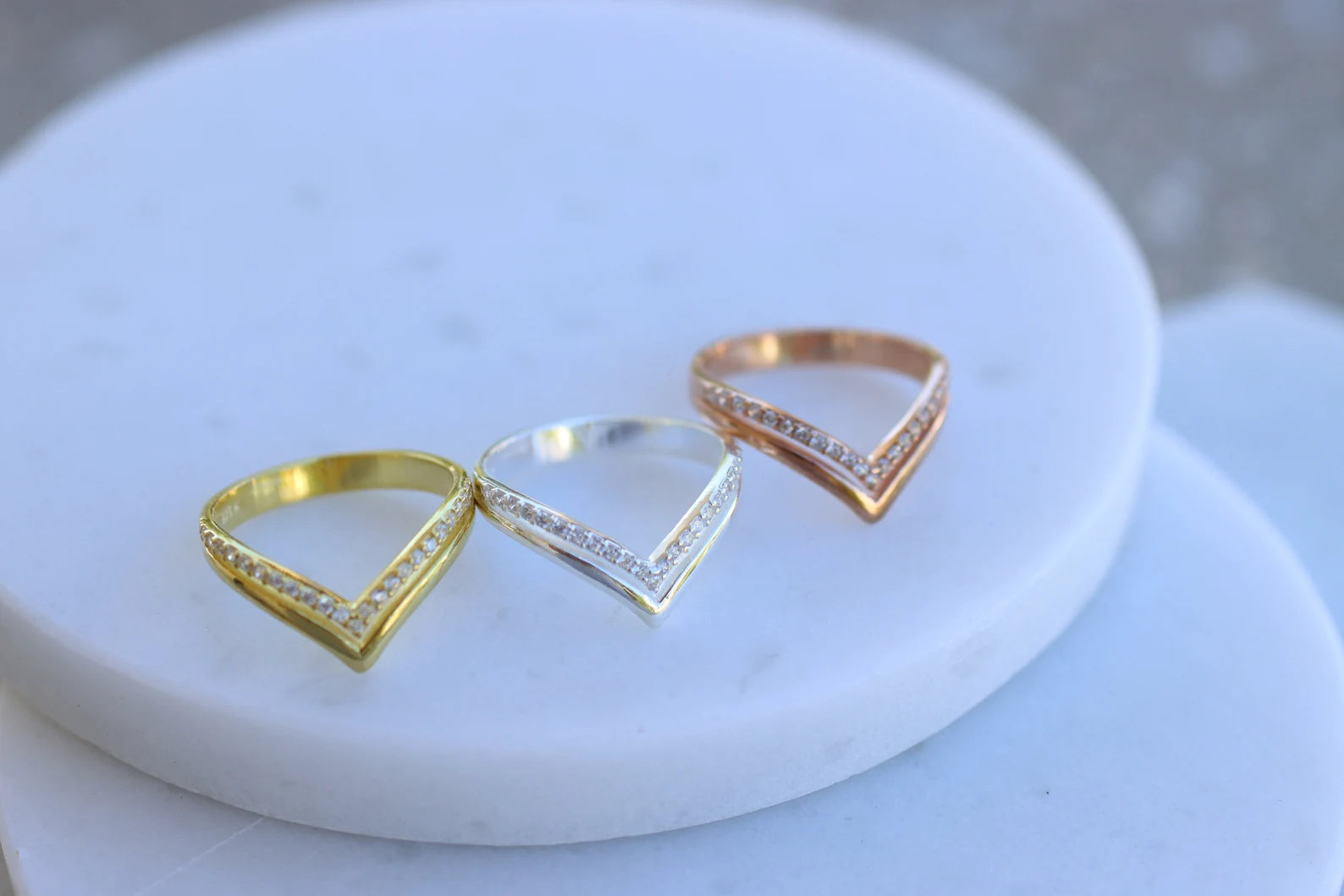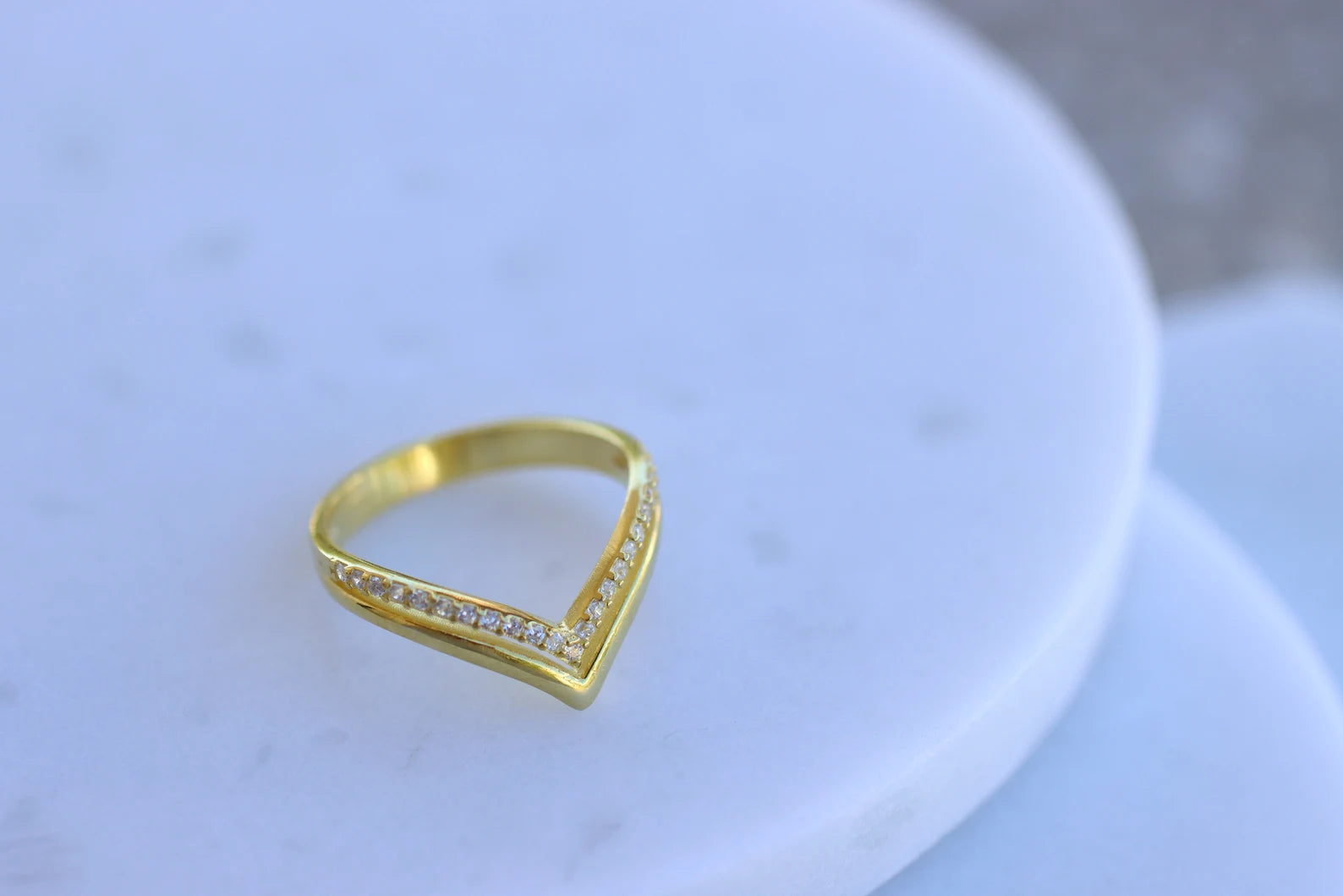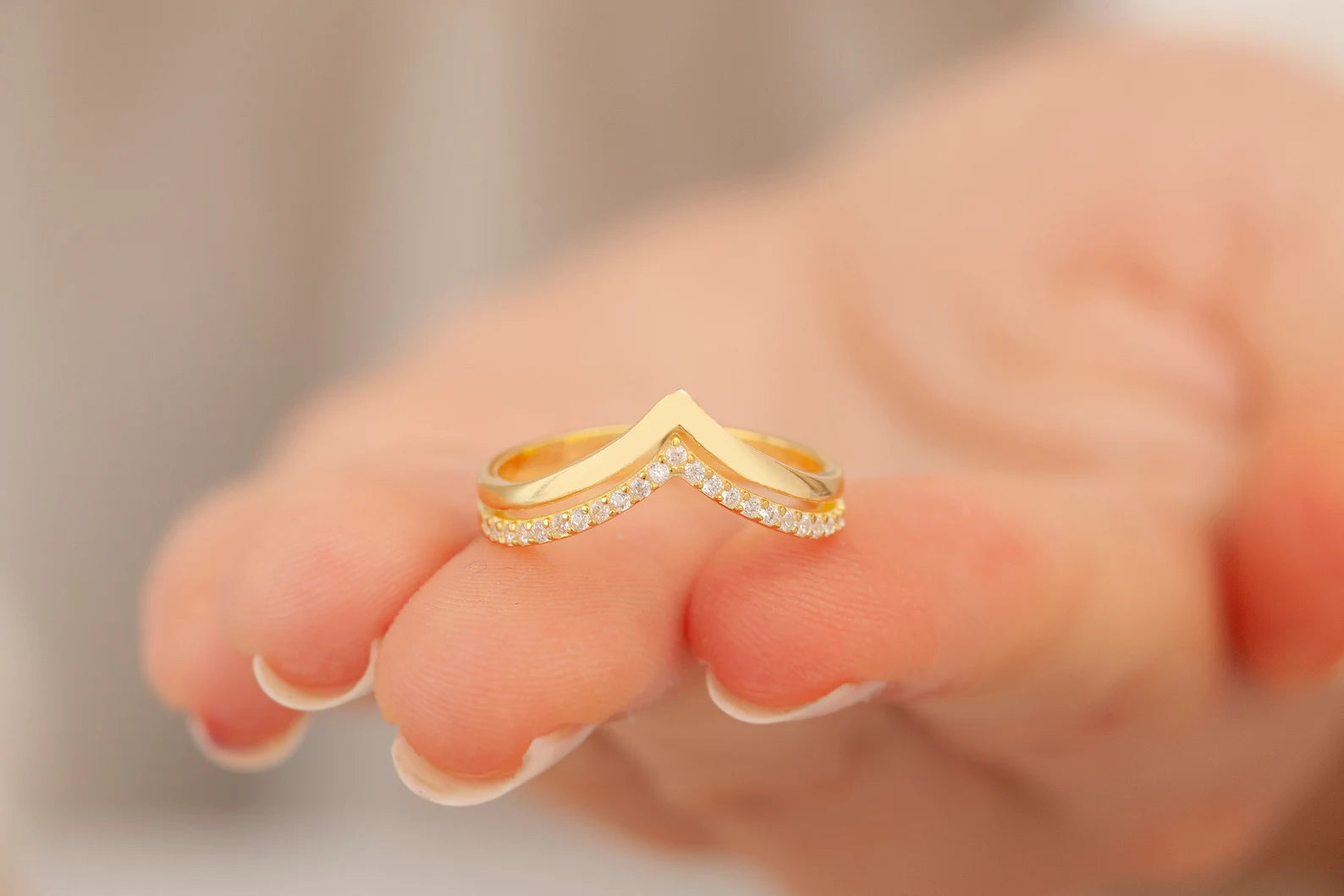 Zirkon Taşlı Çift Sıra V Yüzük | 925 Gümüş