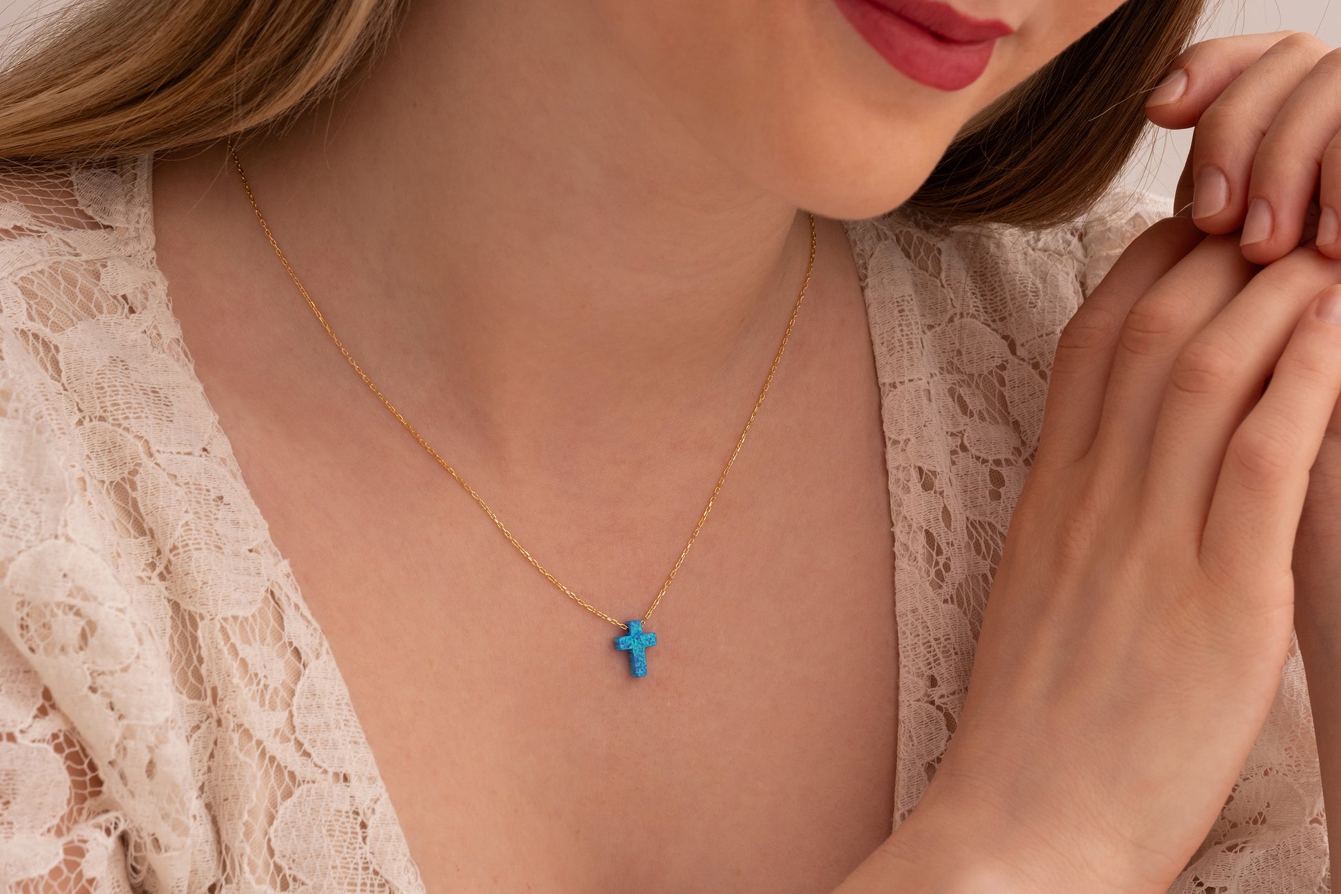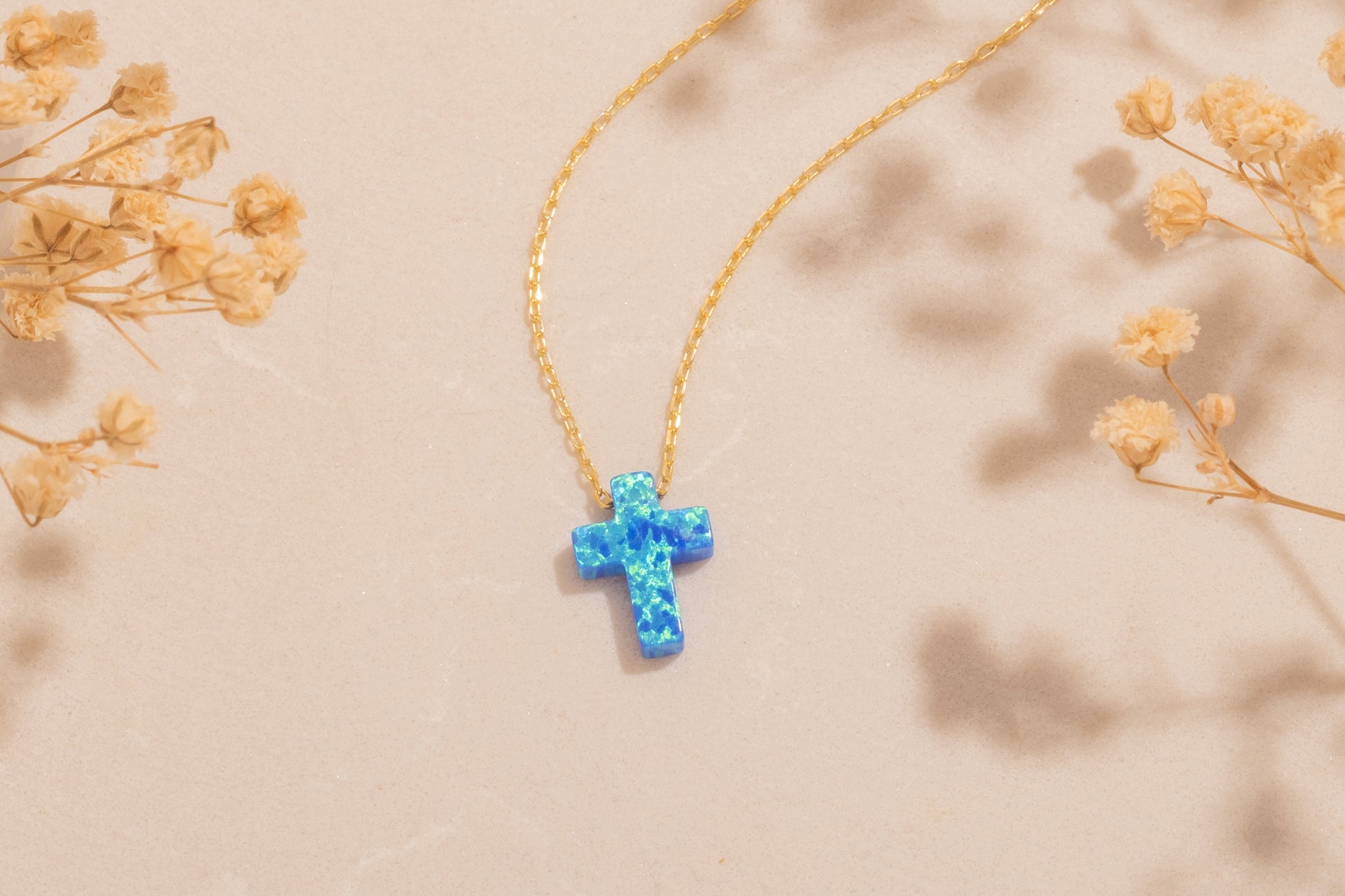 Opal Haç Kolye Kolye | 14 Ayar Altın