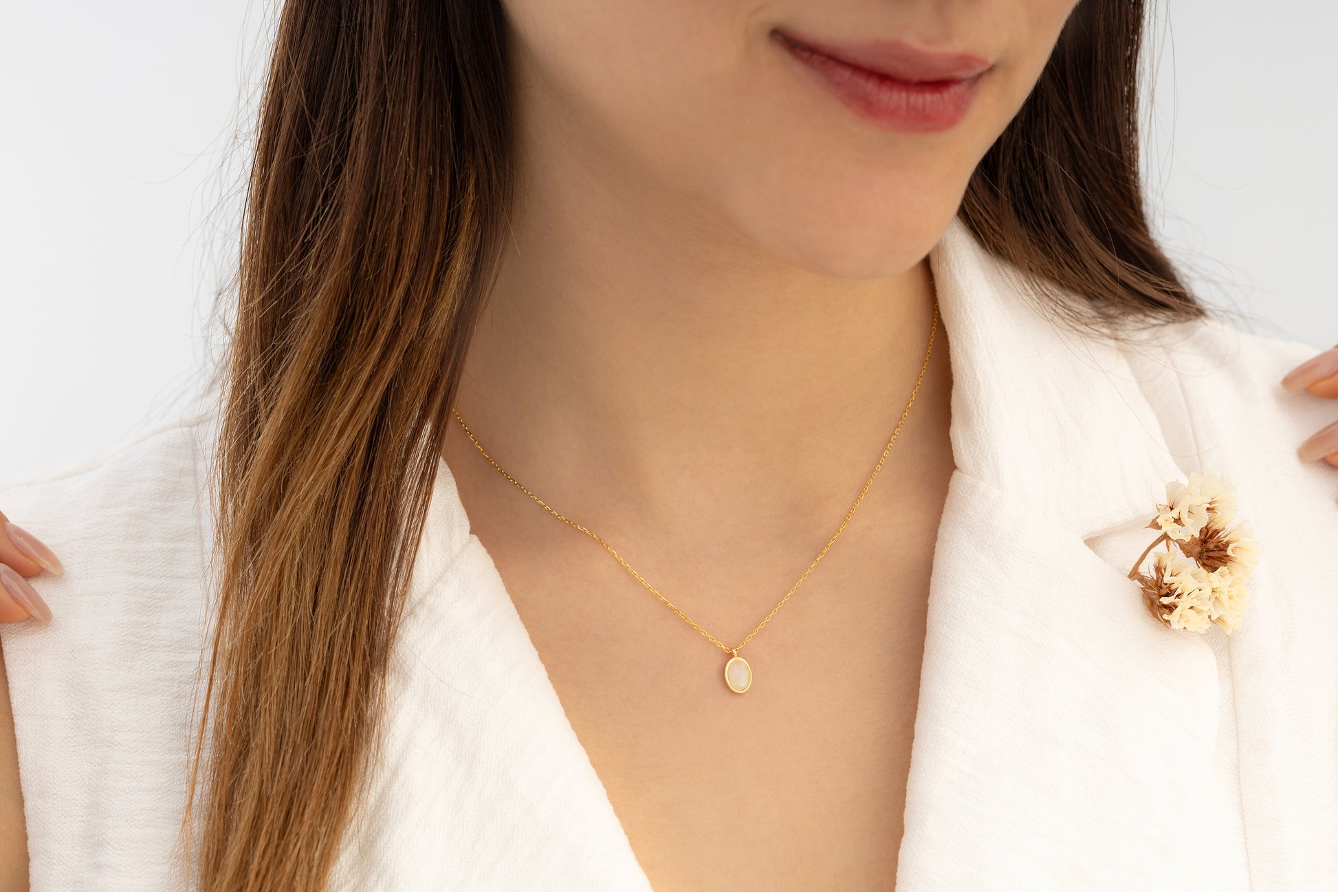 Beyaz Opal Taşlı Kolye | 14 Ayar Altın