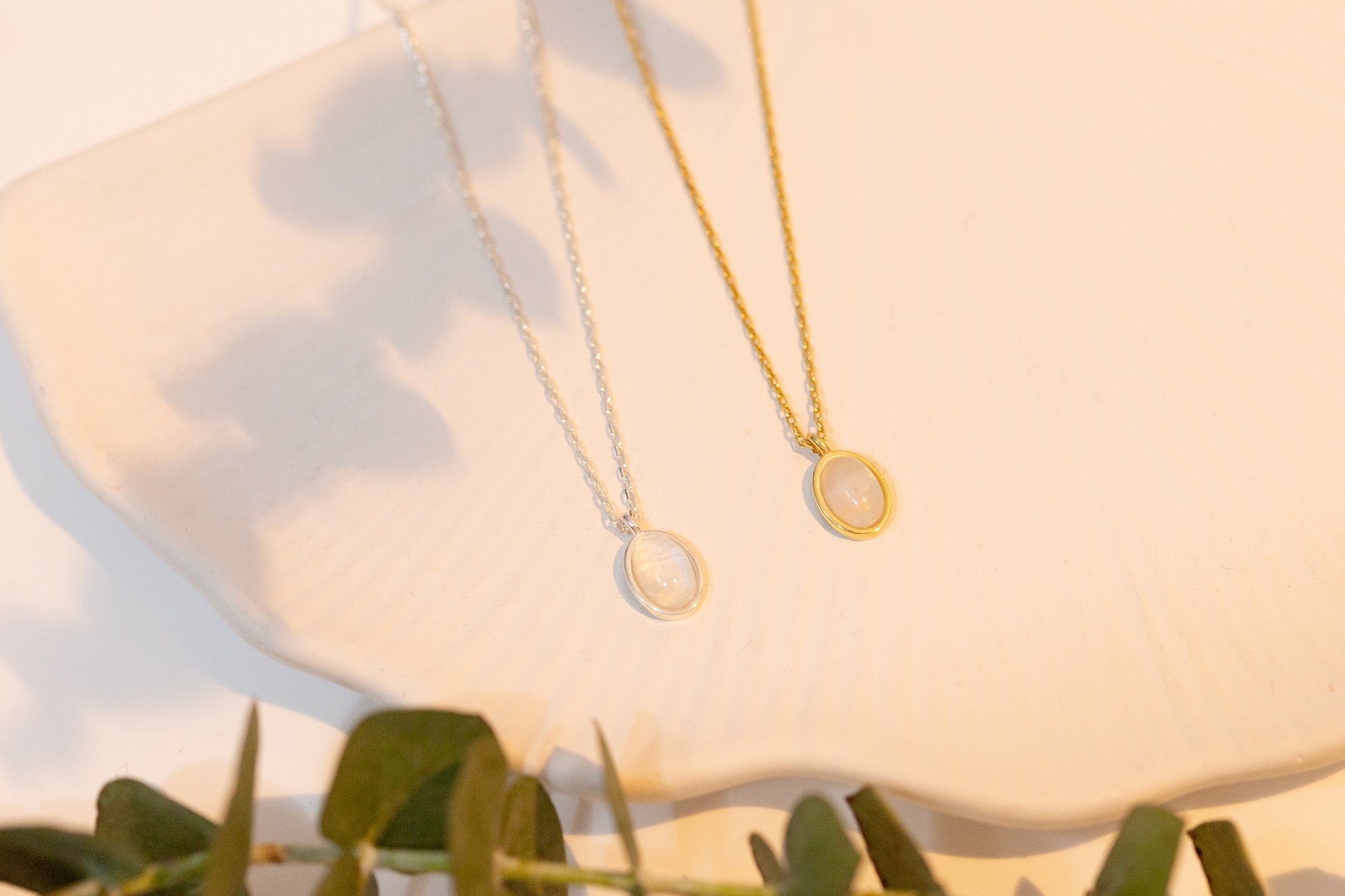 Beyaz Opal Taşlı Kolye | 925 Gümüş