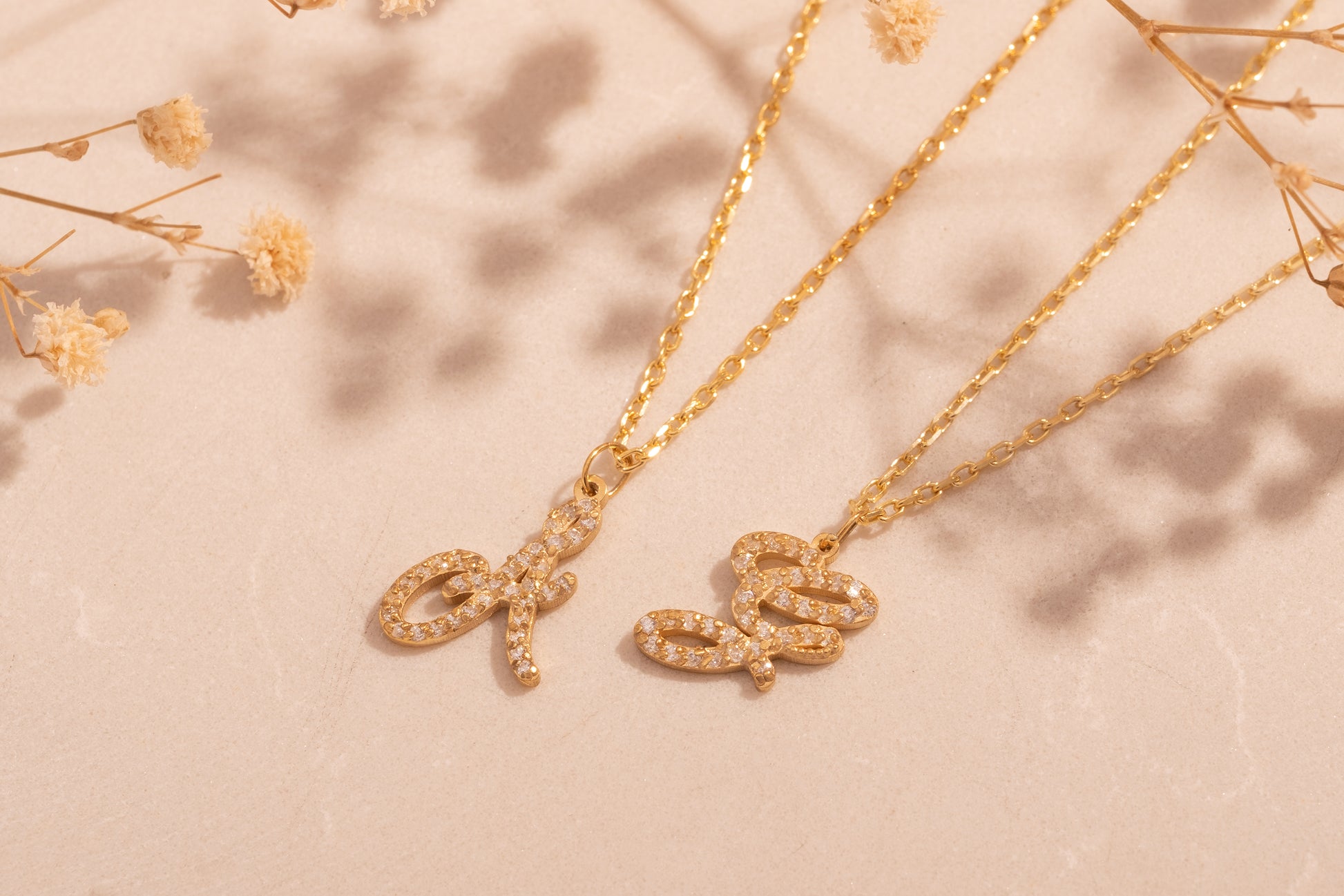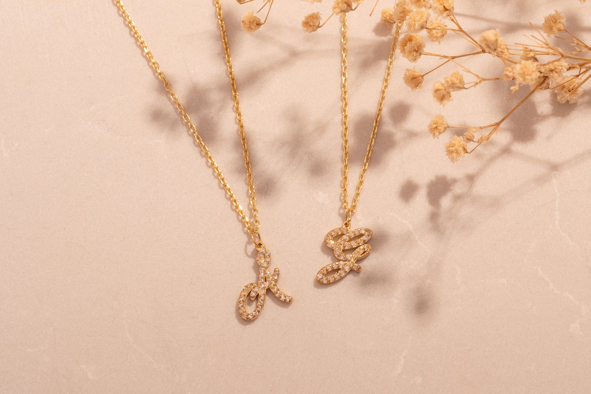 Sallantılı Taşlı Harf Kolye | 14 Ayar Altın