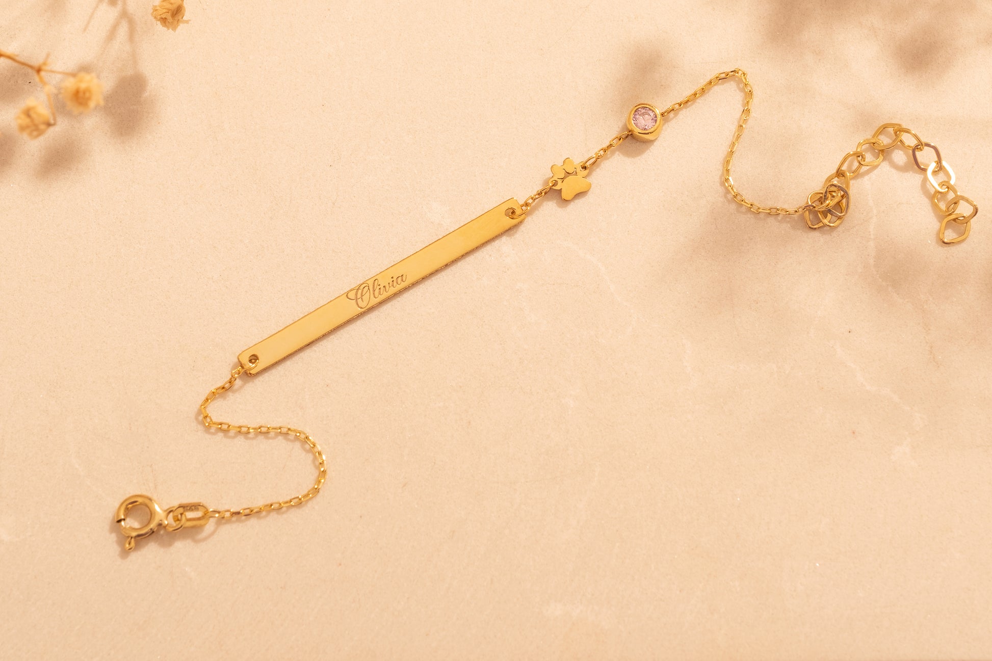 Doğum Taşlı Pati Figürlü İsim Bileklik | 925 Gümüş