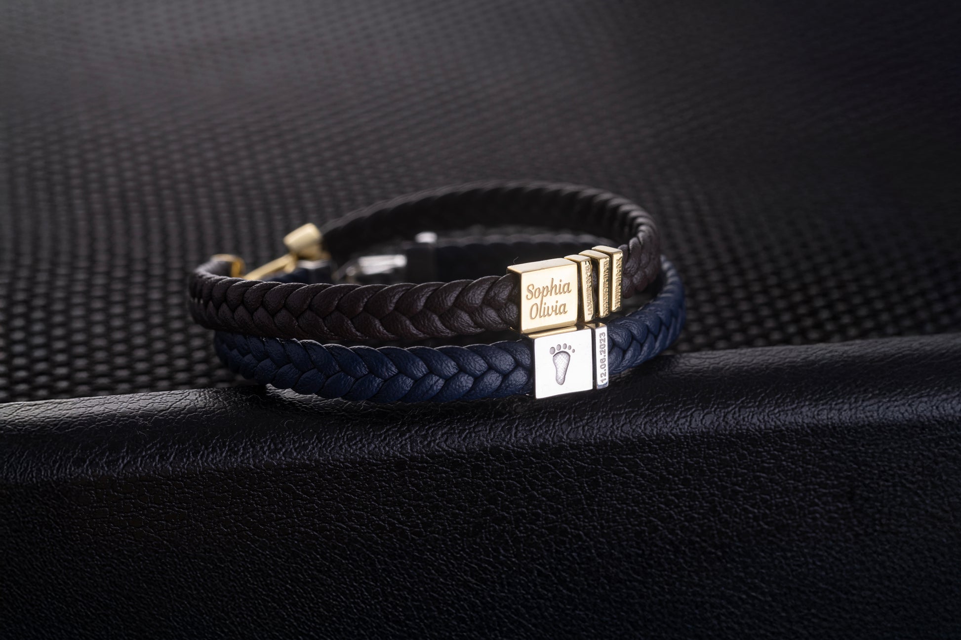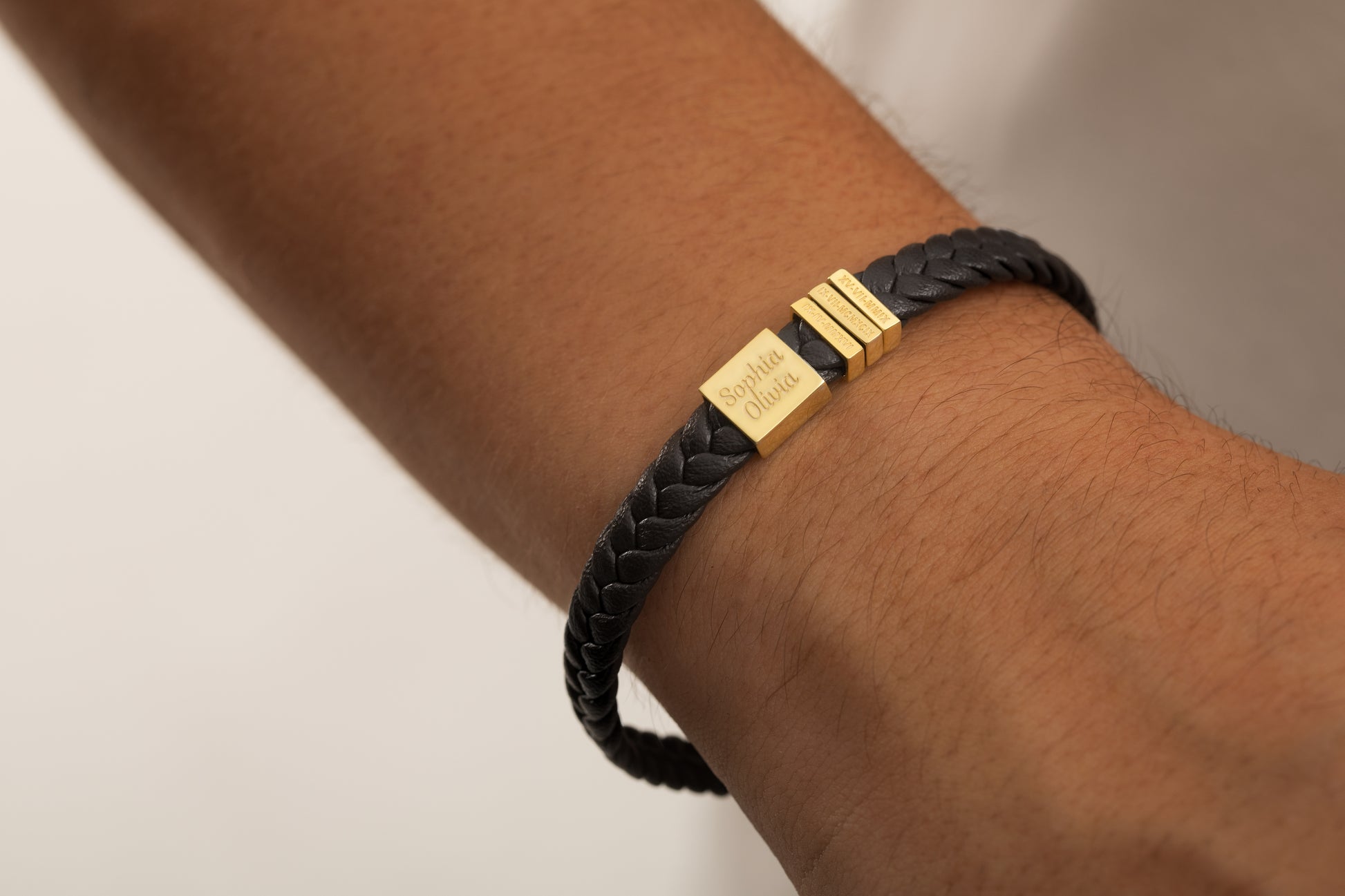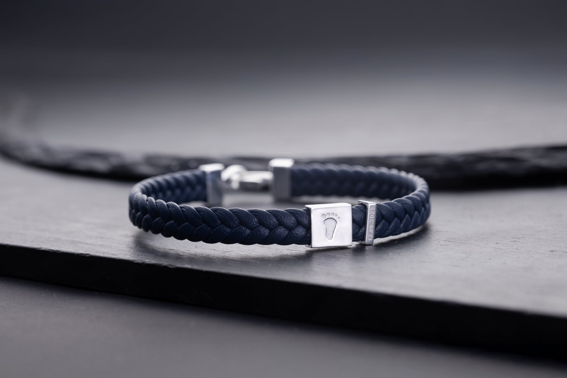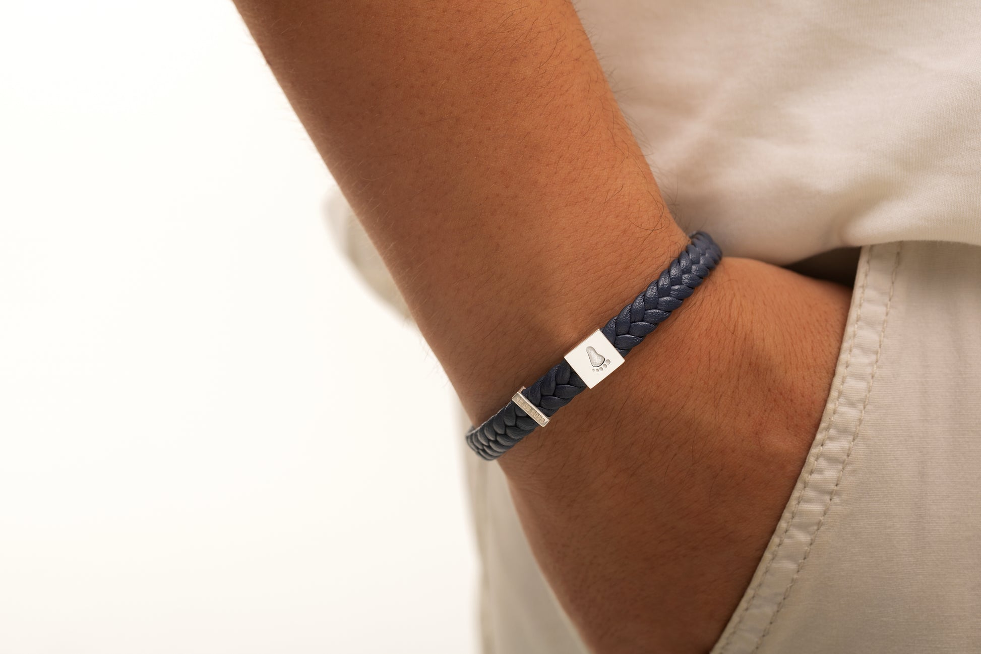 Gümüş Bagetli Presli Örgü Deri Bileklik | 925 Gümüş