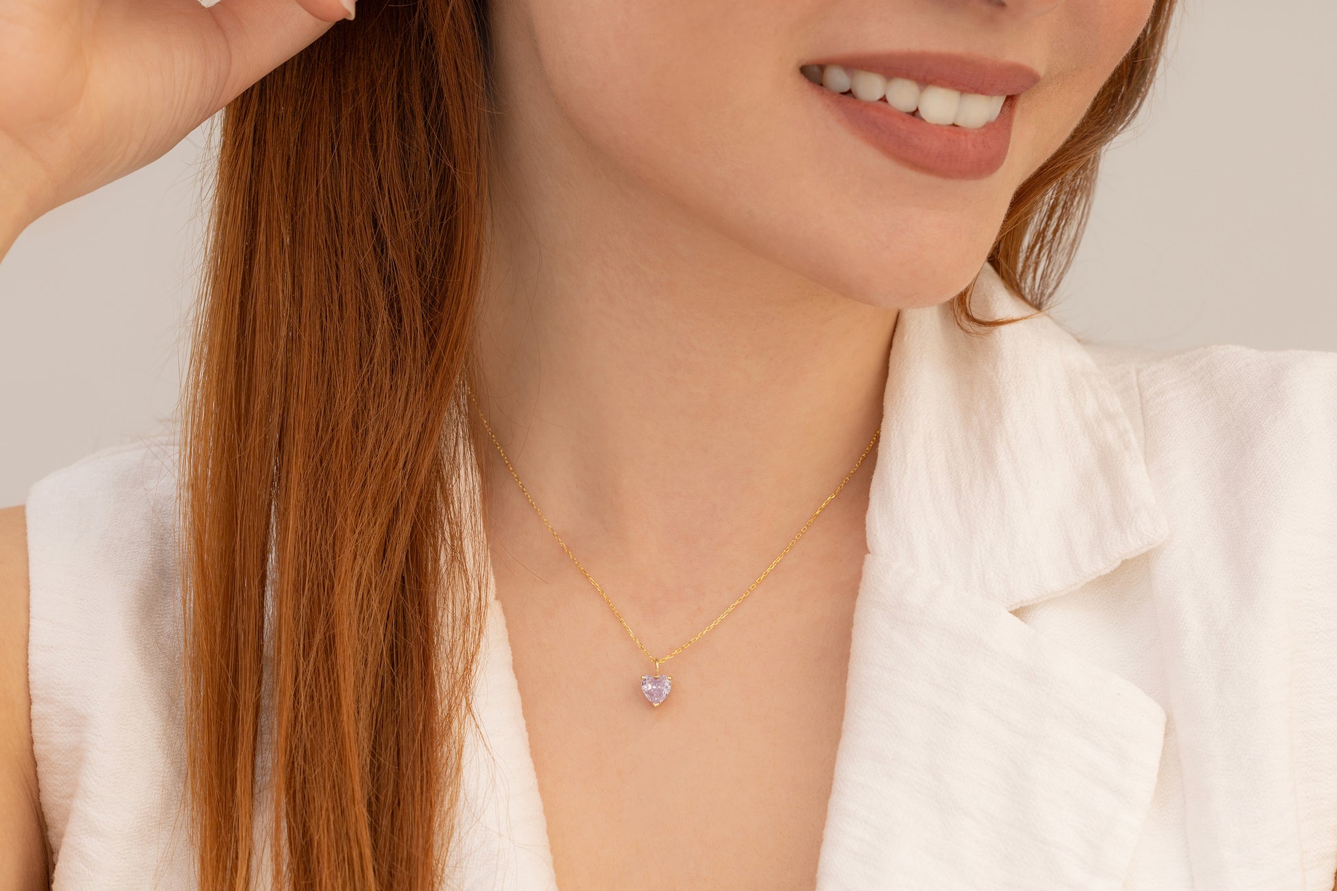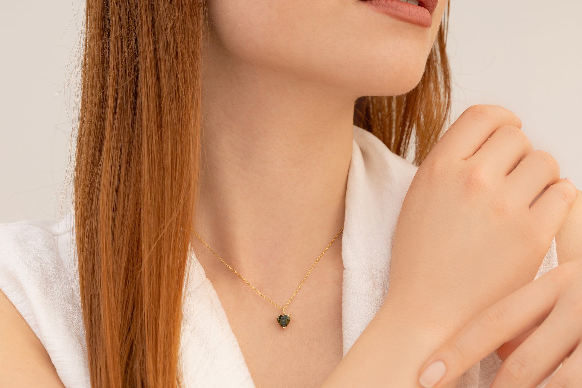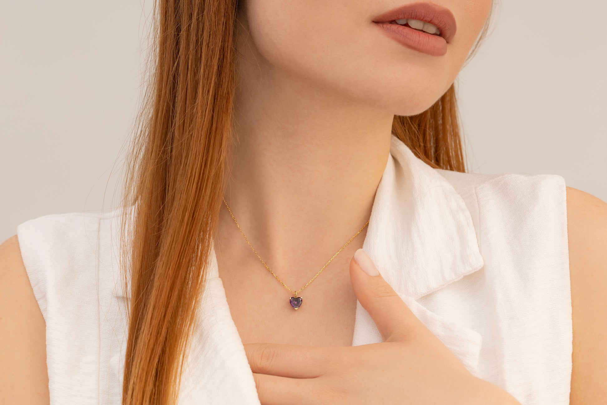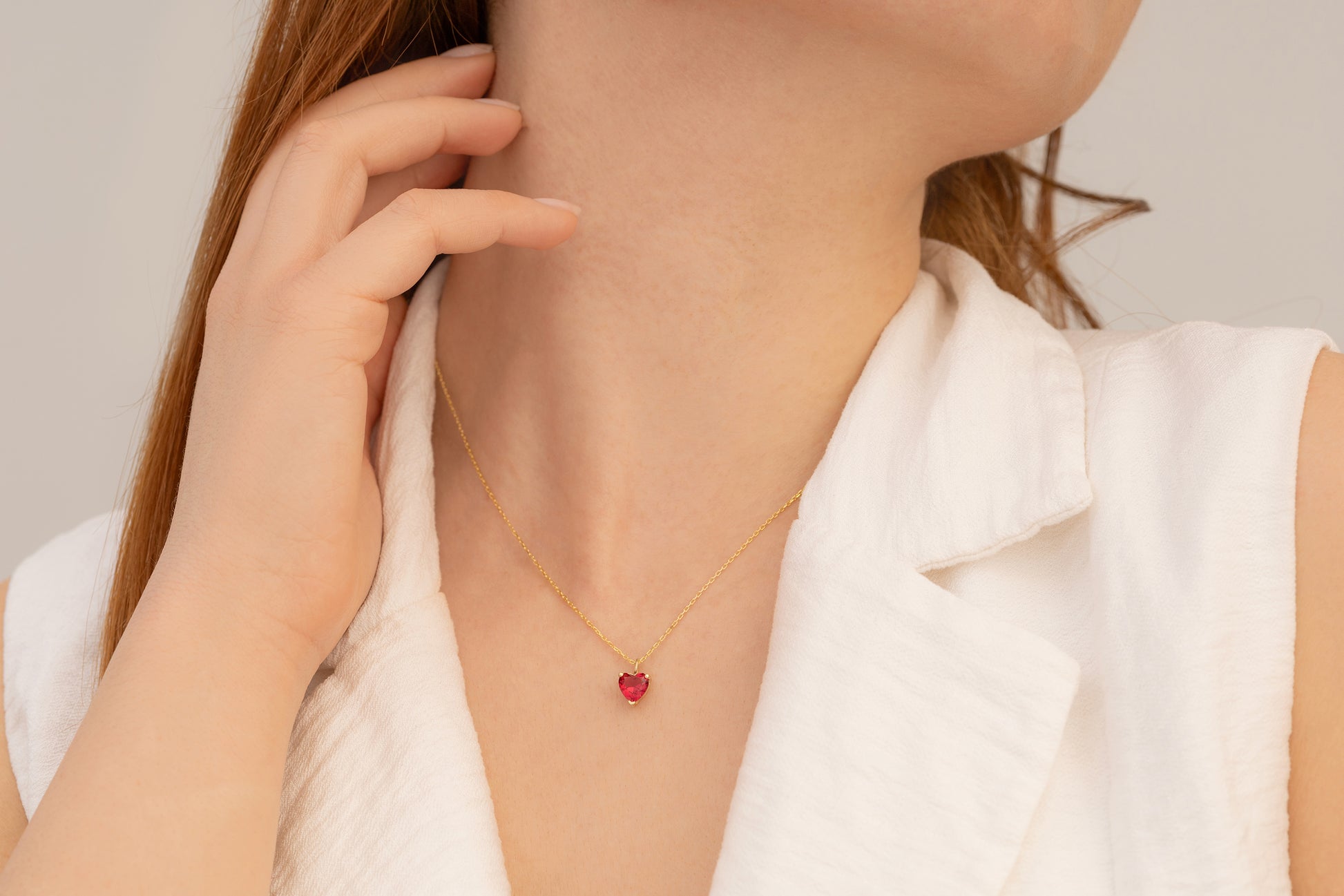 Doğum Taşlı Renkli Kalp Taşlı Kolye | 14 Ayar Altın