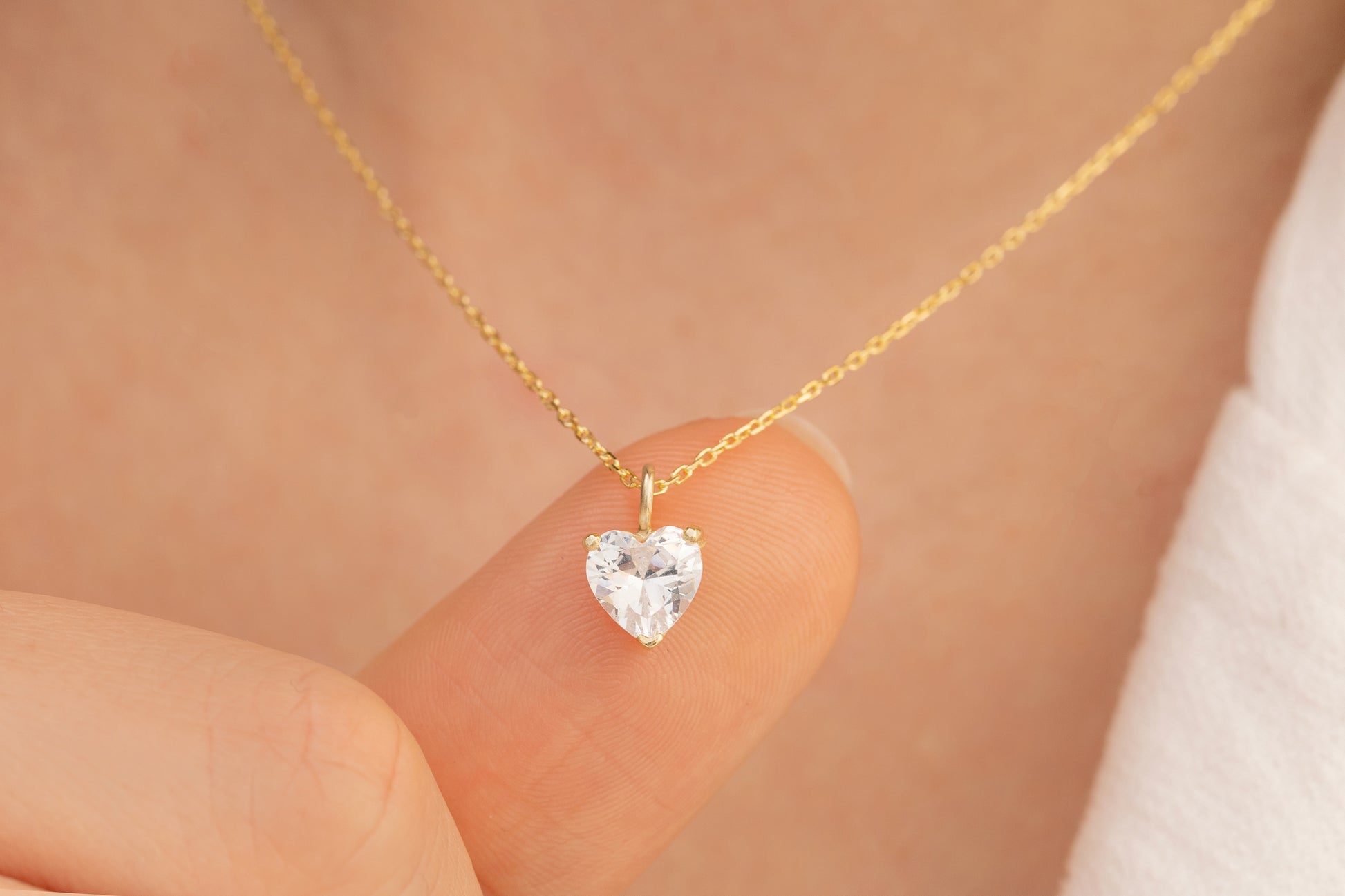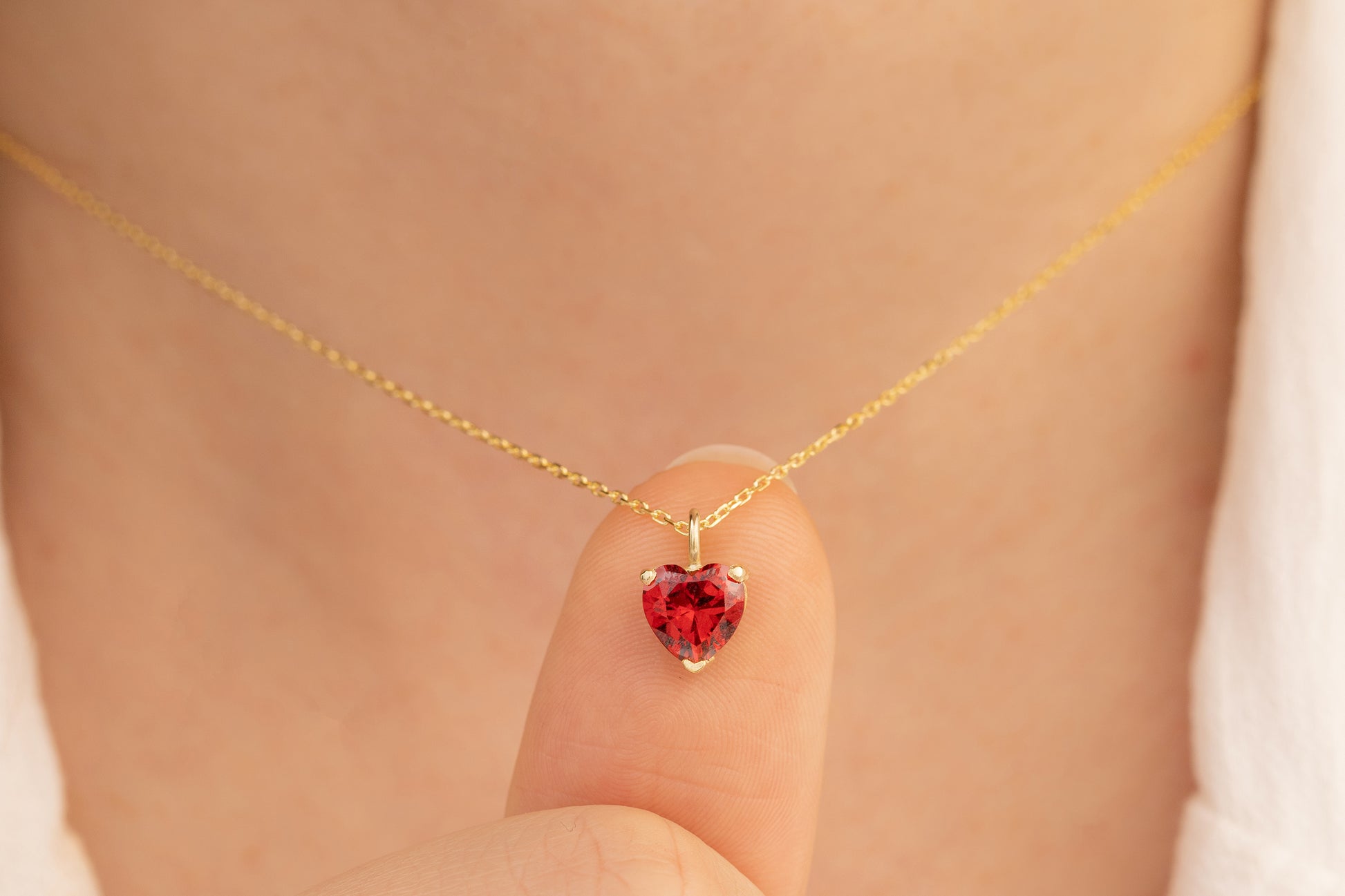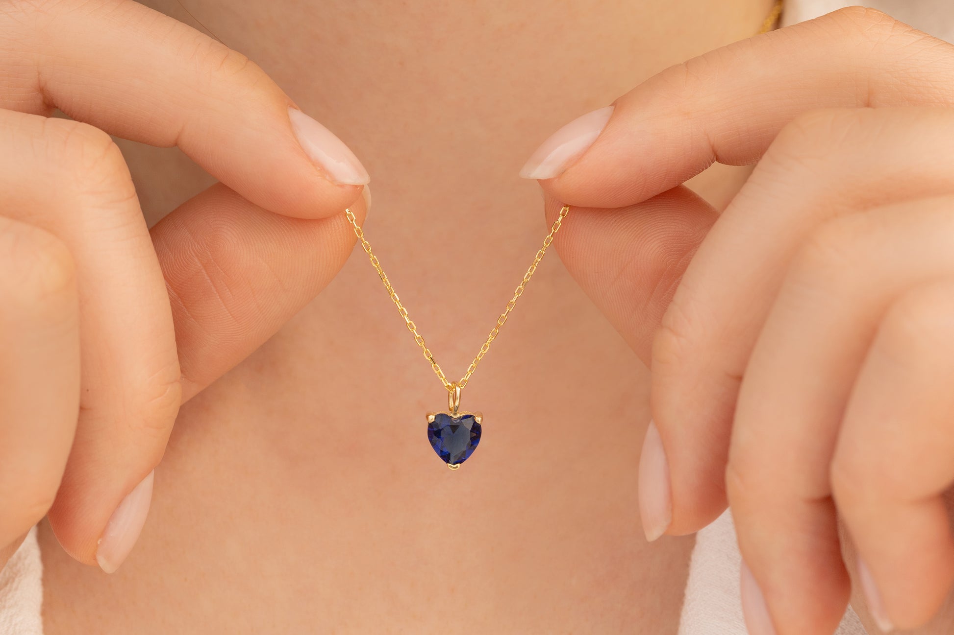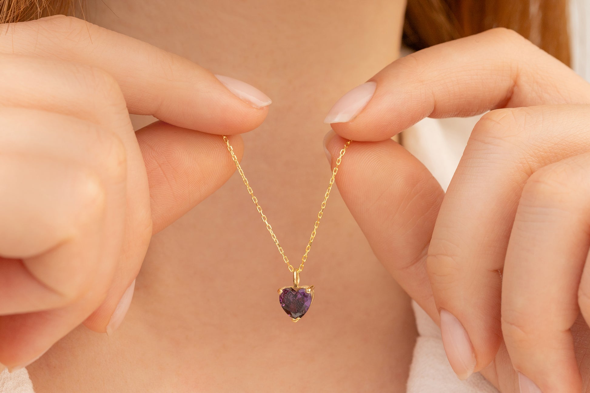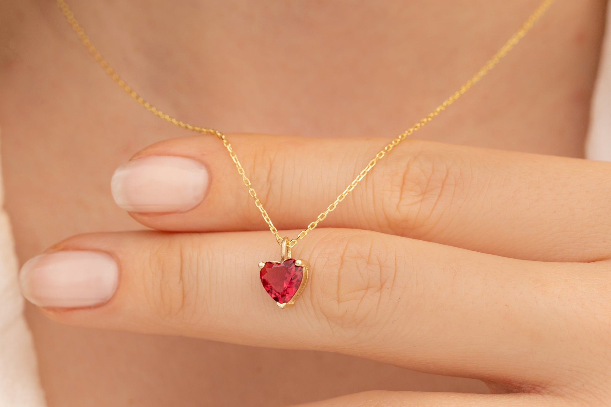 Doğum Taşlı Renkli Kalp Taşlı Kolye | 14 Ayar Altın