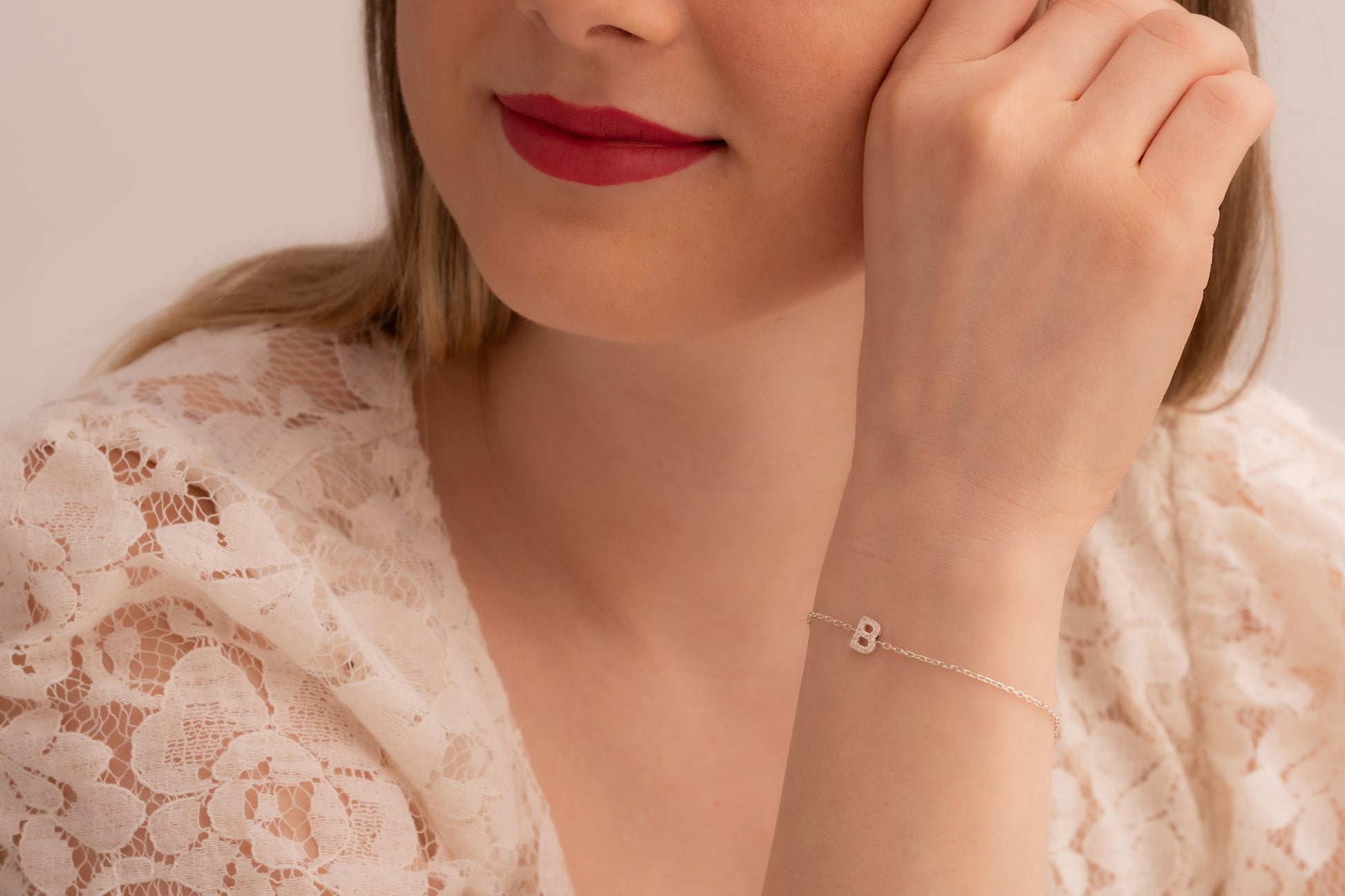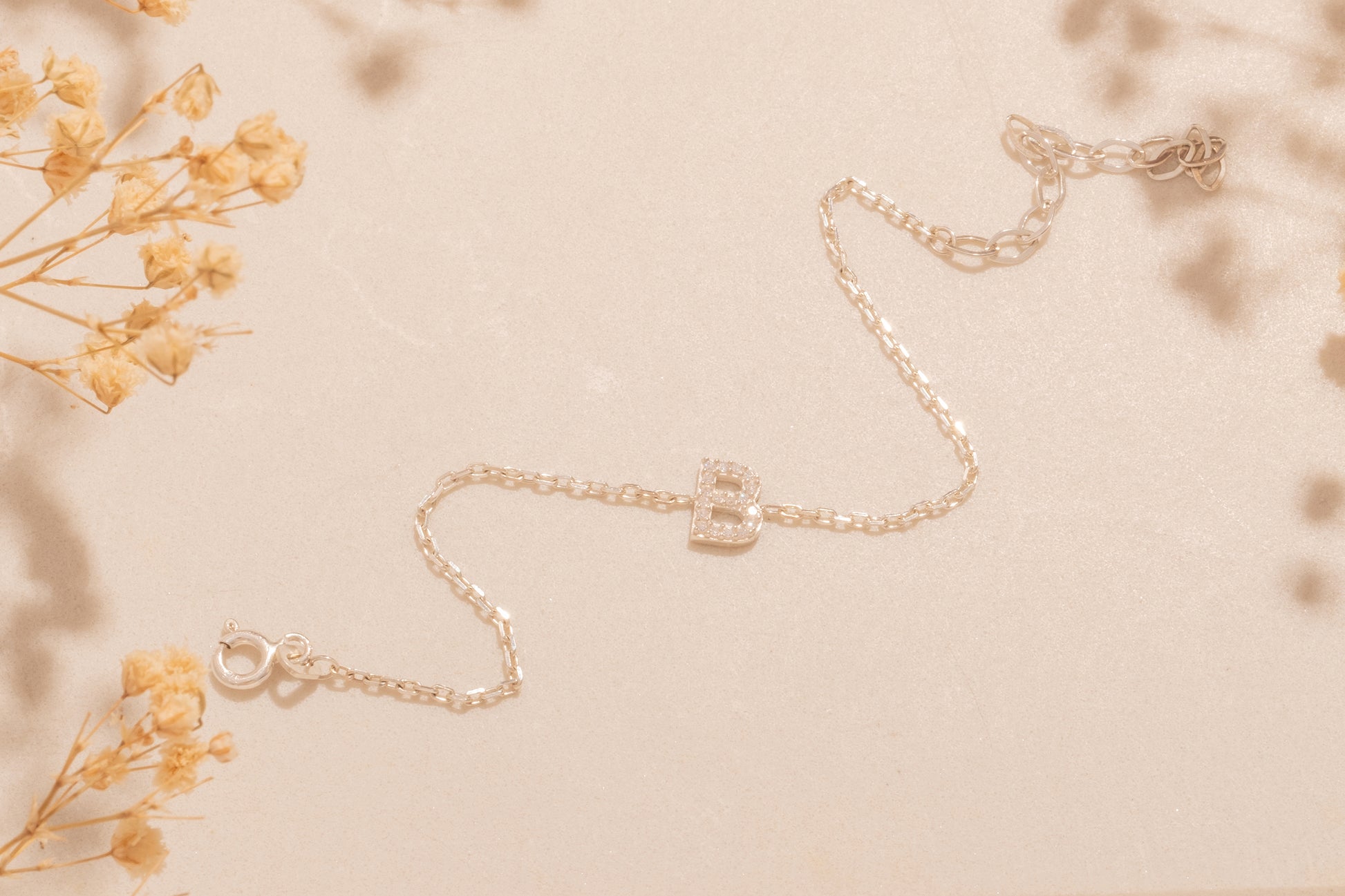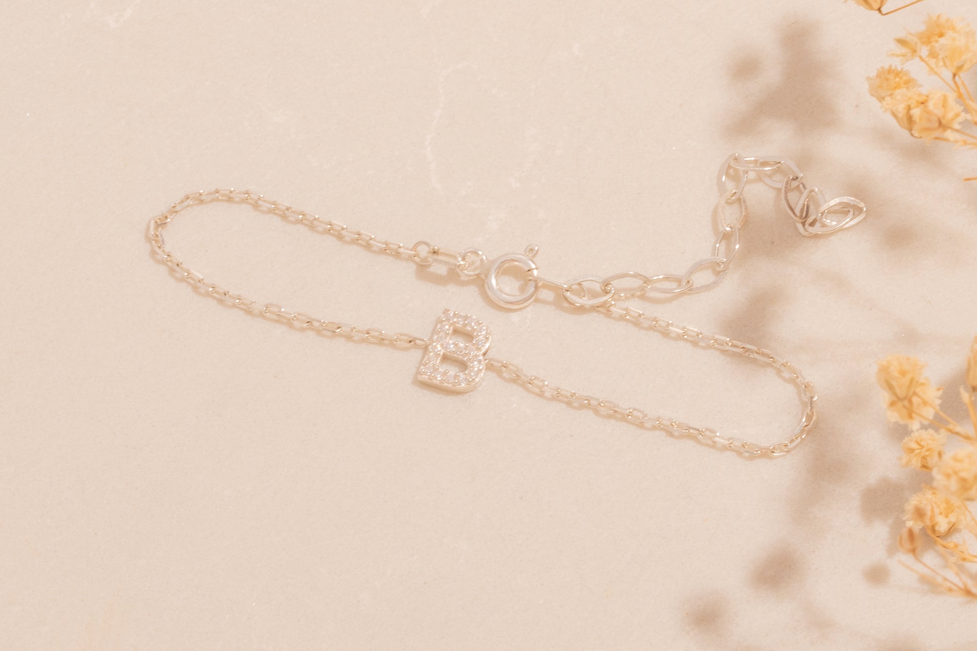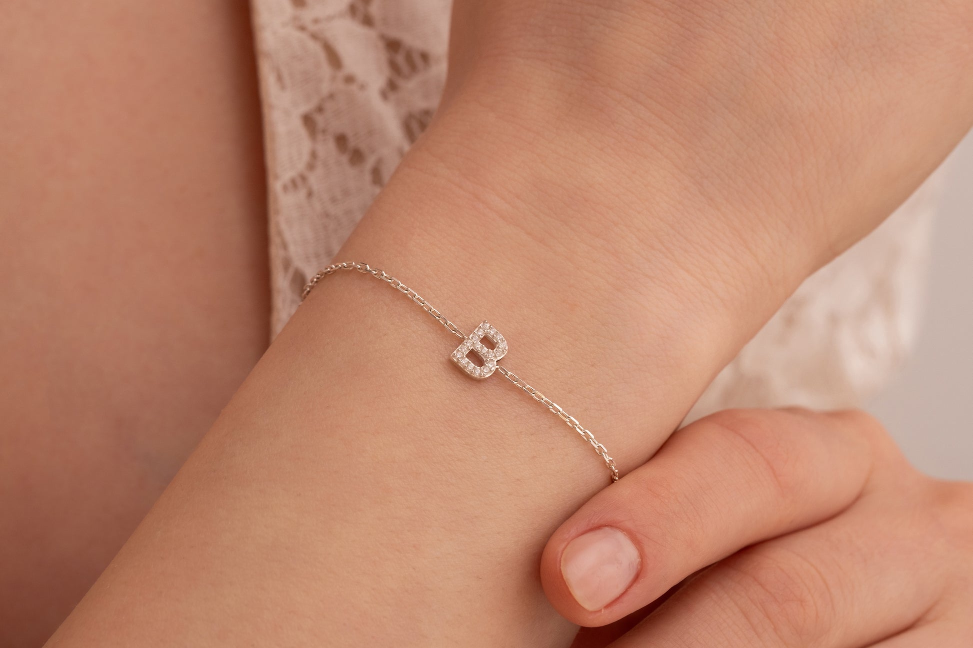 Taşlı Harf Bileklik | 14 Ayar Altın