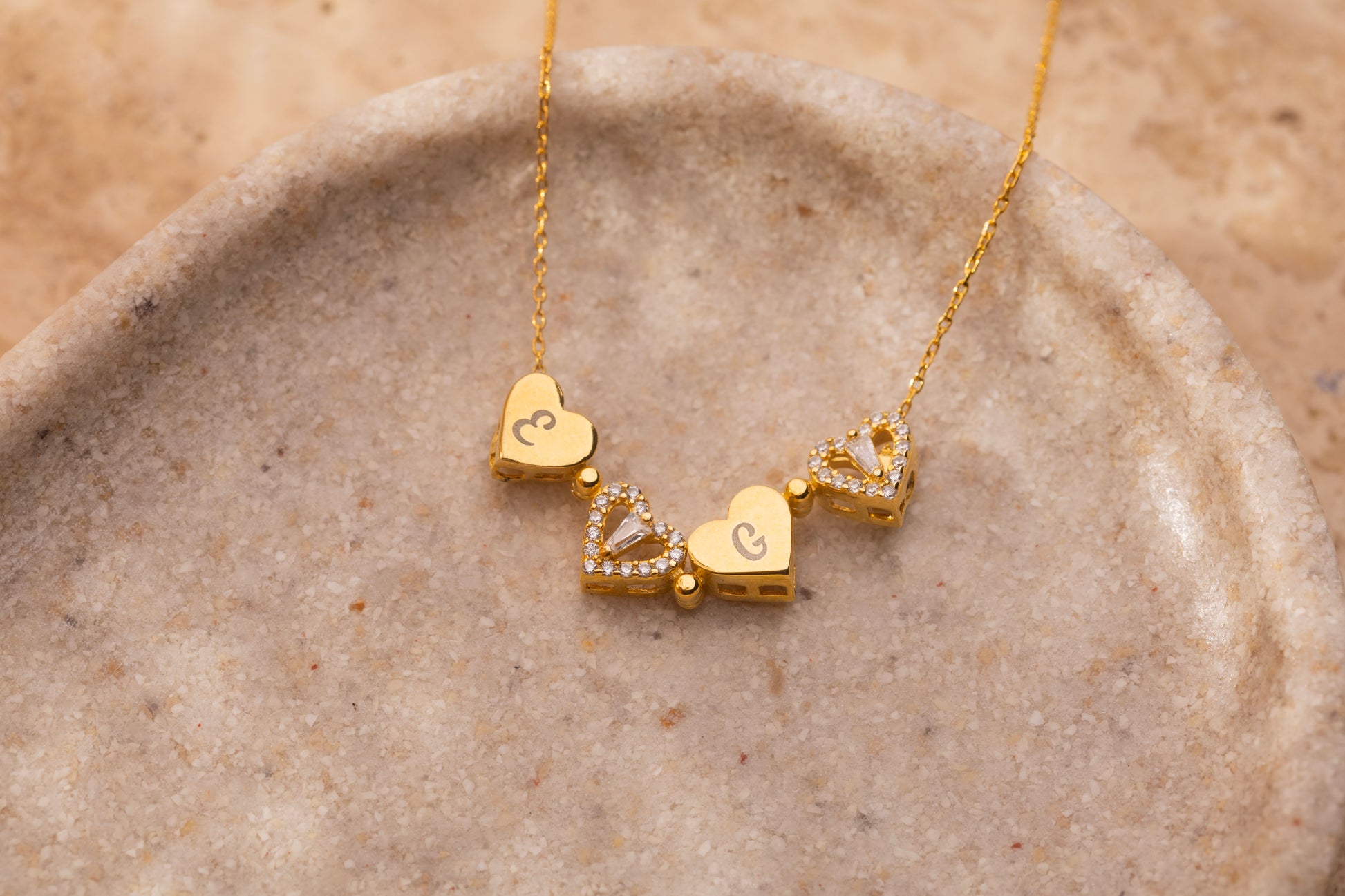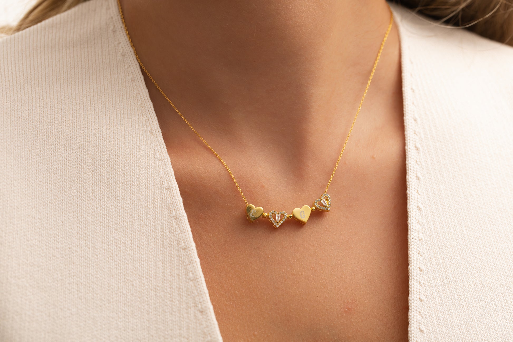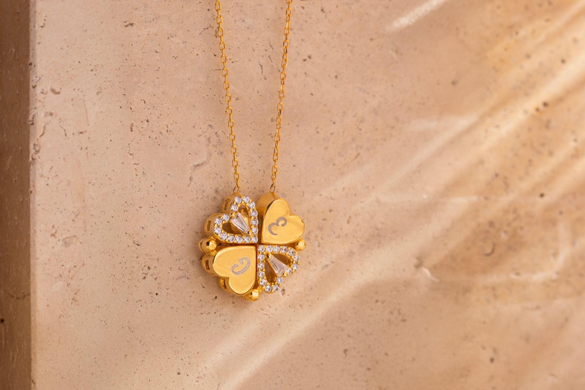 Taşlı Mıknatıslı Harfli Kalp Yonca Kolye | 925 Gümüş