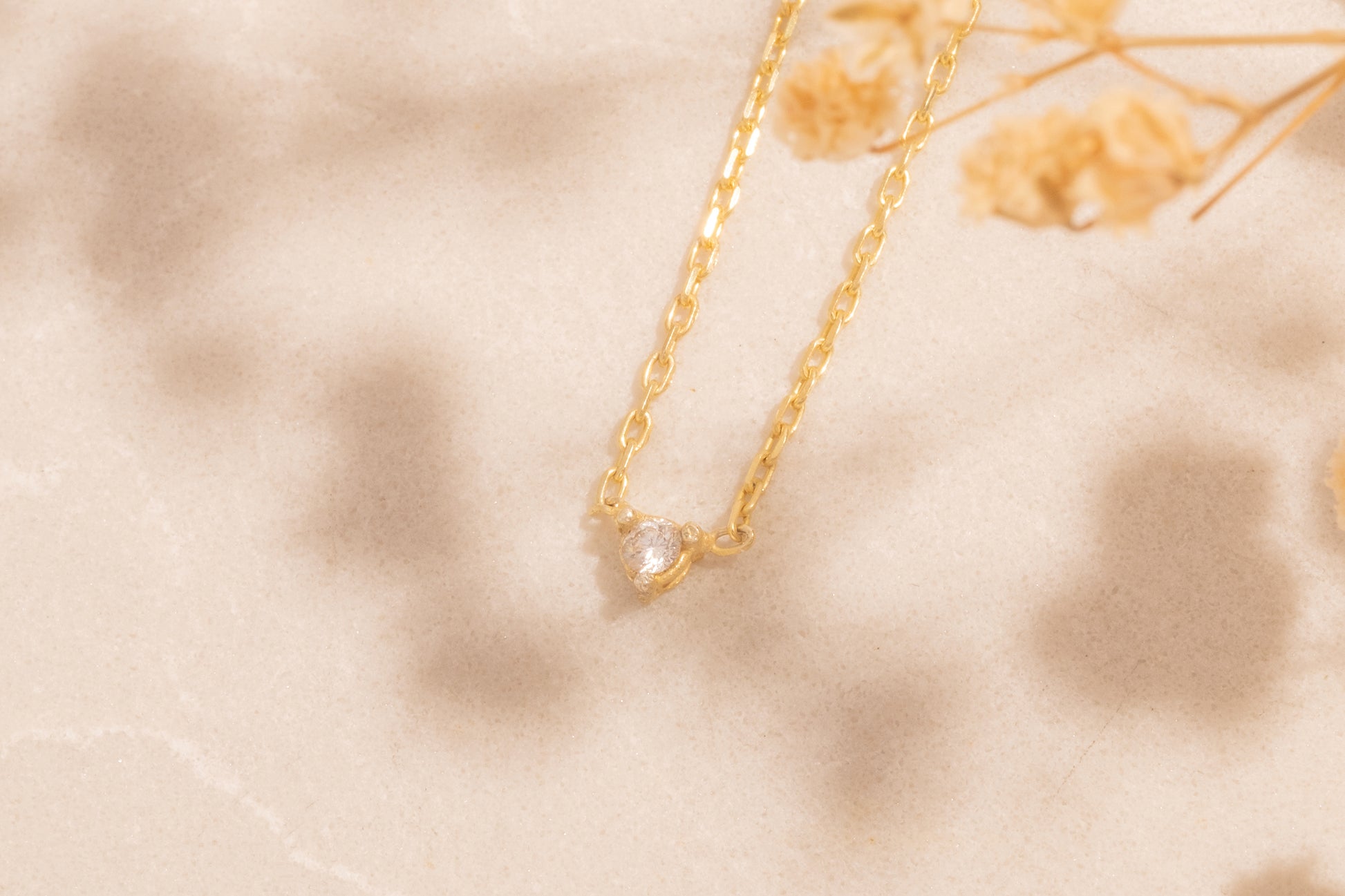 Üç Tırnaklı Tek Taş Kolye | 14 Ayar Altın