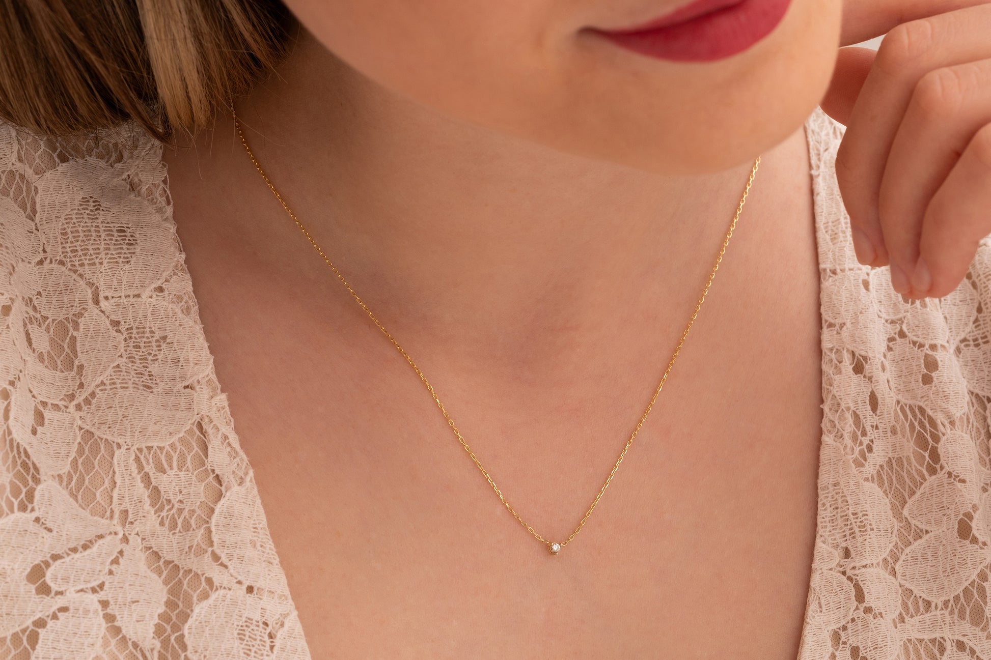 Asimetrik Mekik Doğum Taşlı Kolye | 14 Ayar Kolye