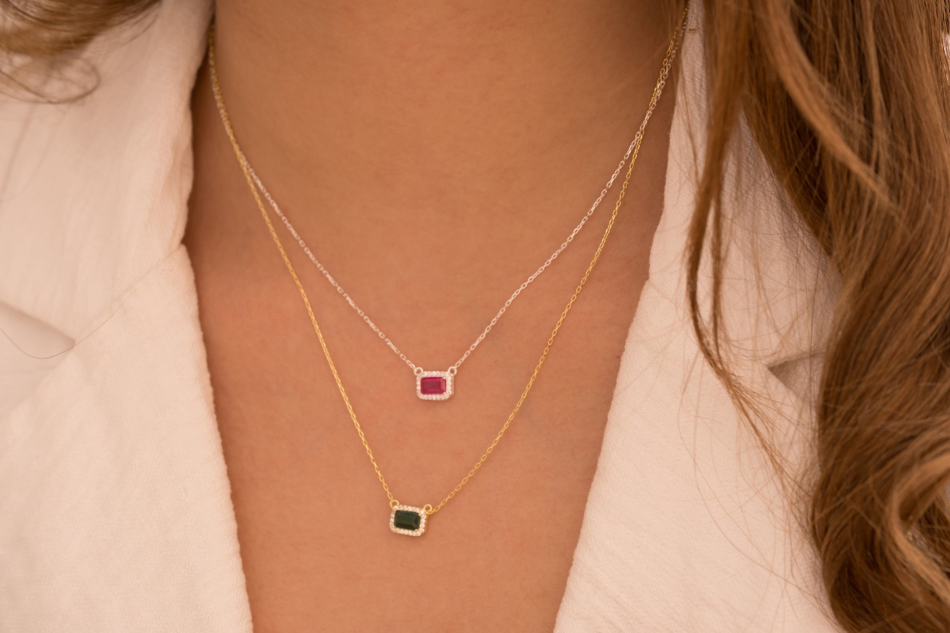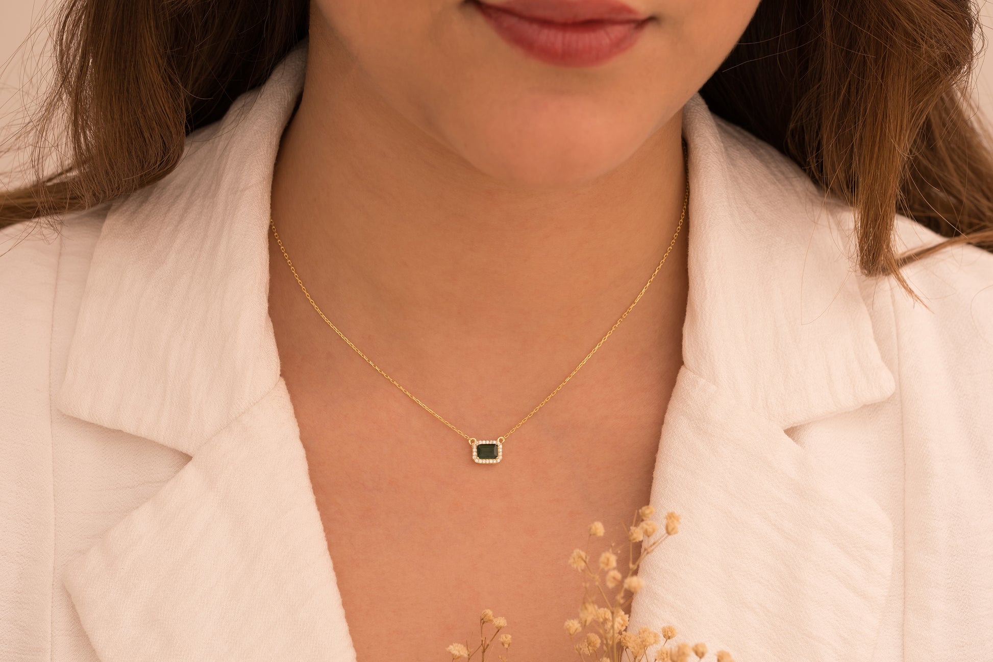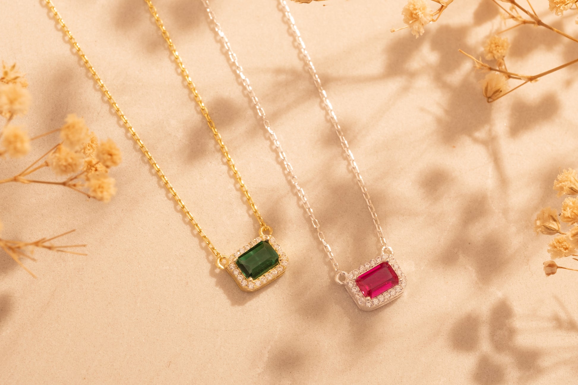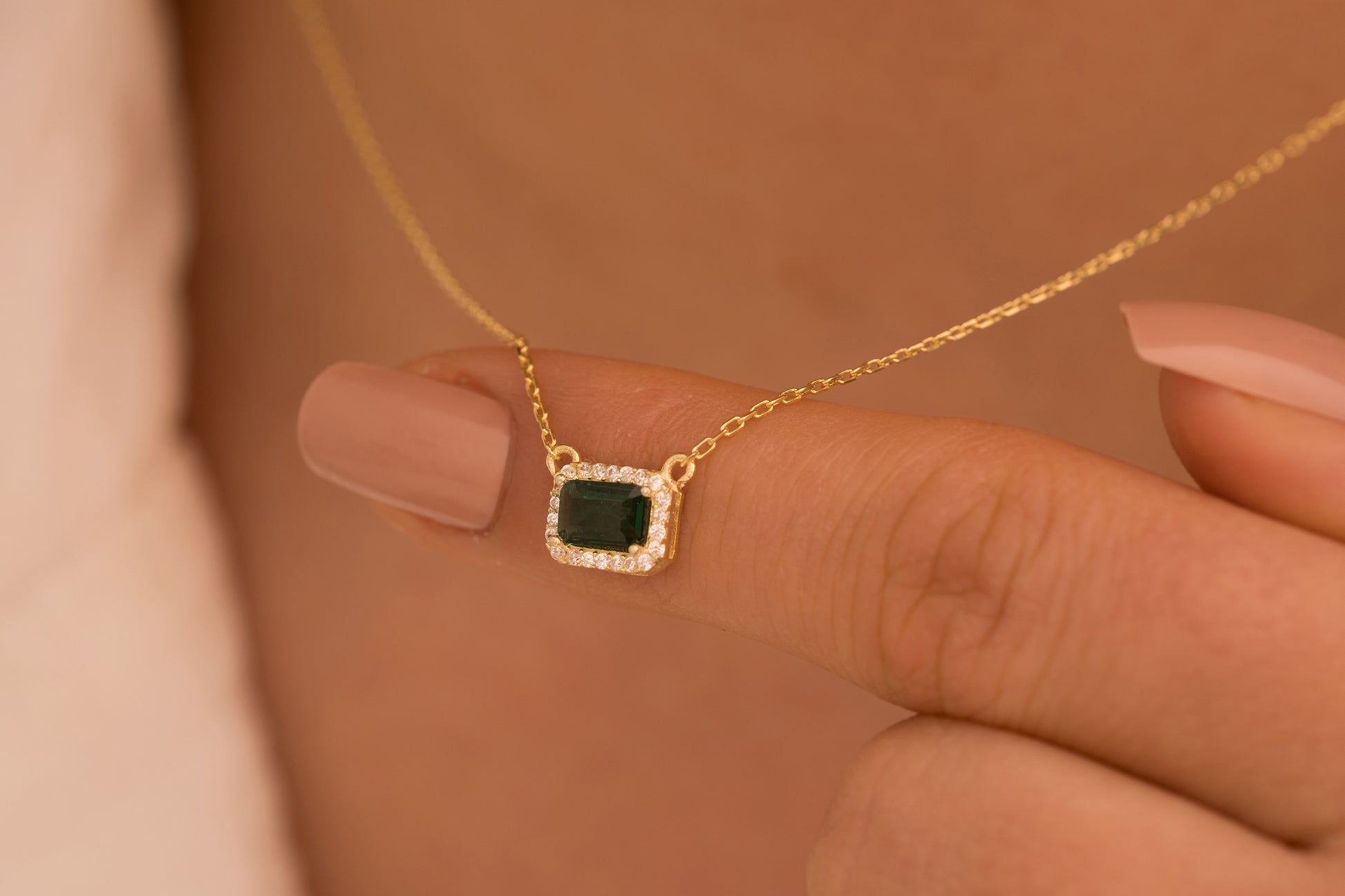 Satın Alınan Ürün: Zümrüt Taşlı Baget Kolye | 925 Gümüş