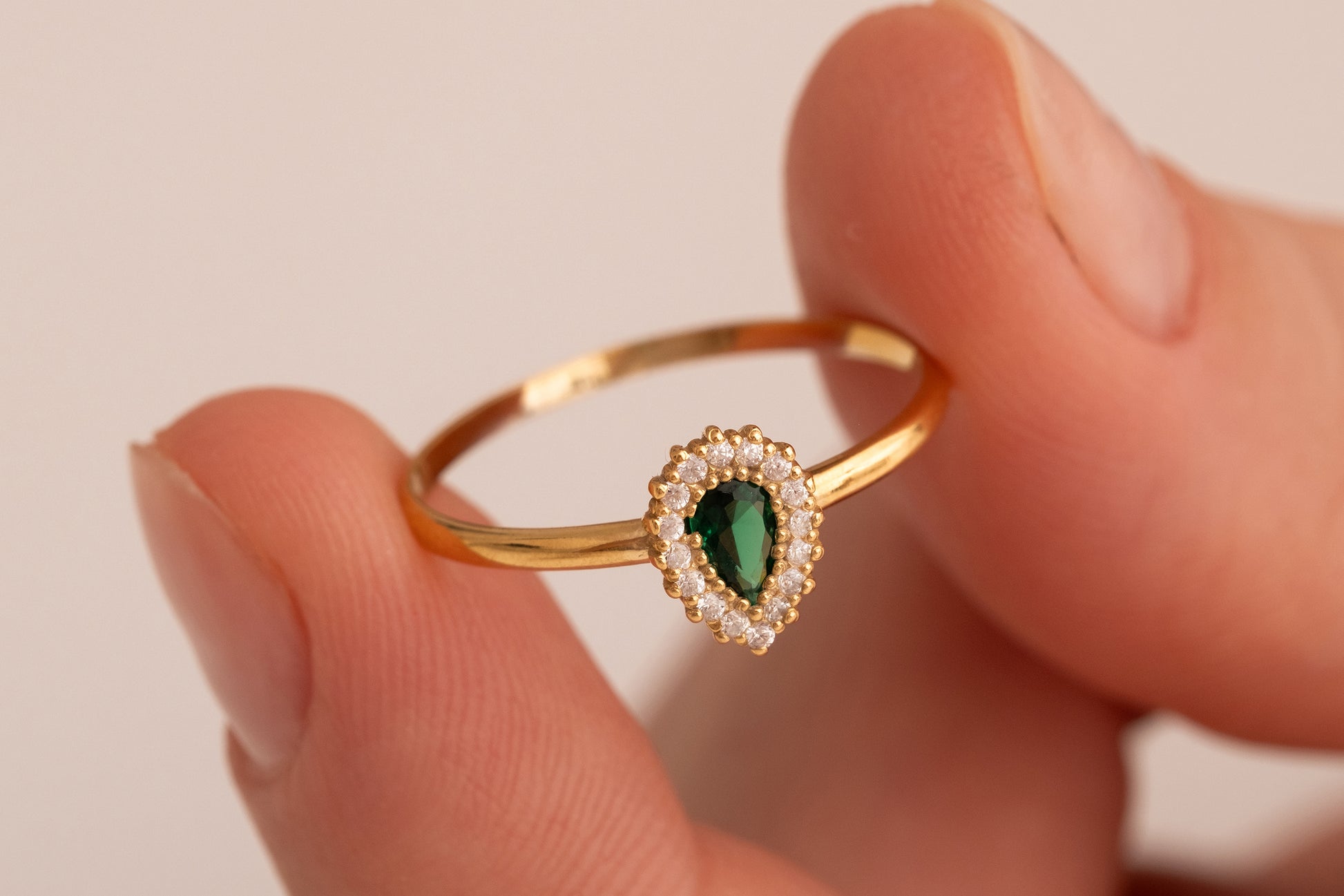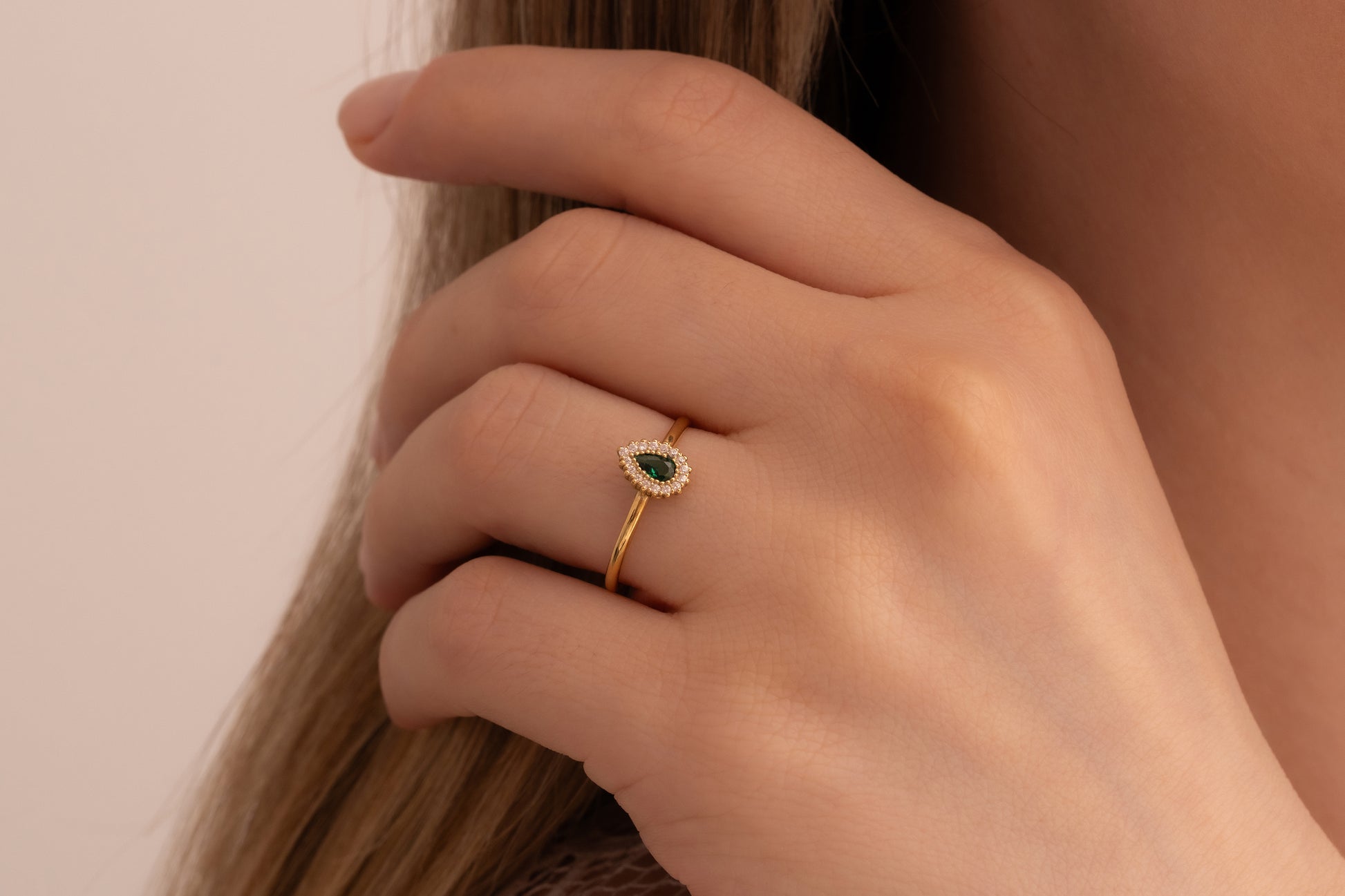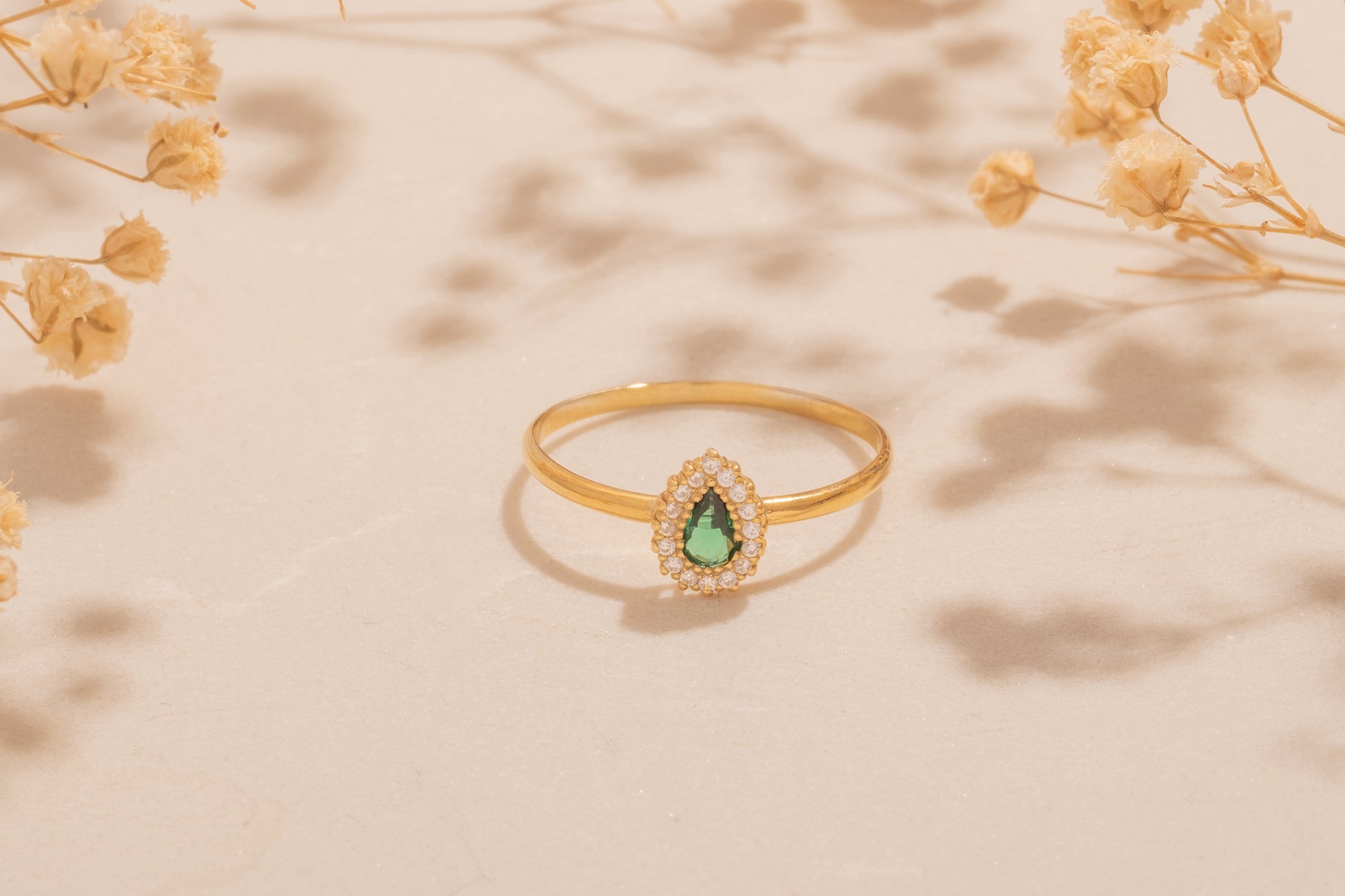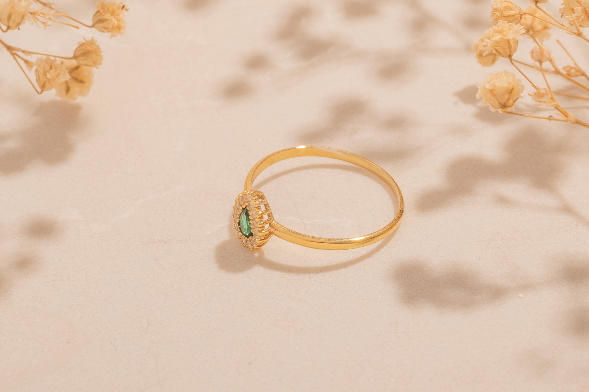 Zirkon Taşlı Damla Yüzük | 14 Ayar Altın