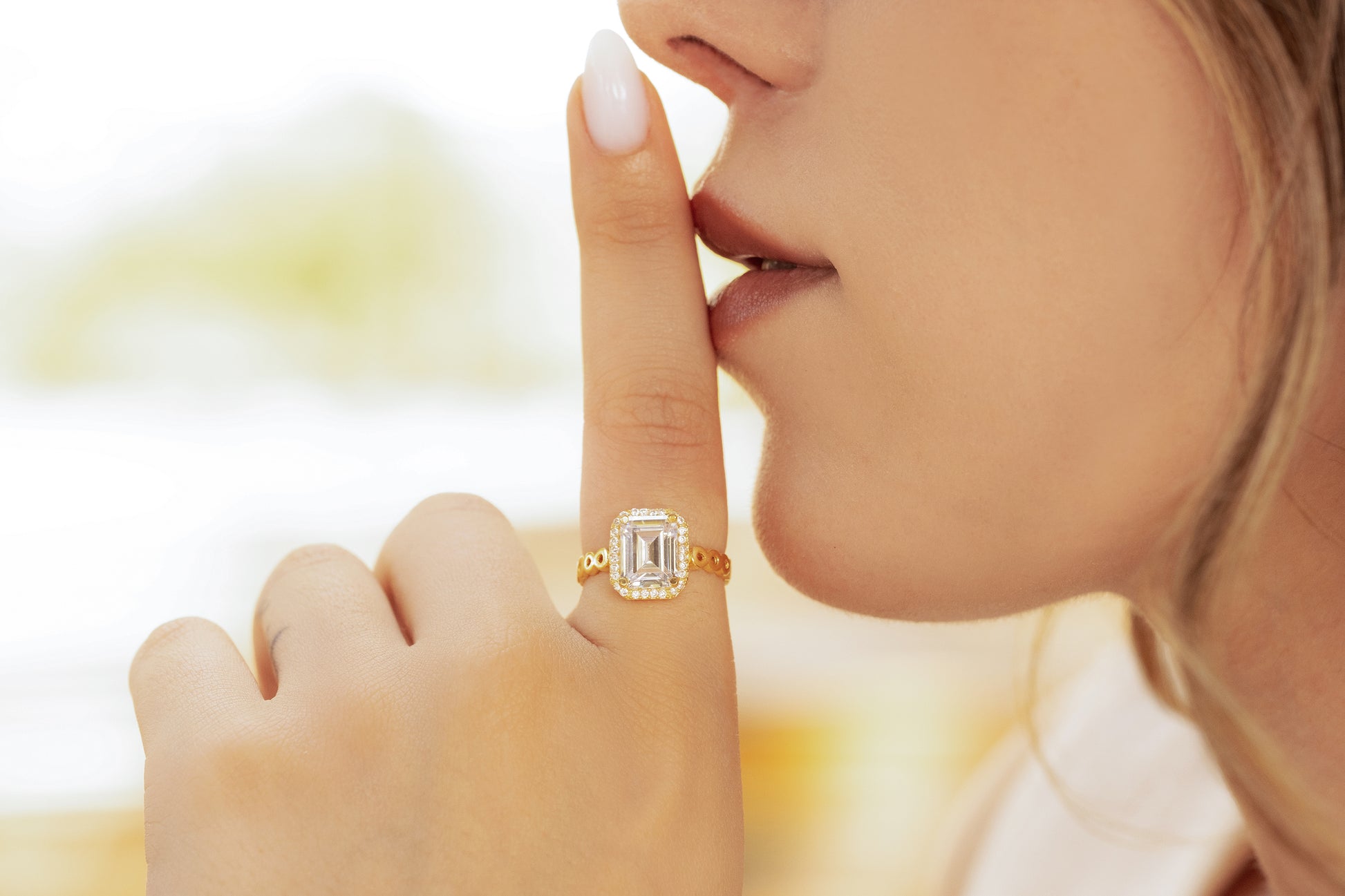 Zirkon Taşlı Kare Baget Yüzük | 925 Gümüş