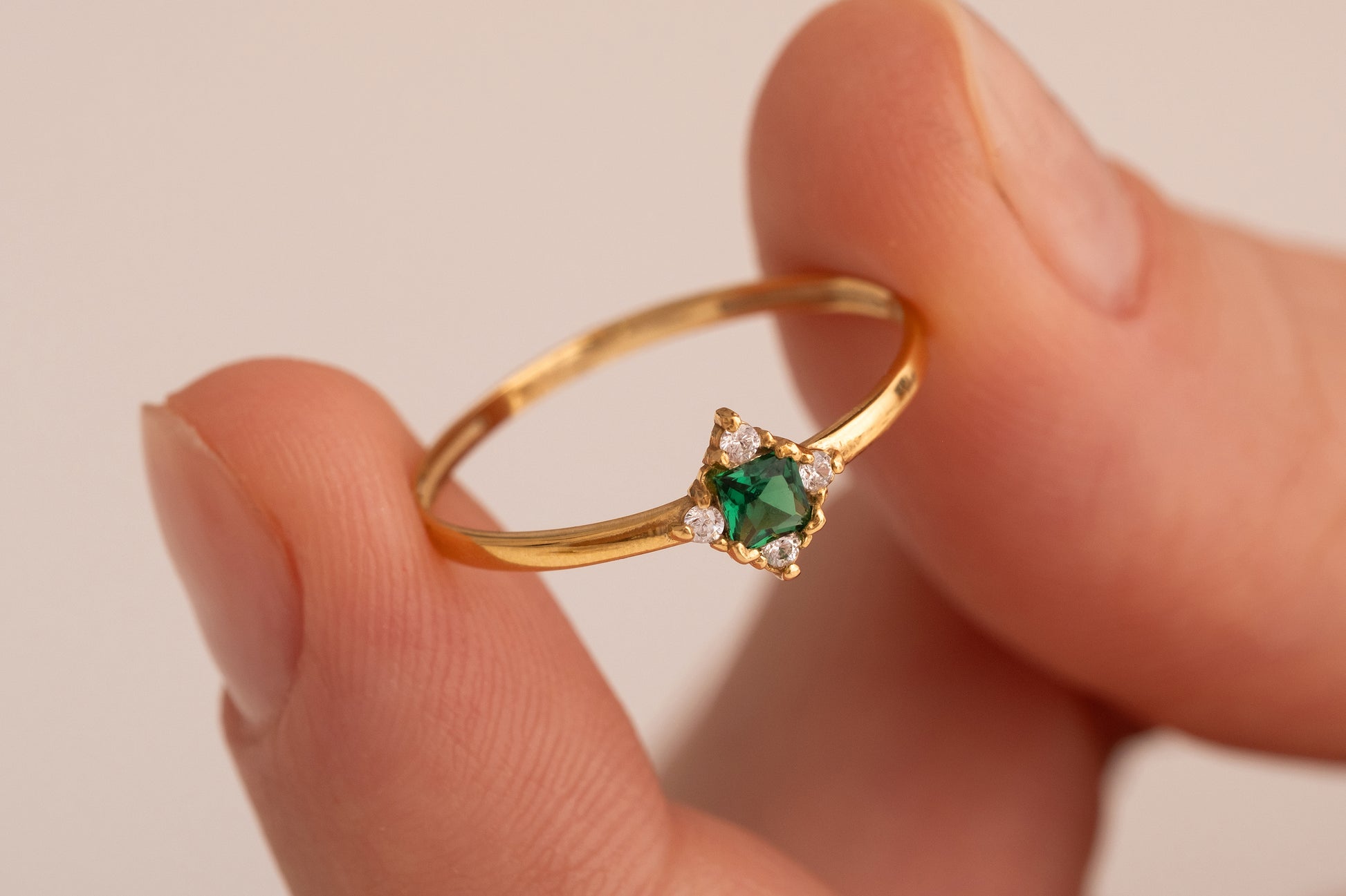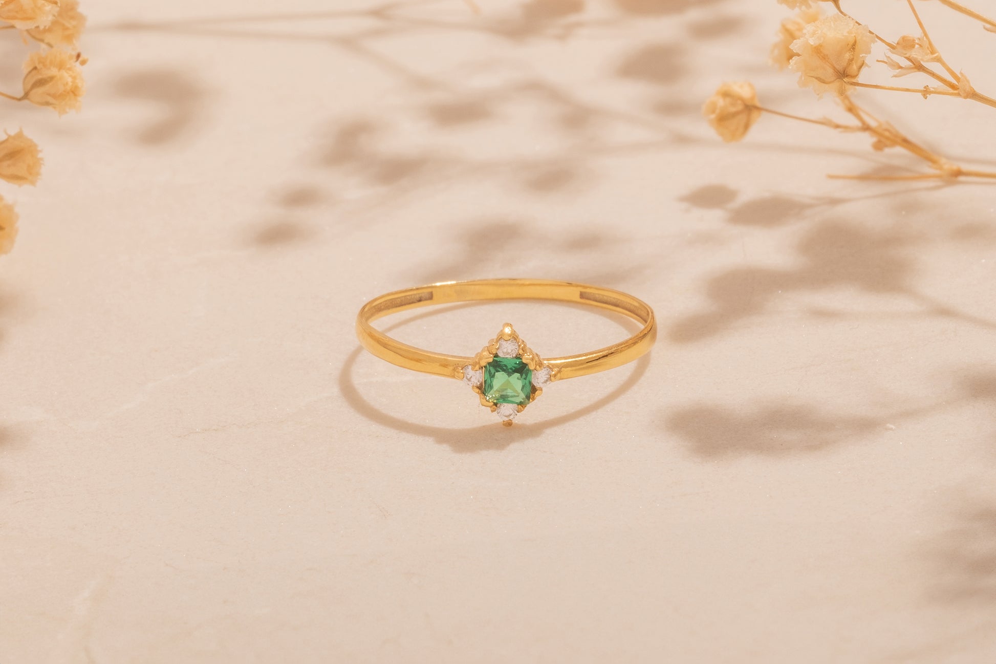 Zirkon Taşlı Kare Yüzük | 14 Ayar Altın