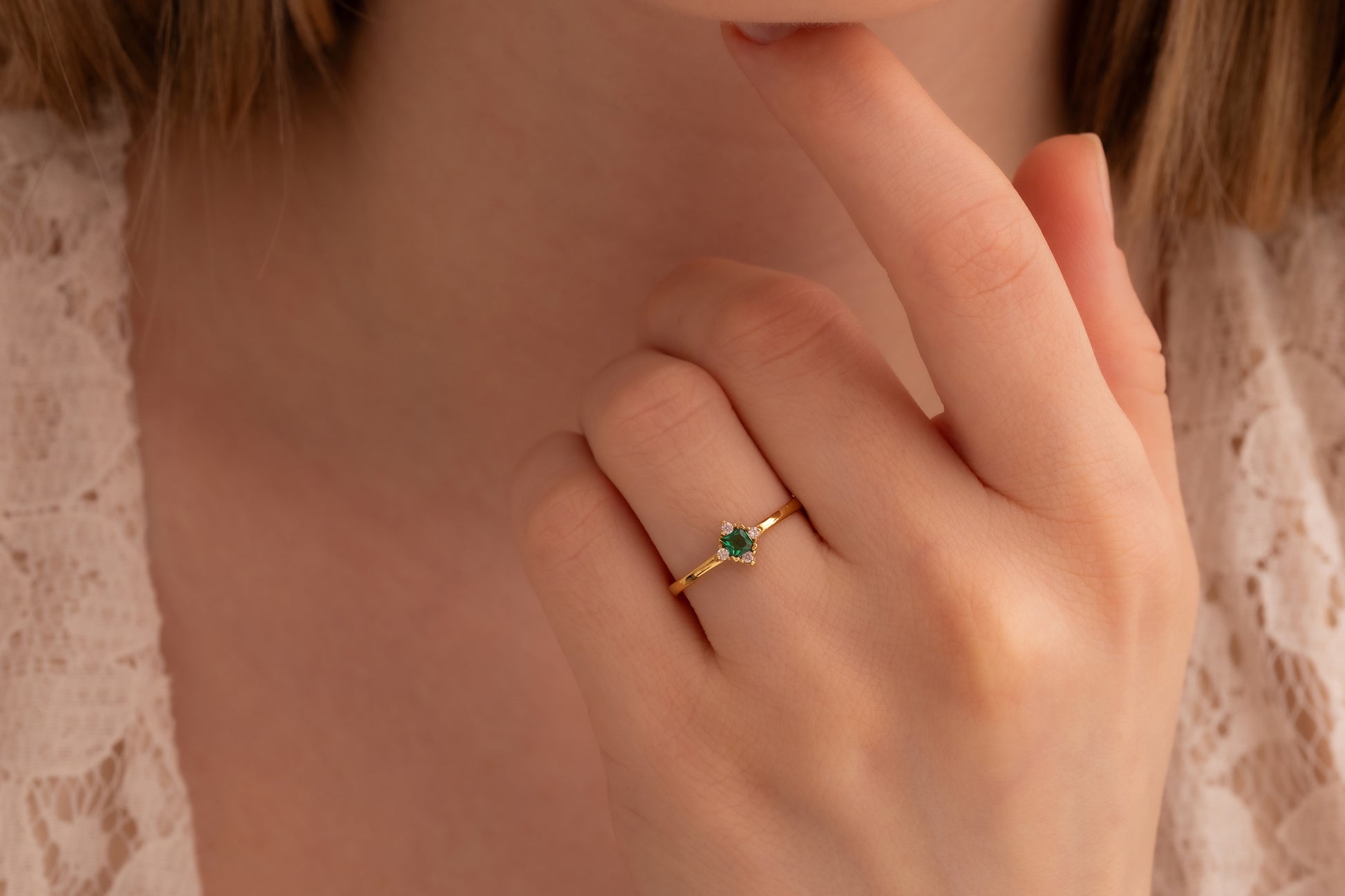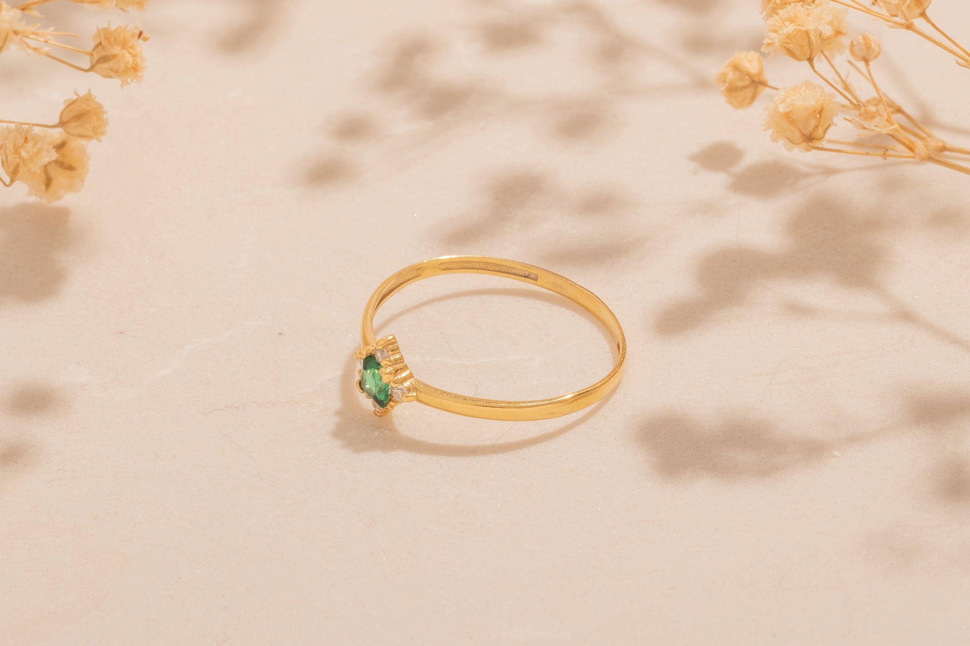 Baget Taşlı Minimal Yüzük | 14 Ayar Altın