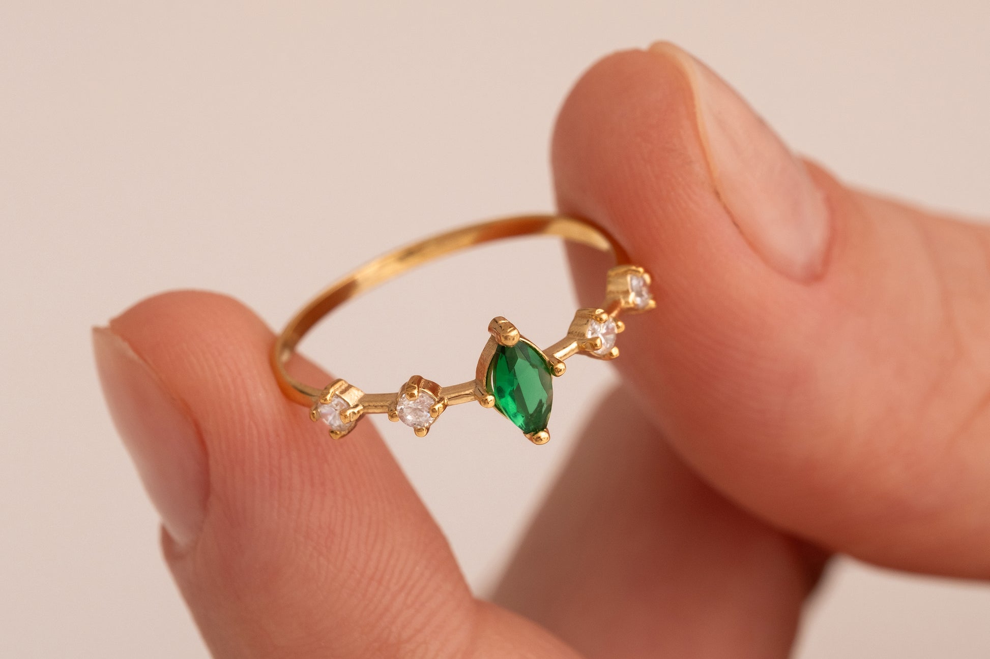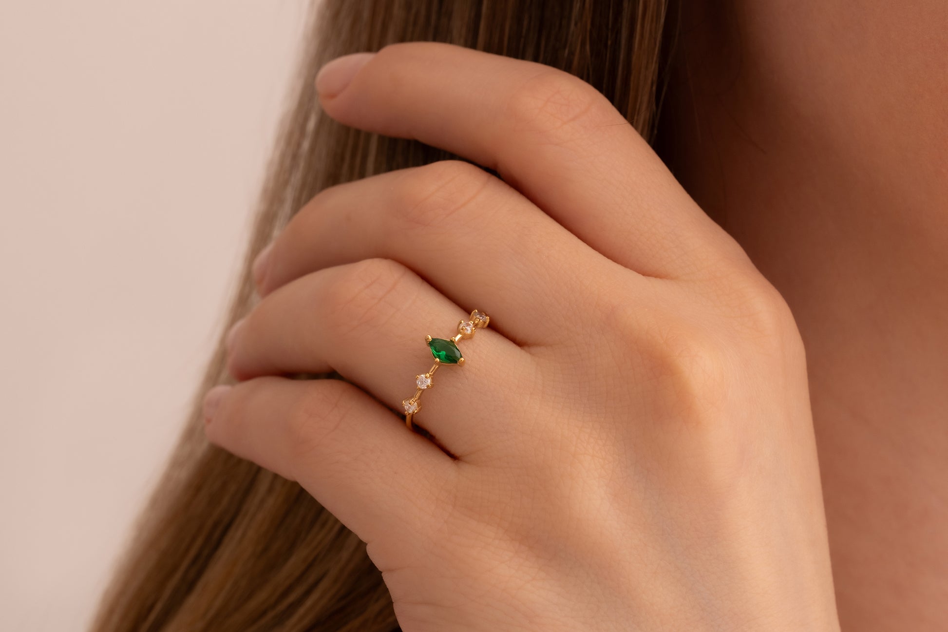 Baget Taşlı Minimal Yüzük | 14 Ayar Altın