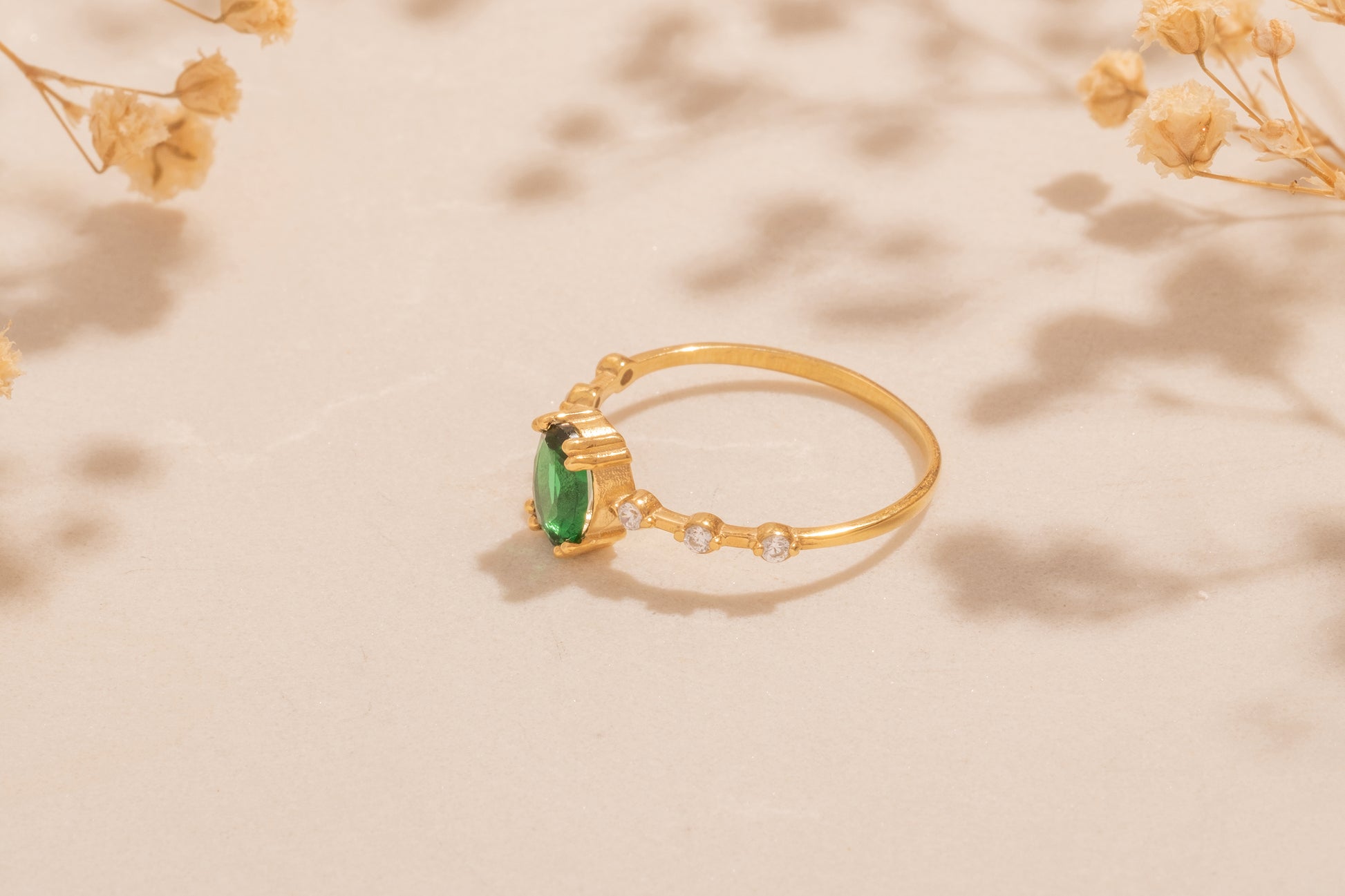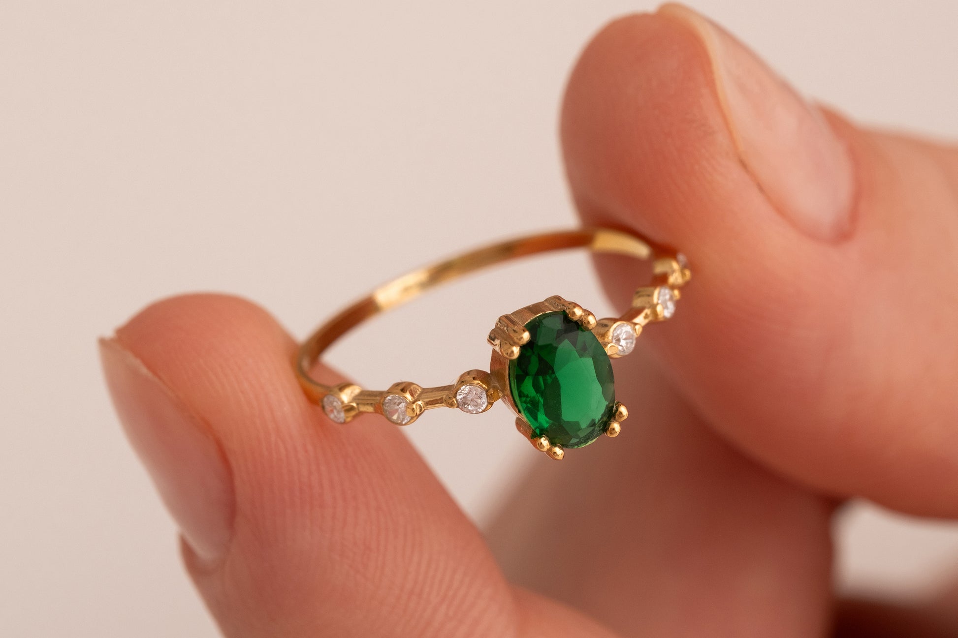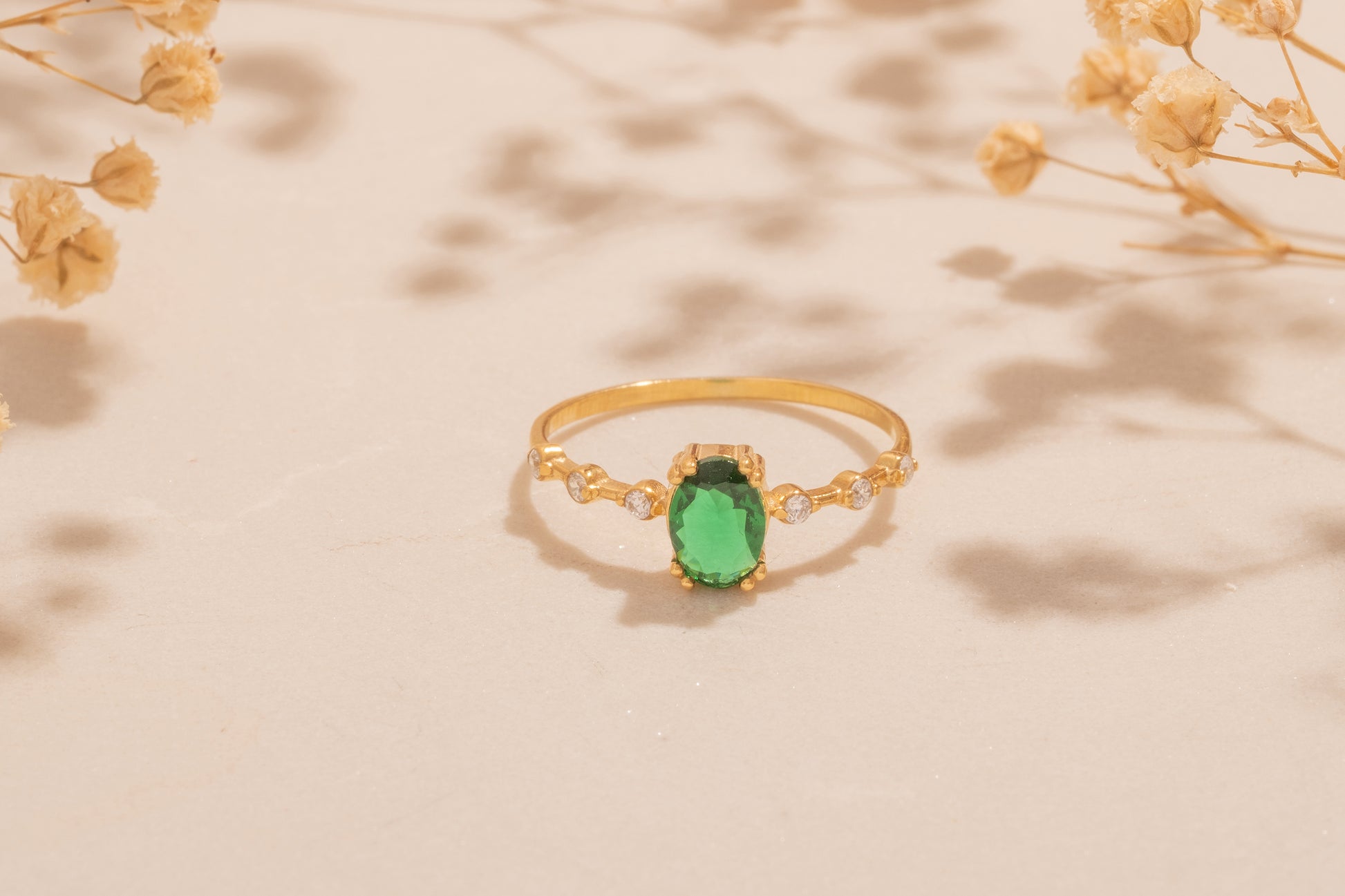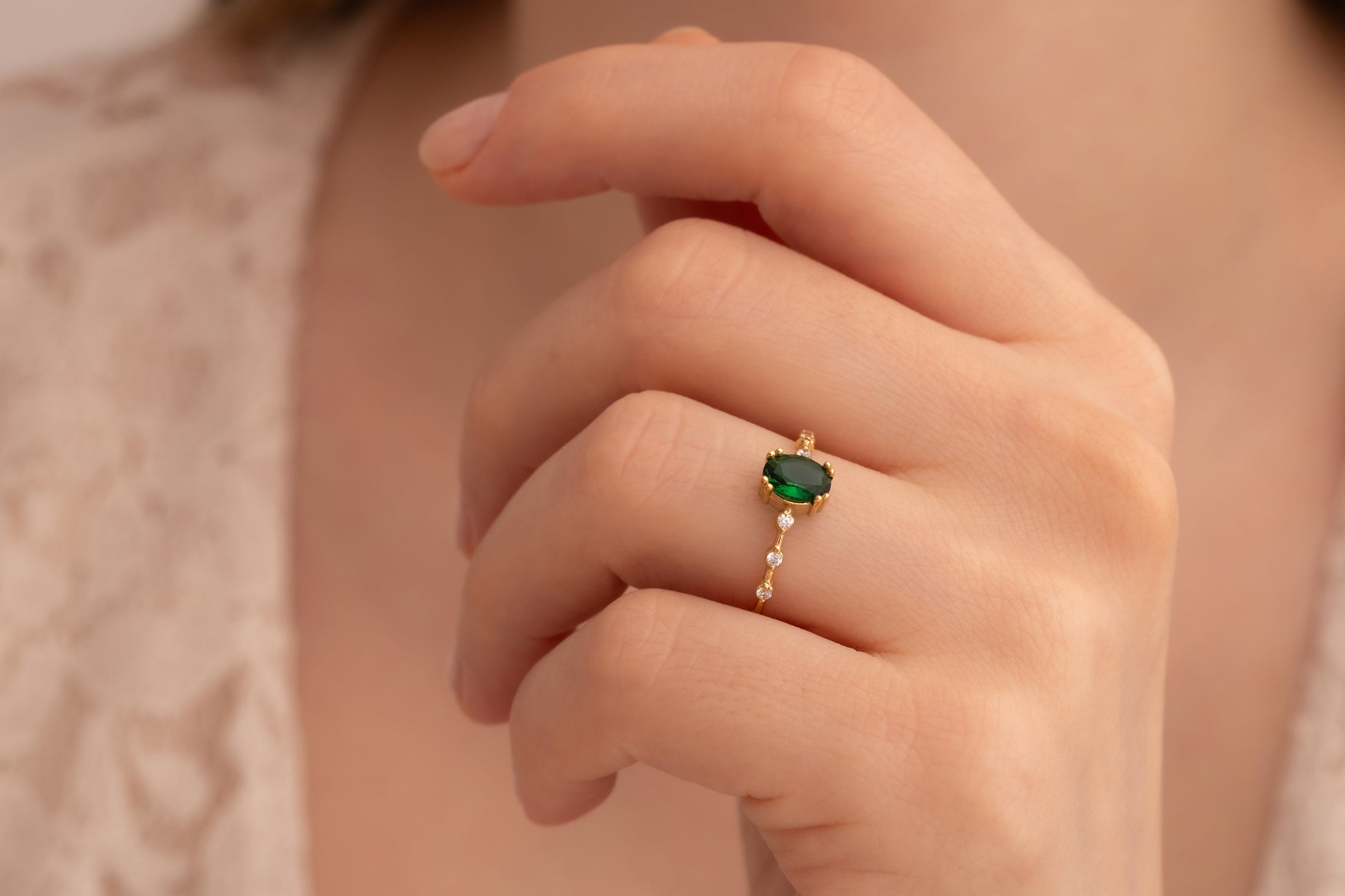 Zirkon Taşlı Oval Yüzük | 14 Ayar Altın