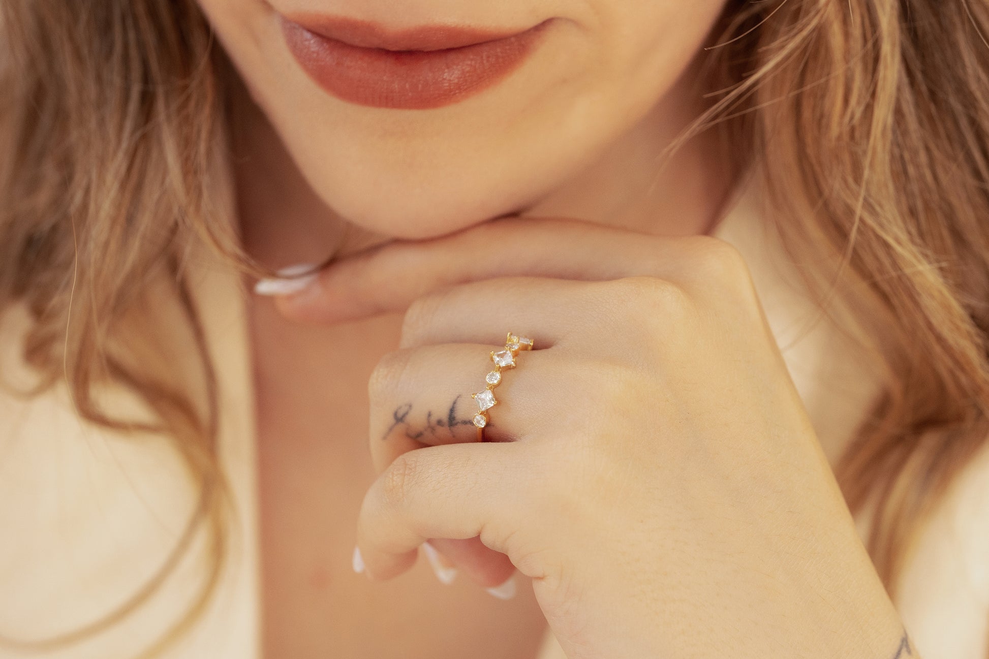 Zirkon Taşlı Tasarım Yüzük | 14 Ayar Altın