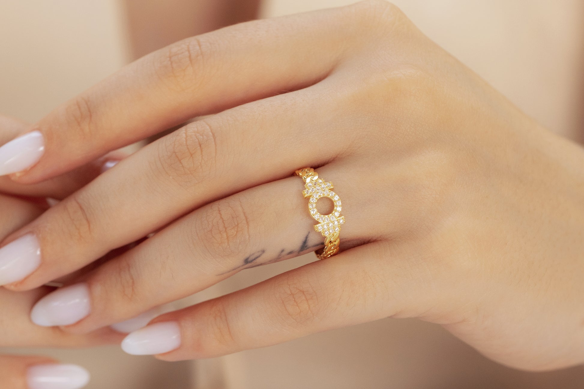 Zirkon Taşlı Zincir Desenli Yüzük | 925 Gümüş