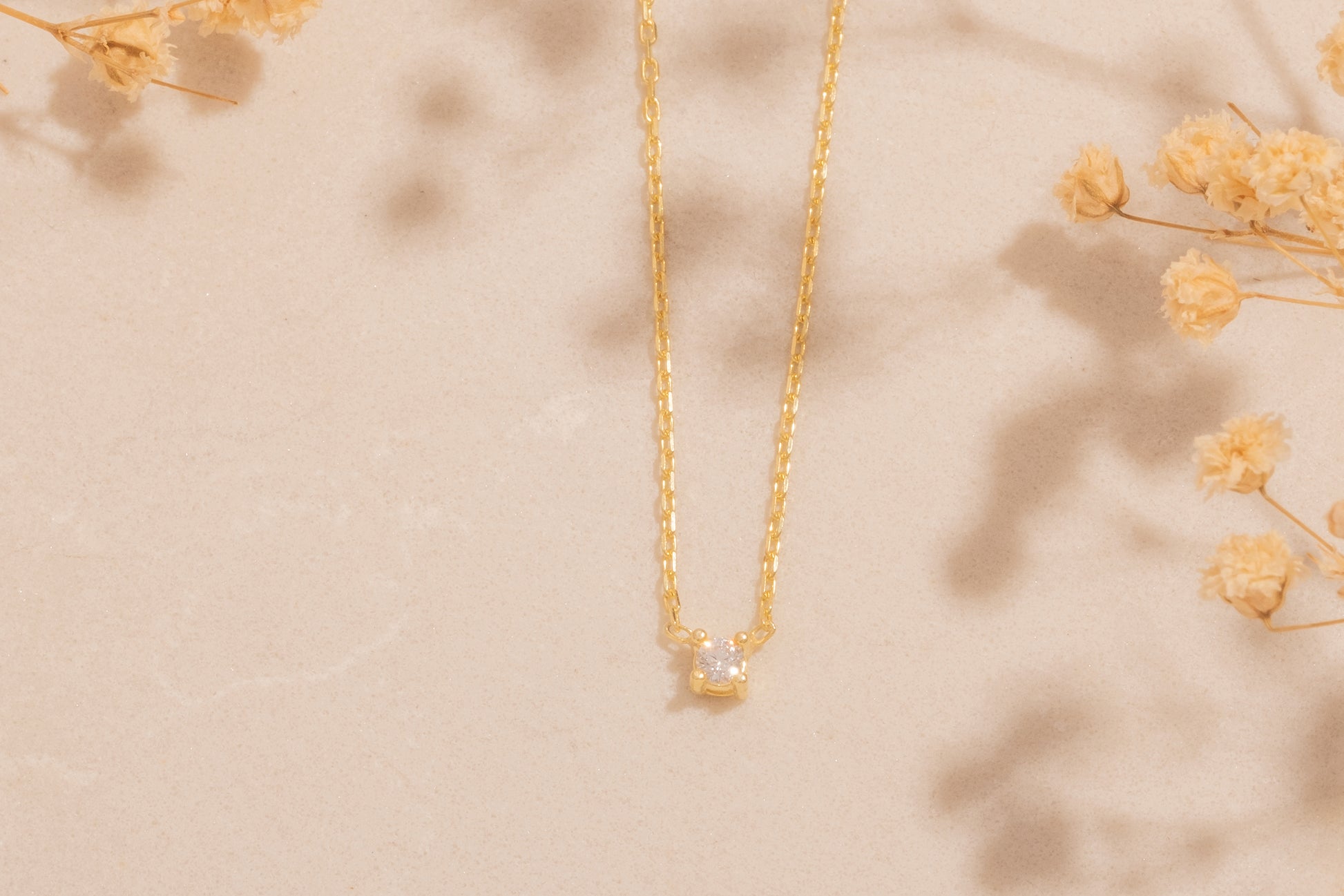 Dört Tırnaklı Tek Taş Kolye | 14 Ayar Altın