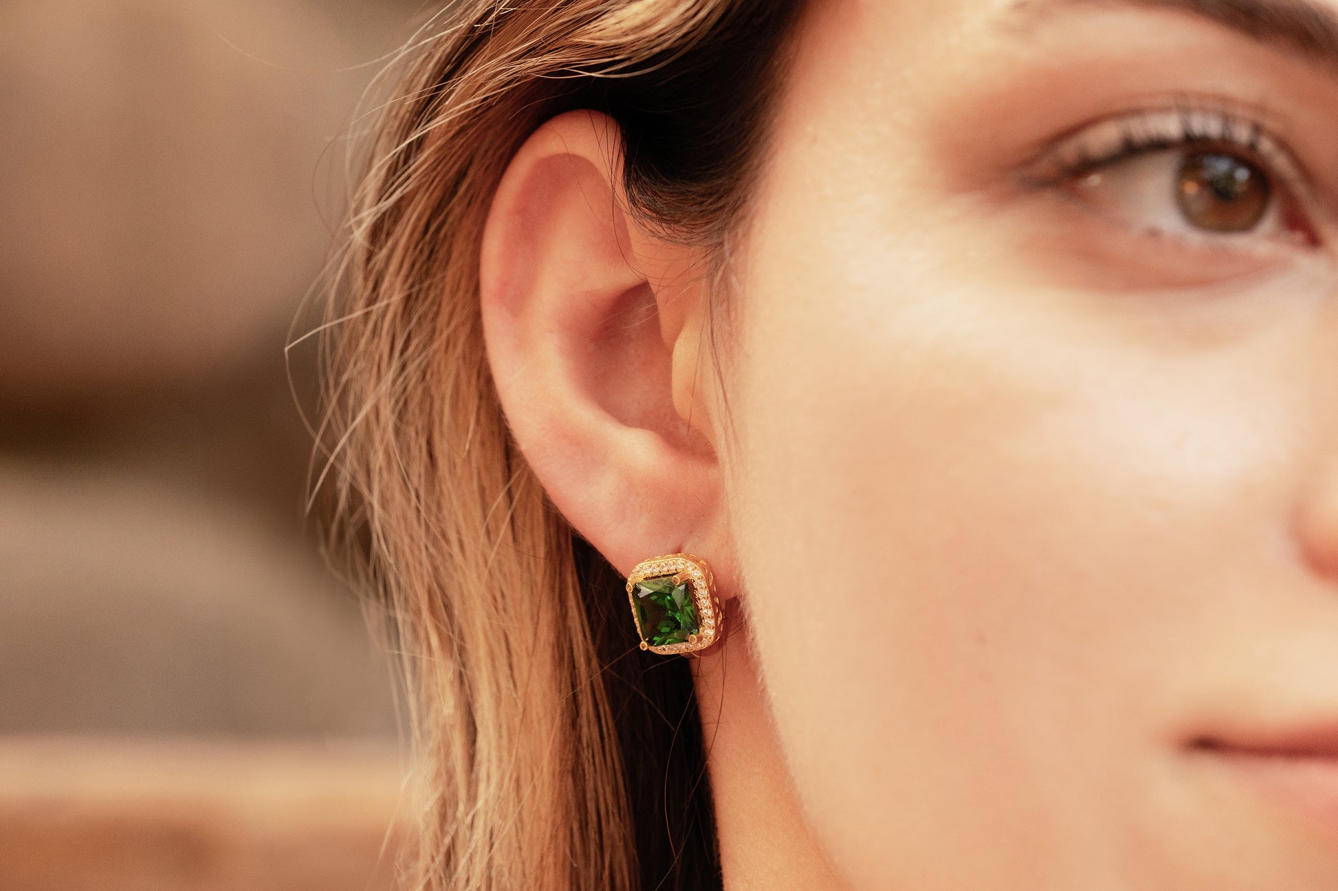 Zümrüt Taşlı Kare Küpe | 925 Gümüş
