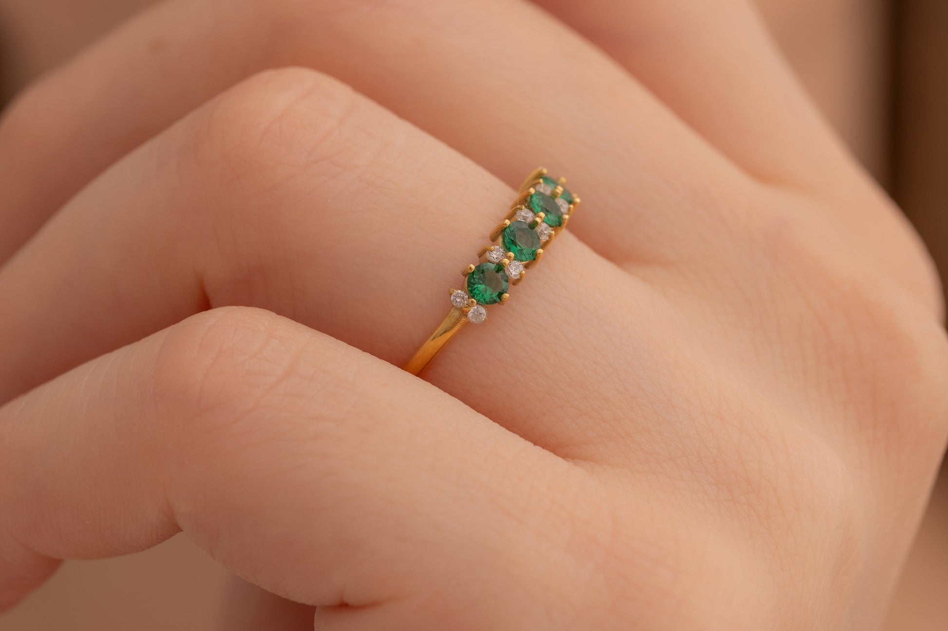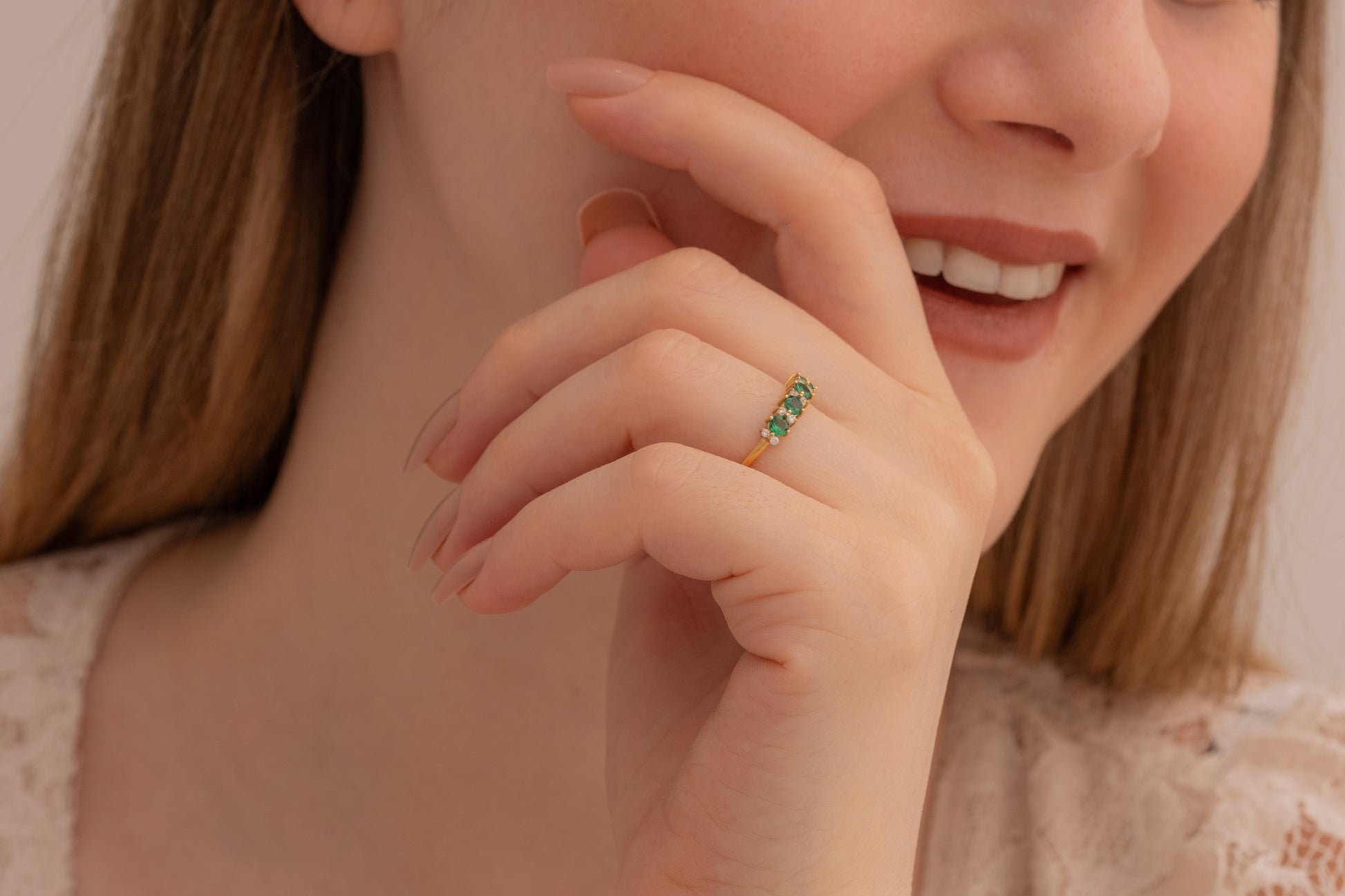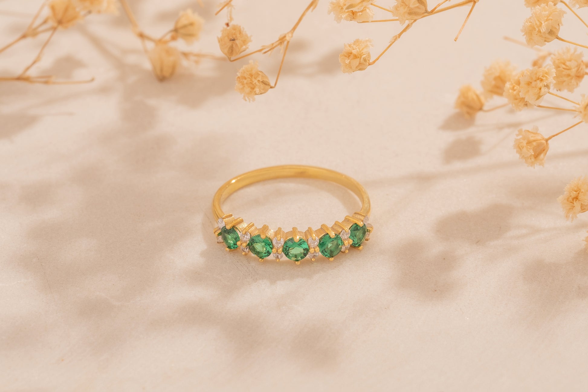 5 Yuvarlak Taşlı Renkli Yüzük | 925 Gümüş