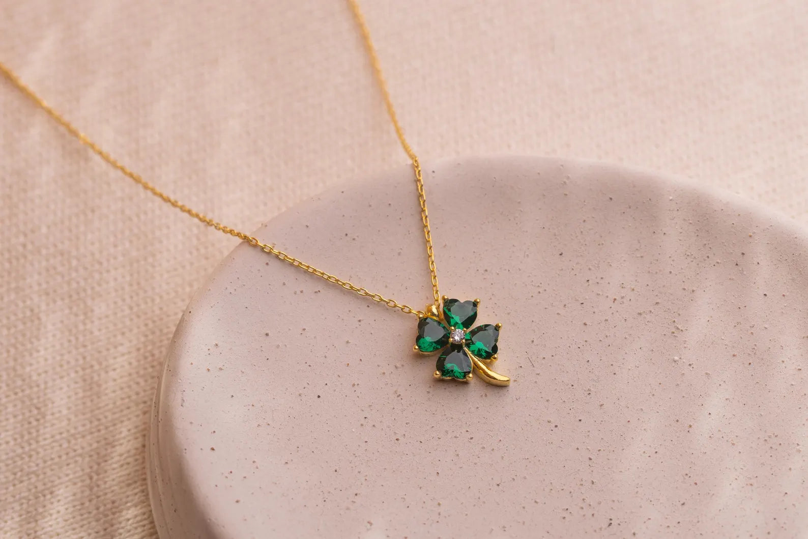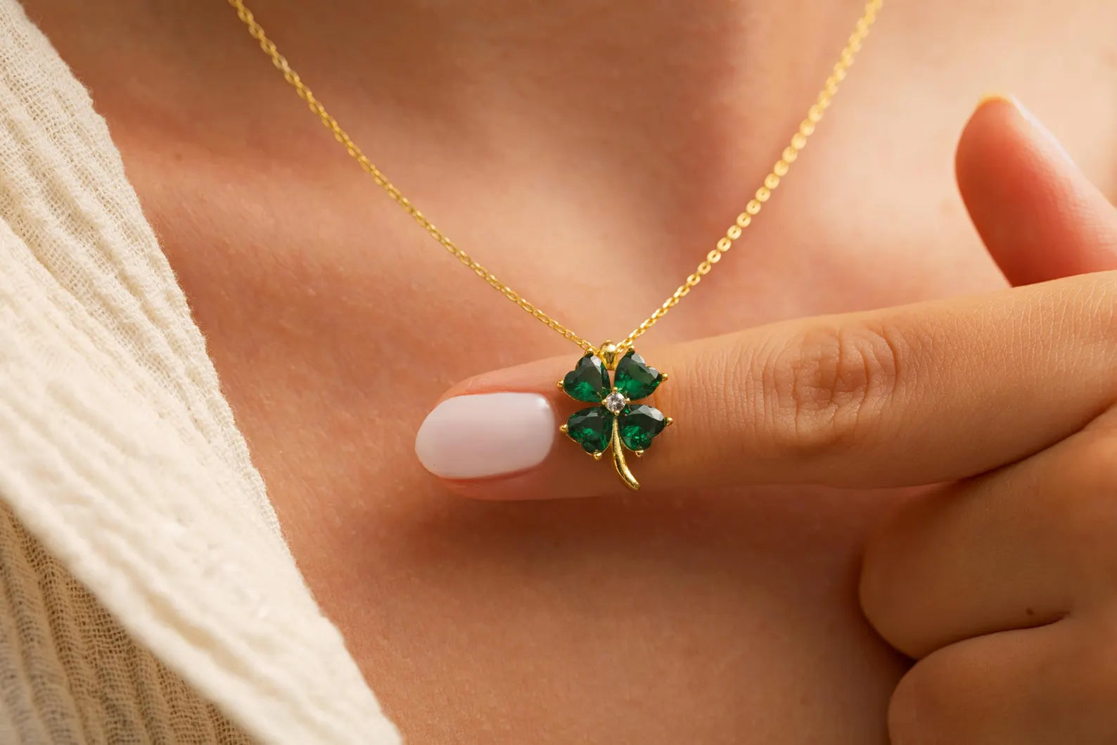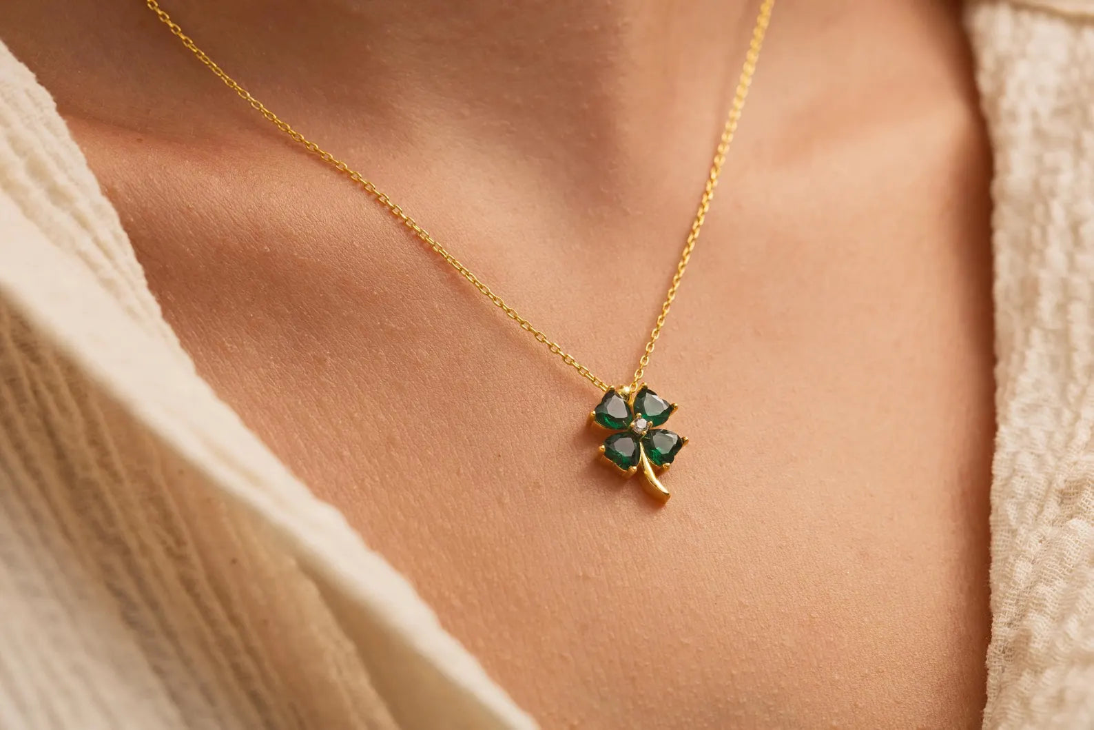 Zümrüt Taşlı Yonca Şans Kolyesi | 925 Gümüş